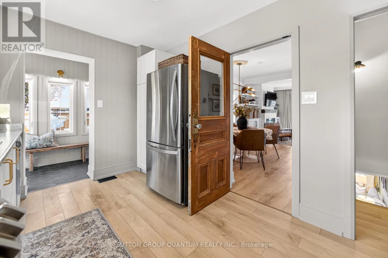Truscott/Seagull Beautifully updated semi-detached home in the heart of Clarkson with exceptional curb appeal. This move-in ready 3-bedroom, 2.5-bathroom home offers thoughtful upgrades and a comfortable, well-balanced layout throughout. The welcoming foyer features tile and a wood plank ceiling, leading into the open living and dining area with new luxury vinyl flooring, built-in shelving, and an electric fireplace.The updated kitchen showcases white shaker cabinetry, stainless steel appliances, ample counter space, and a stylish accent wall. A sun soaked mudroom addition with heated floors provides extra pantry storage, backyard access, and a cozy spot for morning coffee. An updated powder room completes the main level. Upstairs, the primary bedroom offers wall-to-wall closets, while the second bedroom features wall to wall closets, and a built-in Murphy bed to maximize space and function. The 5-piece bathroom with a double vanity was fully updated in 2022. The finished basement is filled with natural light from oversized above-grade windows and includes a comfortable rec room, work-from-home nook, finished laundry room with folding counter, a built-in ironing board and storage, a workout area, and a 3-piece bathroom. The fully fenced private backyard with professionally poured concrete (2024) is surrounded by mature trees and includes a workshop with hydro. The rolled asphalt roof was completed in 2020 by Avenue Road Roofing. Just a short walk to Clarkson GO and steps to grocery stores, schools, and everyday amenities, this home is a commuter's dream. A perfect option for those seeking a low-maintenance lifestyle without condo fees, in a quiet and convenient setting. Between the quality of finishes and secret hidden storage solutions you can't see in photos, this is not one to miss! (id:27476)