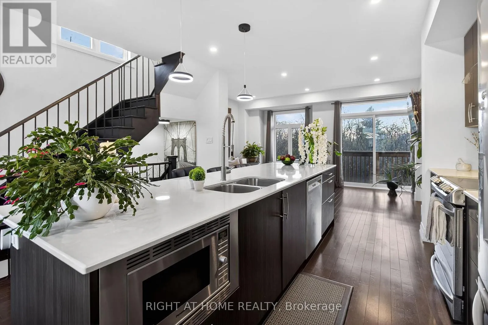 Fieldgate Dr/Eastgate Pkwy Sun-filled, private and move-in ready, this exceptional semi-detached home combines lifestyle and location. Modern comfort meets everyday convenience in this beautifully upgraded 4-bed, 4-bath private semi with no neighbours on one side or behind. Bright and spacious, the rare orientation delivers sunrise views from the living room and spectacular sunsets from the dining area. The open-concept living area is an entertainer's delight with upgraded kitchen featuring quartz counters and an absolutely stunning centre island, custom cabinetry, stainless appliances and a built-in workspace. Large windows on multiple sides flood the home with natural light. The primary bedroom suite offers a walk-in closet and renovated ensuite with large shower and double quartz vanity. Two additional well-sized bedrooms are bright and flexible for kids or hybrid work. Main-level 4th bedroom with private 3-pc ensuite and walk-out to the backyard is perfect for guests, in-laws or a home office making it ideal for multi-generational living. Quality finishes throughout include upgraded hardwood, smooth ceilings, modern lighting and designer touches. The finished basement provides recreation space, home gym or media area with potential for future income. Located in a family-friendly neighbourhood minutes to highways, parks, schools and shopping, and only a 10-minute walk to MiWay transit. (id:27476)