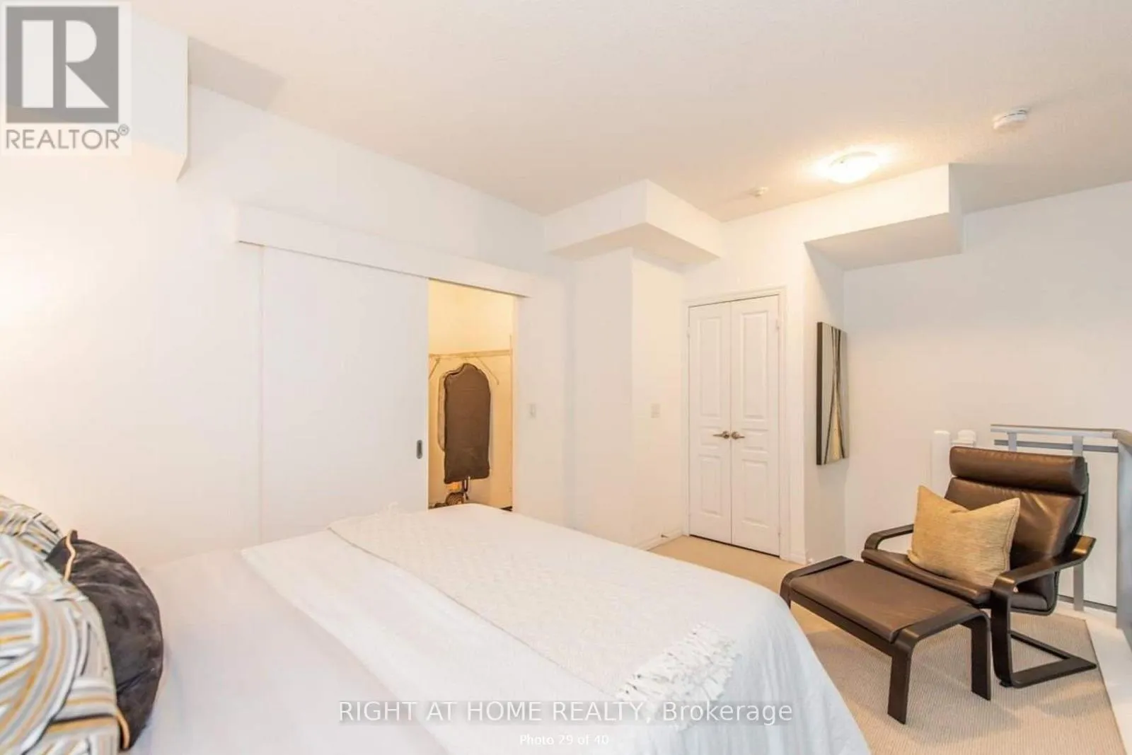Cross Streets: Webb Dr And Duke Of York. ** Directions: Burnhamthorpe to Duke Of York to Webb. Bright 1 bedroom + den loft in the heart of Mississauga. Luxury corner unit featuring a functional layout with spacious den ideal for WFH , soaring open-to-above living room, and open-concept kitchen perfect for entertaining. Second-level primary bedroom with private ensuite and walk-in closet. Enjoy city views from the private balcony with space for patio furniture. Includes underground parking and large locker. Located in the highly sought-after Onyx building offering premium amenities: gym, yoga studio, pool, sauna/steam room, indoor & outdoor hot tubs, rooftop lounge, and BBQ gardens. Steps to Square One, transit, highways, schools, and more. (id:27476)
