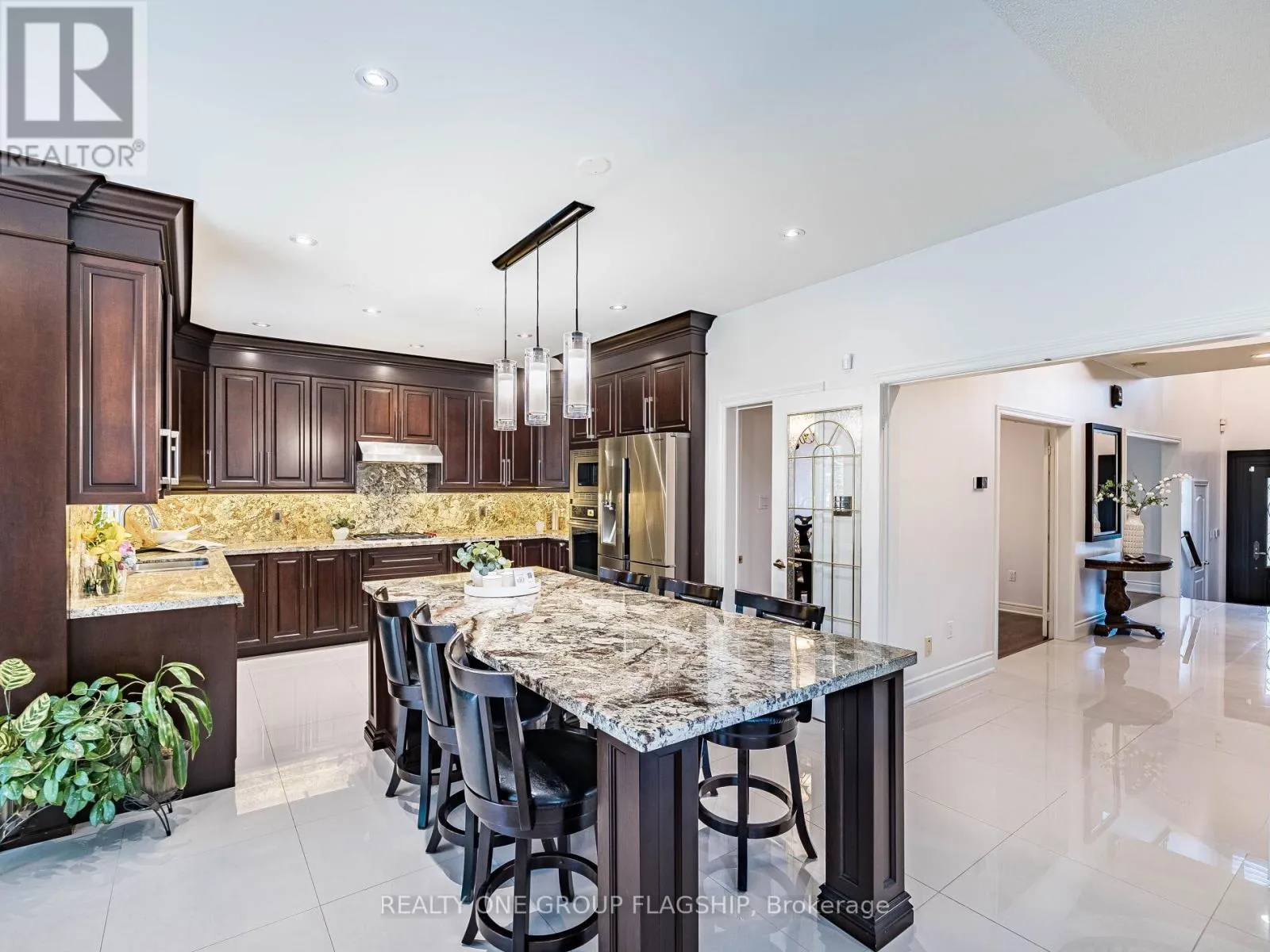 EGLINGTON AND ERIN MILLS Welcome to 5290 Hilton Court, a rare and distinguished residence nestled in the most private and prestigious cul-de-sac in Credit Mills. With properties on Hilton Court seldom offered for sale, this is an exceptional opportunity to own a true gem. This stunning estate spans nearly 10,000 sq ft. situated on a 65.12 x 166.38 ft. private, resort-style oasis that features a heated saltwater inground pool, landscape lighting and surrounded by towering cedar and pine trees for total seclusion and serenity. This New Classic Style home blends timeless architectural elegance with modern family comfort boasting approx. 4,300 sq. ft. above grade and an additional 1,700 sq. ft. in the lower level for a total of an approx. 6,000 sq. ft. of living space. The main level welcomes you with a grand custom-made Solid Mahogany Amberwood door, Expansive formal living and dining rooms with oak hardwood flooring, two solid oak staircases adding architectural distinction and flow and a versatile Gym (can be converted to a main floor Master bedroom), The heart of the home is the custom-designed kitchen, a true gathering place for family and guests alike with Oversized center island, Wrap-around cabinetry for ample storage and Full slabs of granite countertops and backsplash for a sleek, upscale finish, The kitchen opens into a sun-filled family room anchored by a modern wall-mounted gas fireplace, with stunning views of the lush, cedar-lined backyard the perfect setting for year-round entertaining. The second-floor features 4 spacious bedrooms, 3 full bathrooms, all beautifully appointed Plus an executive office (can be converted to a 5th Bedroom) with custom wrap-around bookshelves and a cozy gas fireplace with Rich oak engineered hardwood flooring throughout. The lower floor includes a direct exit to the 3-car garage, a second full kitchen with an attached Pantry room, massive TV room, full Billiard Room, wet bar, and a residence suite with a 3 PC washroom and attached Family Sauna. (id:27476)