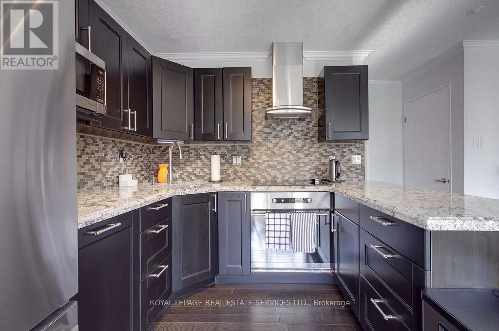 Cross Streets: Southdown Rd. / Lakeshore Rd. W. ** Directions: Southdown Rd. / Lakeshore Rd. W / Walden Cir. Welcome to this spacious 2 bedroom, 2 bathroom condominium, just shy of 1,000 sq. ft. of refined living space in the highly sought-after Walden Spinney community of Clarkson. This thoughtfully designed suite features an open-concept layout with hardwood floors, granite countertops, and generous principal rooms ideal for both everyday living and entertaining, complemented by scenic South-West facing windows that fill the home with natural light. This is a very quiet, well-maintained building, known for its strong sense of community and pride of ownership. Residents enjoy exceptional amenities including an on-site gym, guest suites and sauna, along with exclusive access to the Walden Club, featuring an indoor pool, fitness centre, squash and raquet courts, as well as tennis and pickleball courts. The beautifully landscaped grounds are surrounded by mature trees and scenic walking paths, creating a peaceful, park-like setting. The condo comes with 2 parking spots, high speed internet and cable tv package. Ideally located just steps from the Clarkson GO Station and only minutes to the Port Credit and Oakville waterfronts, shops, dining, and major commuter routes. This is a rare opportunity to own in one of Clarkson's most desirable communities. (id:27476)