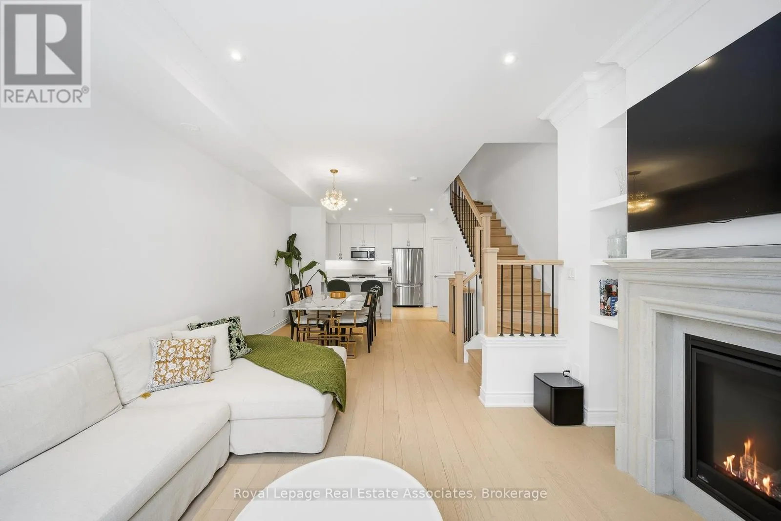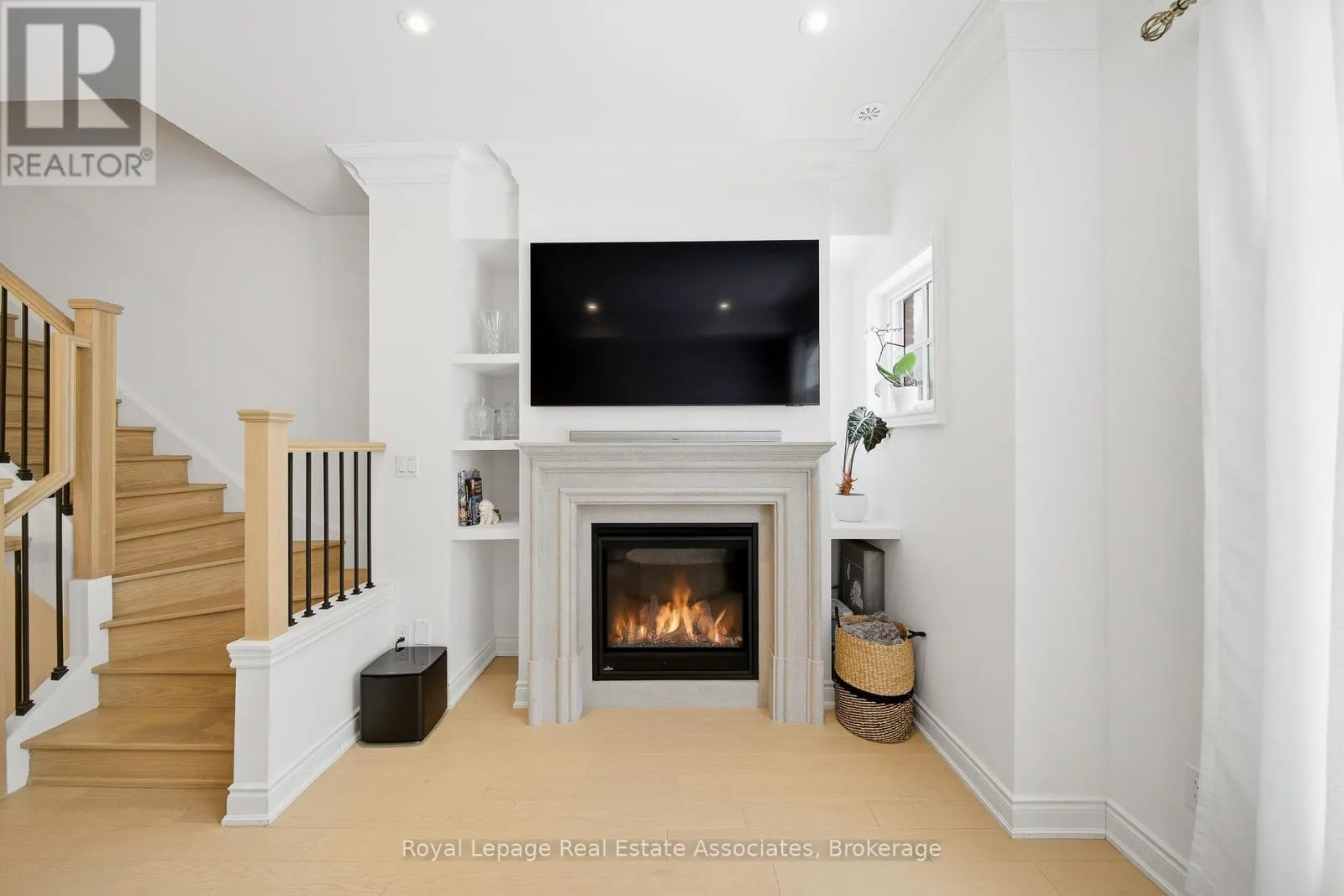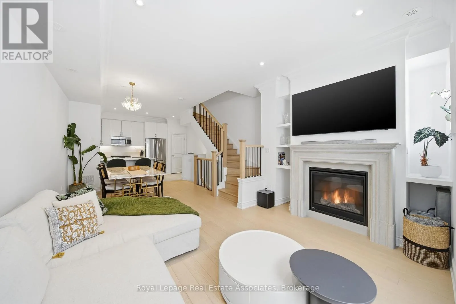 Thomas & Queen A refined luxury townhome by Dunpar Homes, nestled in the heart of vibrant Streetsville. This thoughtfully upgraded 3-bedroom, 2-bathroom residence delivers premium finishes, thoughtful design, and exceptional indoor-outdoor living in a prime, walkable location. The interior is bright and open, featuring soaring 9.5-foot ceilings and numerous skylights that flood the home with natural light. Wide plank hardwood flooring, smooth ceilings, LED pot lights, and solid oak stairs with iron pickets create an elegant and cohesive feel throughout. A natural gas fireplace with an upgraded Regency-style mantel and custom built-in shelving anchors the main living space, adding both warmth and functional design. The custom two-toned kitchen is a chef's delight, finished with quartz counters, a waterfall island, crown mouldings, premium stainless-steel appliances, and elevated cabinetry details. Bathrooms feature luxurious marble counters. Additional upgrades include a central steam humidifier and an electric vehicle charger rough-in. The primary suite functions as a private retreat, complete with crown moulding, a walkout to a private balcony, and an oversized walk-in closet with a fully integrated custom organization system. Outside, an expansive south-facing rooftop terrace offers a gas BBQ line, water hookup, and a pergola-ideal for effortless, sun-filled entertaining. Enjoy an unparalleled level of convenience. The home is steps to GO transit, dining, trails, parks, top-rated schools, a recreation centre, and charming village shops, all with quick access to major highways. Set within an exclusive, family-friendly community known for its timeless architecture and modern design, this townhome offers the perfect blend of luxury, convenience, and low-maintenance living. Extensively upgraded, generously sized, and offering exceptional value, this turnkey home delivers luxury without compromise. (id:27476)