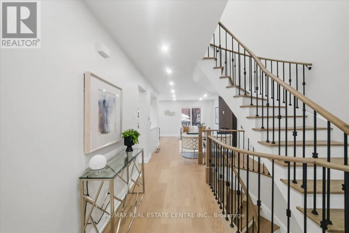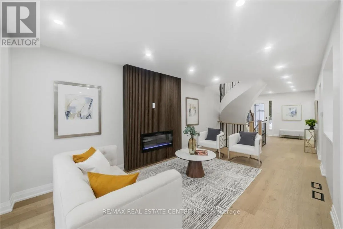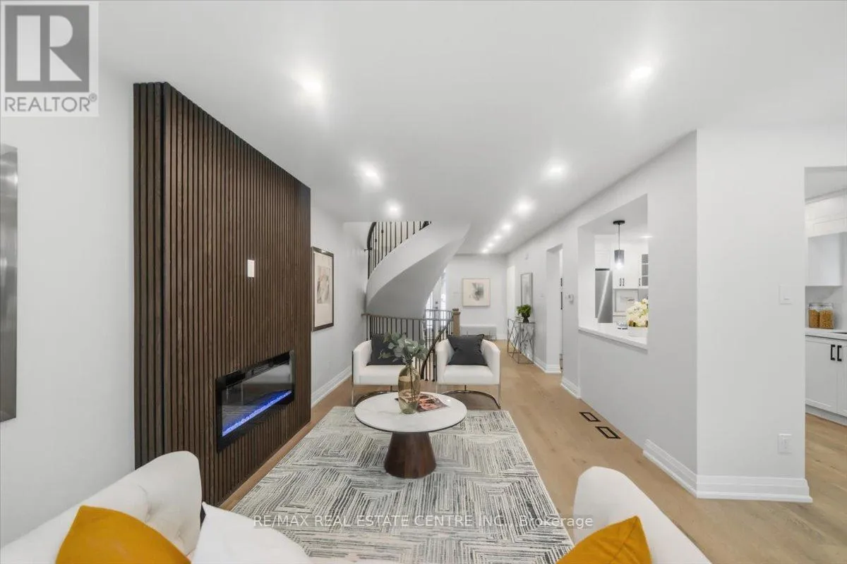 Rathburn/Perivale An exceptionally renovated detached home facing Deer Wood Park, located in the highly sought-after Creditview community, where refined design meets everyday functionality. Thoughtfully redesigned from top to bottom, this stunning 3+1 bedroom, 4-bath home showcases modern luxury, timeless finishes, and impeccable attention to detail throughout. The grand open foyer makes an immediate impression, featuring a dramatic spiral hardwood staircase accented with elegant iron spindles, creating a striking architectural focal point. Wide-plank hardwood flooring, smooth ceilings, and stylish recessed lighting flow seamlessly across the main level, enhancing the home's bright and airy ambiance. The main living area unfolds into a beautifully curated space highlighted by a custom feature wall with a sleek linear fireplace, offering both warmth and visual impact-perfect for entertaining or relaxing in refined comfort. At the heart of the home lies a brand-new gourmet kitchen, designed to impress with crisp white cabinetry, quartz countertops, a generous island, and stainless steel appliances, all seamlessly connected to the dining area for effortless hosting. The upper level offers three well-appointed bedrooms, including a luxurious primary retreat complete with a walk-in closet and a spa-inspired ensuite bath, along with the added convenience of second-floor laundry. All bathrooms have been fully renovated with contemporary finishes and designer flair. The professionally finished basement extends the living space, featuring a versatile recreation room, a fourth bedroom, and a full bathroom-ideal for guests, extend family, or a private home office. Set in a prime, family-friendly location close to top-rated schools, parks, shopping, transit, and major highways, this turnkey residence delivers the perfect blend of elegance, comfort, and convenience. A rare opportunity to own a move-in-ready luxury home in one of Mississauga's most desirable neighborhoods. (id:27476)