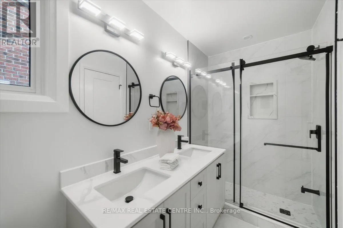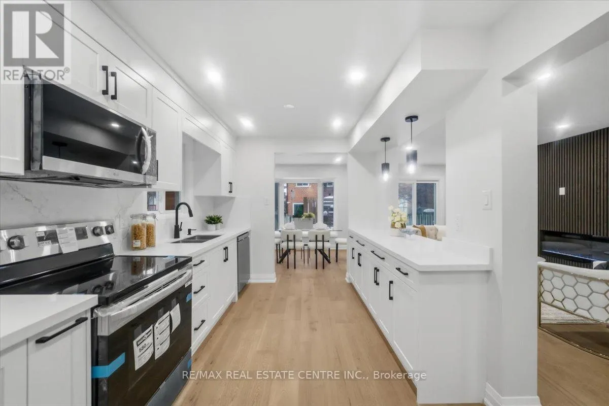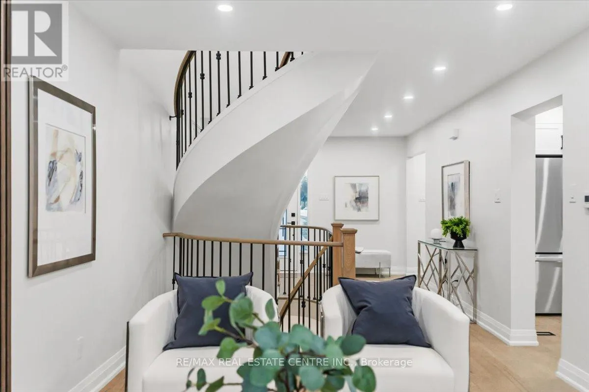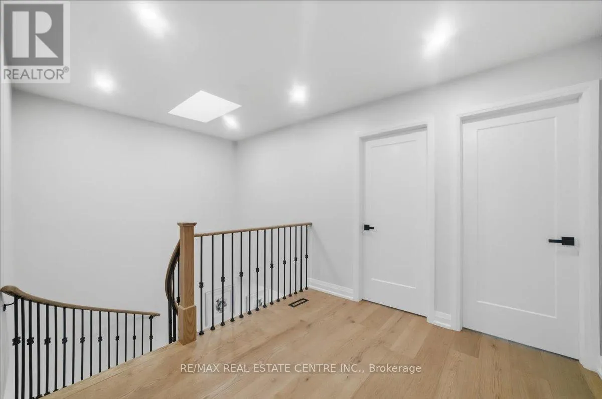 Rathburn/Perivale An exceptionally renovated detached home facing Deer Wood Park, located in the highly sought-after Creditview community, where refined design meets everyday functionality. Thoughtfully redesigned from top to bottom, this stunning 3+1 bedroom, 4-bath home showcases modern luxury, timeless finishes, and impeccable attention to detail throughout. The grand open foyer makes an immediate impression, featuring a dramatic spiral hardwood staircase accented with elegant iron spindles, creating a striking architectural focal point. Wide-plank hardwood flooring, smooth ceilings, and stylish recessed lighting flow seamlessly across the main level, enhancing the home's bright and airy ambiance. The main living area unfolds into a beautifully curated space highlighted by a custom feature wall with a sleek linear fireplace, offering both warmth and visual impact-perfect for entertaining or relaxing in refined comfort. At the heart of the home lies a brand-new gourmet kitchen, designed to impress with crisp white cabinetry, quartz countertops, a generous island, and stainless steel appliances, all seamlessly connected to the dining area for effortless hosting. The upper level offers three well-appointed bedrooms, including a luxurious primary retreat complete with a walk-in closet and a spa-inspired ensuite bath, along with the added convenience of second-floor laundry. All bathrooms have been fully renovated with contemporary finishes and designer flair. The professionally finished basement extends the living space, featuring a versatile recreation room, a fourth bedroom, and a full bathroom-ideal for guests, extend family, or a private home office. Set in a prime, family-friendly location close to top-rated schools, parks, shopping, transit, and major highways, this turnkey residence delivers the perfect blend of elegance, comfort, and convenience. A rare opportunity to own a move-in-ready luxury home in one of Mississauga's most desirable neighborhoods. (id:27476)