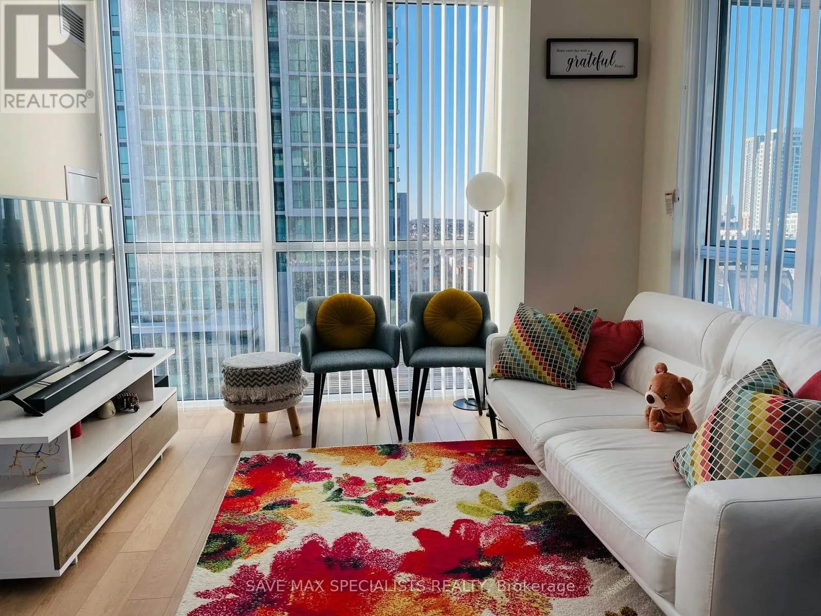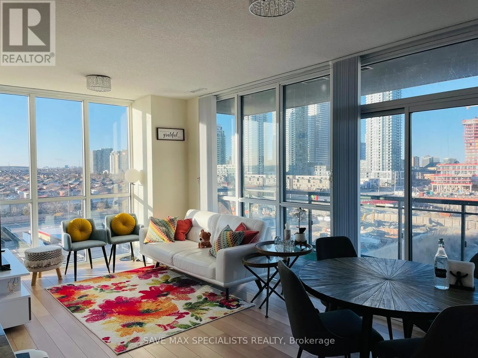 Burhamthrope & Grand Park Dr Stunning 2 Bed + Den, 2 Bath 923+120 Sqft. Freshly painted Condo. available for Sale in the downtown core Mississauga Square one. Extra-large balcony, plenty of natural light, Close to T&T Supermarket, Shoppers Drug mart, Restaurants, shopping mall, Parks, Public Transit, place or worship etc. Open concept Layout with modern design unobstructed views of Toronto Skyline &Lake. Granite counters, ceramic back splash, Beautiful Hardwood flooring, Large separate Den, Great Amenities include Indoor pool, Swimming pool, Sauna, Theatre, Gym, Game & Party room etc. TWO PARKINGS & Many more! (id:27476)