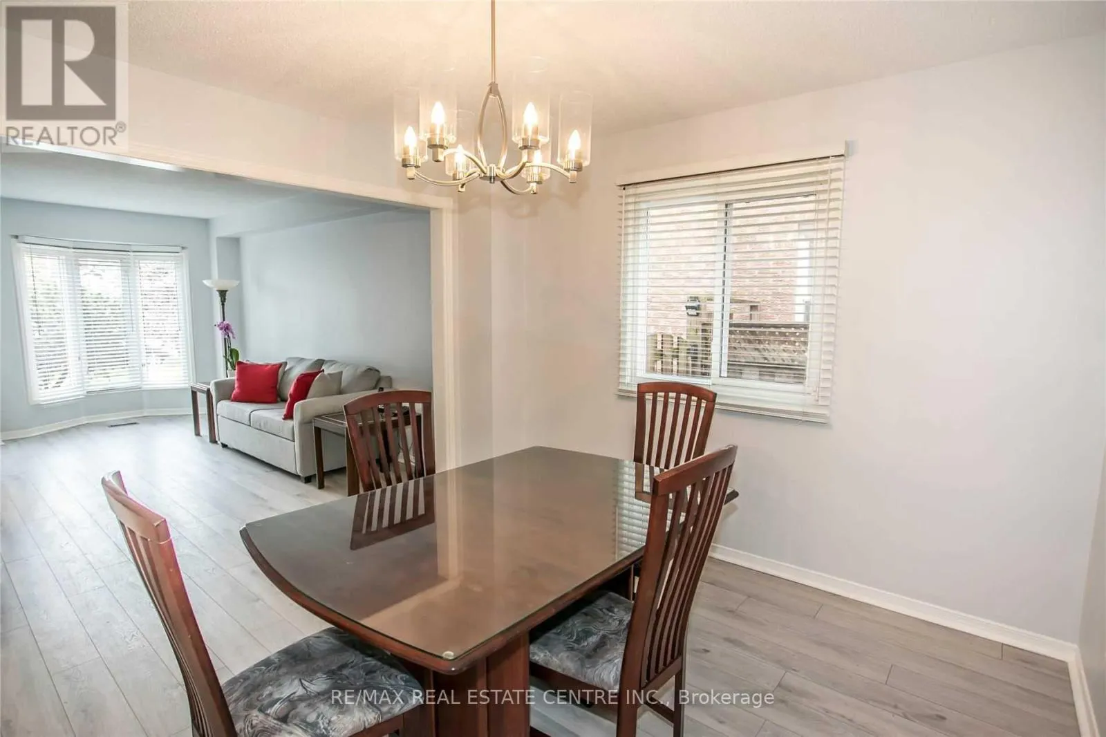 Waxwing & Tenth Line This spotless, sun-filled 3-bedroom, 2.5-bath home offers a beautifully maintained interior with updated windows, front and patio doors, new tile entry, and quality laminate flooring throughout the main and upper levels. Enjoy a bright main-floor family room with a fireplace, an updated eat-in kitchen, a convenient main-floor laundry, a fully fenced 32 x 105 lot, a landscaped yard with a composite deck, and a garden shed create an inviting outdoor retreat. Located in a highly desirable neighbourhood within good school districts, this home is just minutes to Highways 403 and 407, shopping, restaurants, groceries, and transit. Central air conditioning, and a clean, move-in-ready presentation make this sunny home a must-see-don't miss it! (id:27476)