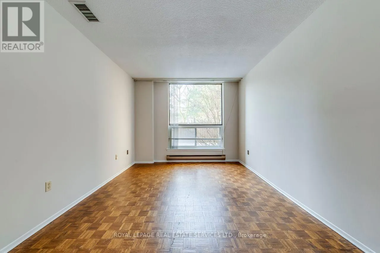 Lakeshore&Southdown Rd Rare opportunity for a ground floor "Garden suite" with a sliding door walk out to a patio. Best location in the building, quiet corner backing onto the manicured lawn and tall trees. Gated courtyard fronting on the bedrooms, extra exit from the den. There are only 2 suites in this South wing, steps from the outdoor pool and party room. Another unique feature, no step down to the sunken living room, all on one level (only the ground floor suites have this feature). Adult Oriented & Quiet Ambience "Inverhouse Manor" condominium building In Clarkson Village. Well Maintained Building, Ideal For Empty Nesters. Day light luminated indoor parking with skylights & car wash bay. The garage roof membrane has been restored & repaired in recent years, The rear garden was newly landscaped Very walkable neighbourhood : Lakeshore Shops & Restaurants. Short cut to Clarkson Crossing Plaza via foot bridge over Sheridan Creek to Metro, Canadian Tire, Shoppers Drug Mart & more. Near Go Train Station, Easy Commute To Downtown Toronto. For the active lifestyle, near Ontario Racquet Club, walking trails in Rattray Marsh & Lakeside parks. Bike storage room on ground floor. Note : No Pets Permitted & Smoking. Note : the condo is vacant, virtually staged rooms for illustration purposes. Communal BBQ is set up in the Summer, just outside the swimming pool gated area. Electric BBQ is permitted on own patio. Also FOR SALE for $ 625,000 (id:27476)