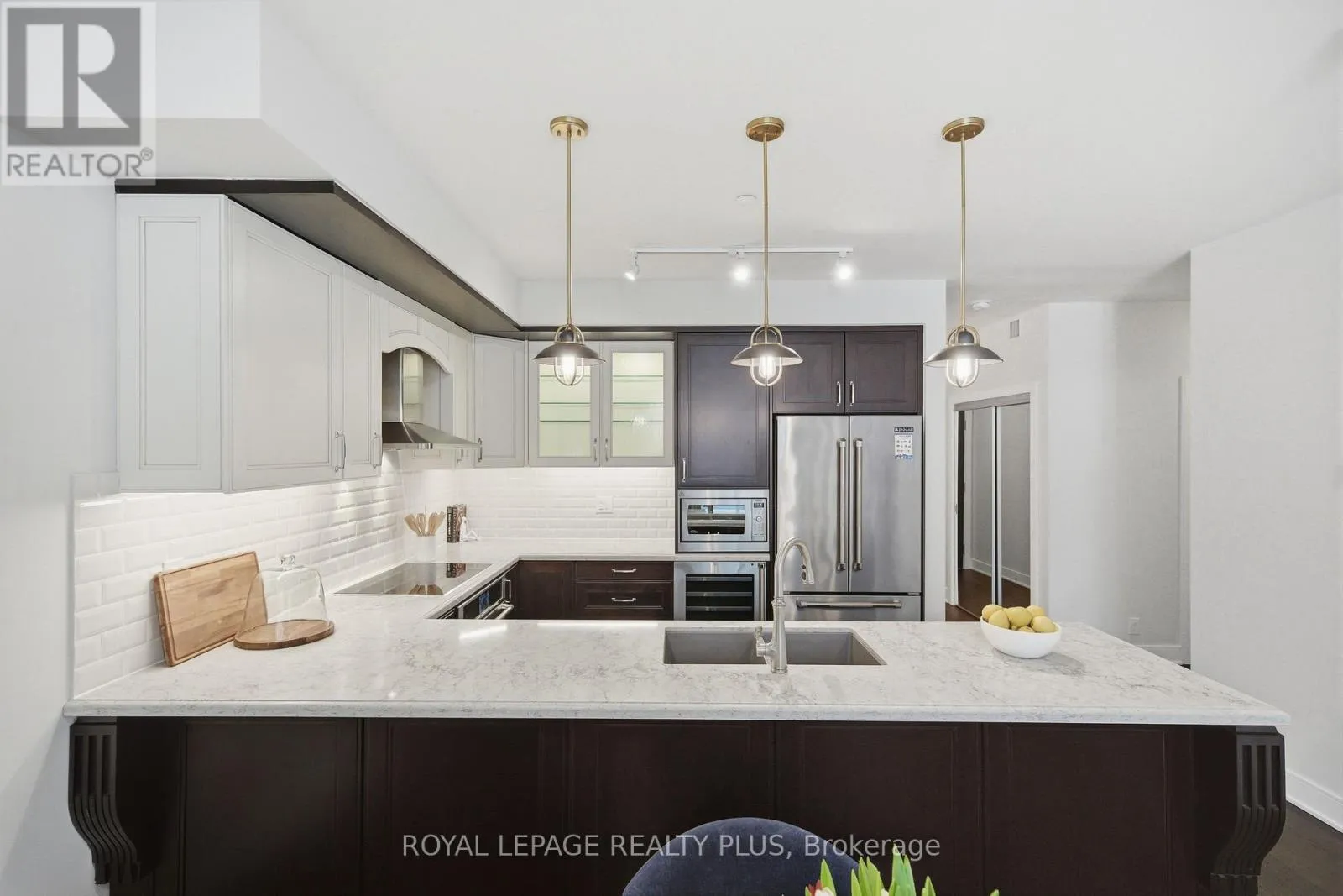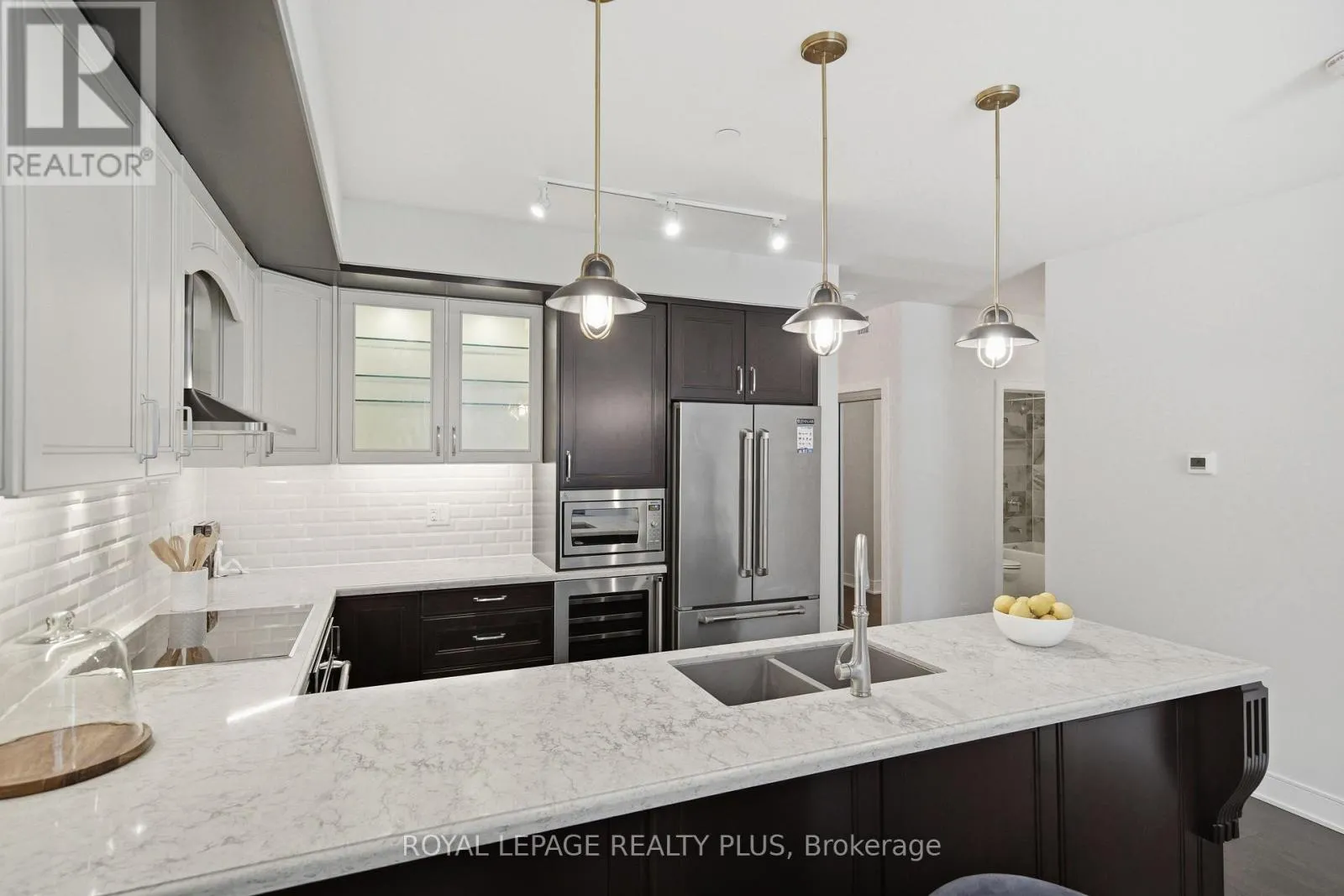 Cross Streets: Clarkson Rd N / Lakeshore Rd W. ** Directions: North side of Lakeshore just East of Meadow Wood. Most condos get built to rent or flip. This one was built to live in. Suite 117 at The Craftsman is a rare, end-user designed residence where quality and intention are evident throughout. The layout offers exceptional flow, living more like a bungalow than a condo, with bedrooms thoughtfully separated from the main living area. This allows for a better use of space and quieter, more private bedrooms. Throughout the suite, five-inch engineered hardwood floors replace typical builder finishes, while numerous pot lights and statement light fixtures, all on dimmers, seamlessly integrate with your smart home devices. The fully customized kitchen represents a significant investment and is the true heart of this home. Featuring marble-inspired counters, elegant two-tone cabinetry, and thoughtful storage solutions like Lazy Susans, deep pot drawers, and cabinet drawers for those hard-to-reach areas, every inch of this space was designed for functionality. Premium appliances include the JennAir-branded induction cooktop, smart oven, paneled dishwasher, 72-inch-high counter-depth fridge, and a Marvel built-in wine fridge, creating a space that is refined, practical, and perfect for entertaining. The primary retreat occupies its own exclusive wing with multiple closets, including a large walk-in, and a spa-inspired ensuite complete with a glass shower stall, soaker tub, large custom vanity, and hidden pull-out drawers with built-in under-counter outlets for seamless organization. A proper second bedroom with a walk-in closet and a spacious den finished with closet storage also provides true flexibility for guests or a home office. Additional highlights include California shutters, a large laundry room with a sink and extra cabinet storage, EV-ready parking located just steps from the elevator, and a storage locker directly across the hallway. For buyers who notice the difference, this suite delivers thoughtful upgrades, smarter storage, and a layout that simply feels right. (id:27476)