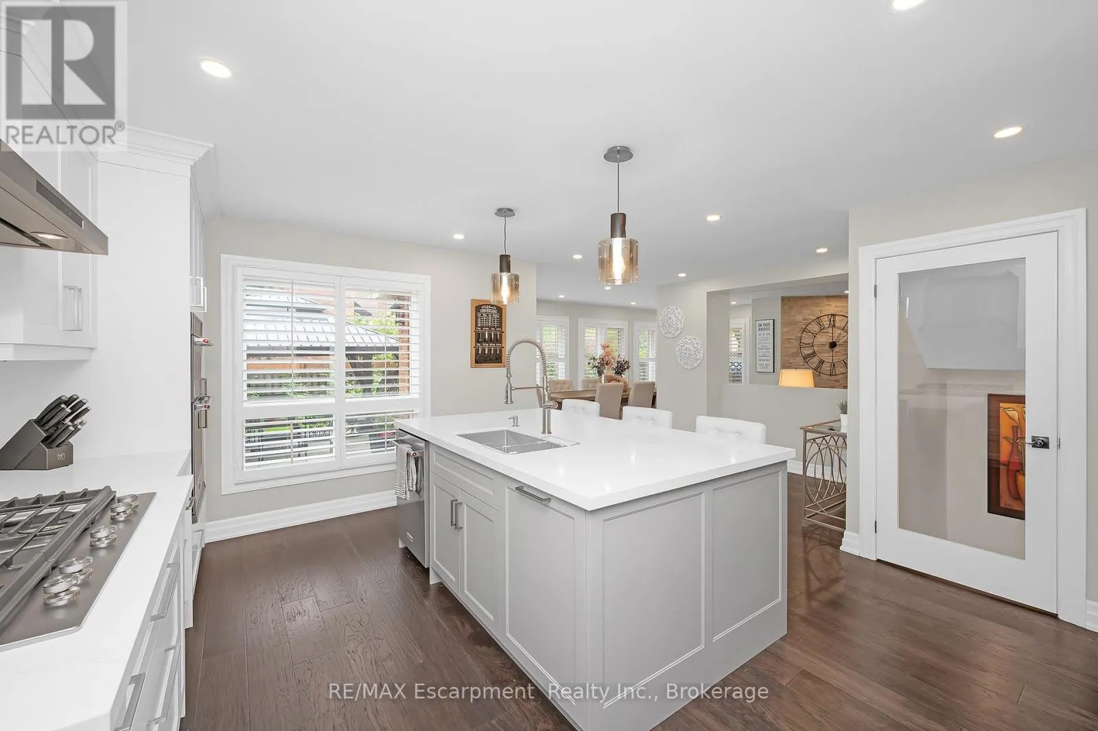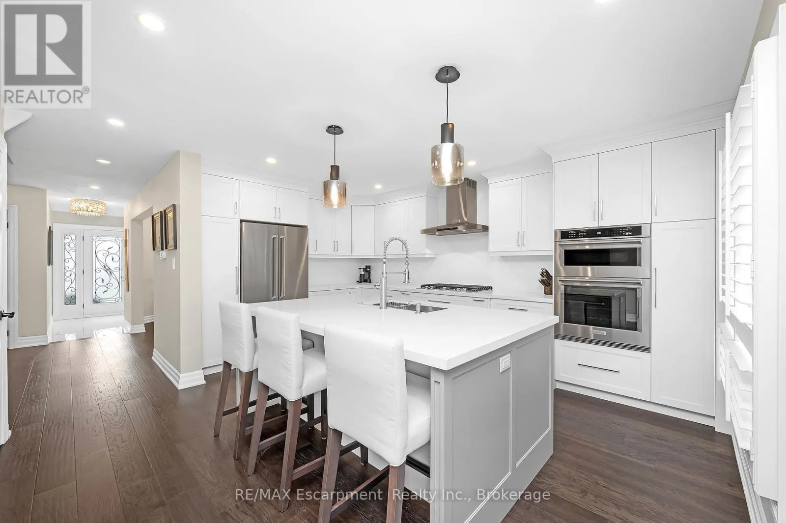 Nahani Way & Ojibway Trail Welcome to 357 Nahani Way-a showpiece 2-storey home in one of Mississauga's most sought-after neighbourhoods. With a stunning double-plus-wide interlocking driveway and polished exterior, the curb appeal is unforgettable. Step into a grand, light-filled foyer that opens to a sun-drenched living room framed by a beautiful bay window. Wide-plank flooring flows seamlessly throughout, complemented by California shutters and designer lighting that add timeless elegance at every turn. At the heart of the home, a fully renovated chef's kitchen blends luxury and function. Quartz countertops, custom cabinetry, stainless steel appliances, a gas range, double wall ovens, and a statement island with breakfast bar create the perfect space to cook, gather, and entertain. The open-concept layout connects effortlessly to the dining area and warm family room, where a gas fireplace anchors the space. Upstairs, four generously sized bedrooms offer comfort for the whole family. The spacious primary suite is a true retreat, complete with a walk-in closet and private ensuite. The fully finished lower level extends your living space with oversized windows, a large recreation area, full bathroom, bedroom, and kitchenette-ideal for in-laws, guests, multi-generational living, or a stylish teen retreat. Step outside to a backyard designed for entertaining and relaxation, featuring interlocking brick, a custom pergola, and ample room to host summer gatherings. Close to top-rated schools, parks, shopping, and major commuter routes, this home delivers refined updates, flexible living space, and an unbeatable location. This isn't just a house-it's the lifestyle upgrade you've been waiting for. (id:27476)