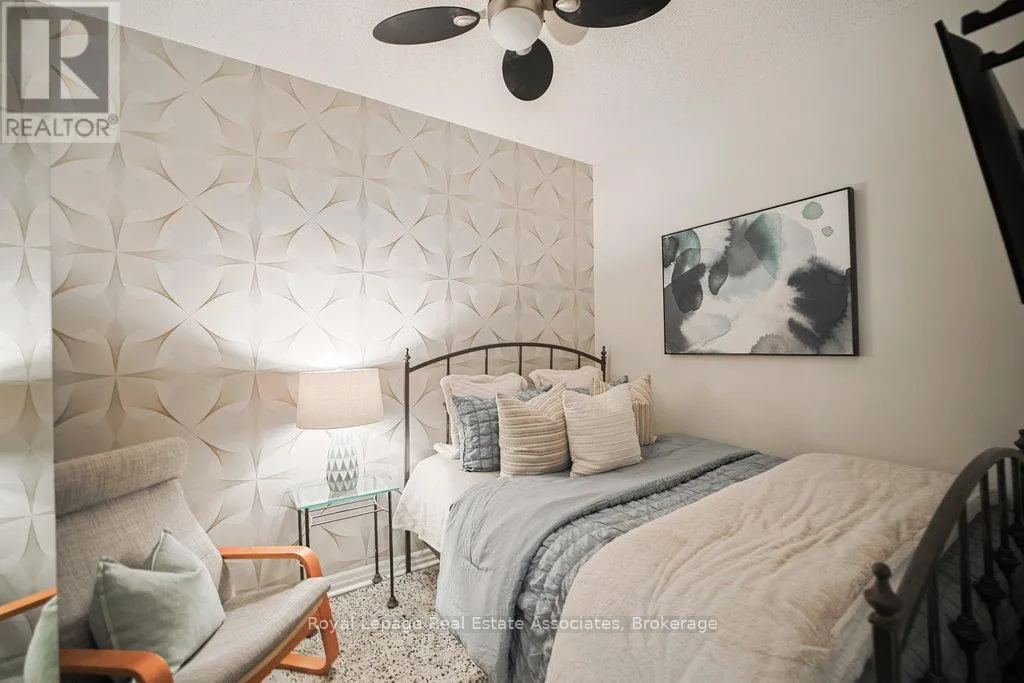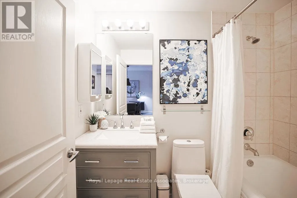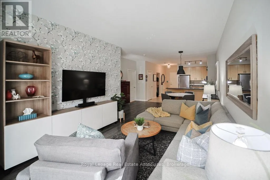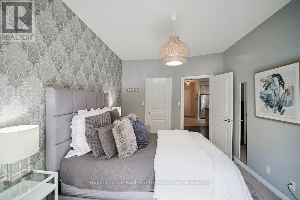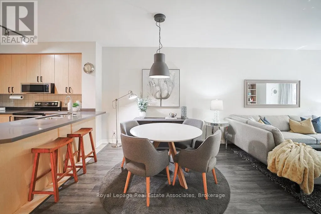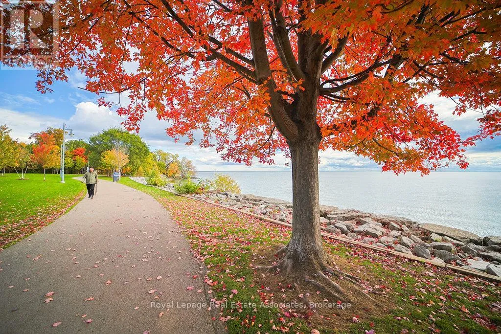 Port Street East and St.Lawrence Drive Welcome to effortless main floor living in the heart of Port Credit. This beautifully designed 1 bedroom plus den suite offers 903 sq. ft. of stylish, open concept space and the rare luxury of a true walk out terrace, not a balcony. The walk out terrace is ideal for enjoying morning coffee, gardening, and summer BBQing while creating your own private outdoor retreat.The thoughtfully designed kitchen showcases sleek grey quartz countertops, ample prep space, and a seamless flow into the spacious living and dining area, ideal for entertaining or relaxing at home. The generous primary bedroom features a walk in closet with custom organizers, while the separate den provides versatile space for a home office, guest area, or cozy reading nook.A standout feature is the walk in laundry room, offering exceptional storage and functionality rarely found in condo living. Even the storage locker is conveniently located on the same ground level for easy access.Perfectly positioned just steps to the gym, lobby, and courtyard, this suite also offers added privacy with no neighbours on one side. Skip the elevator and step directly outside to enjoy the fresh lake air.Live just moments from the waterfront, marina, boutique shops, and vibrant restaurants that make Port Credit one of Mississauga's most desirable lakeside communities. (id:27476)