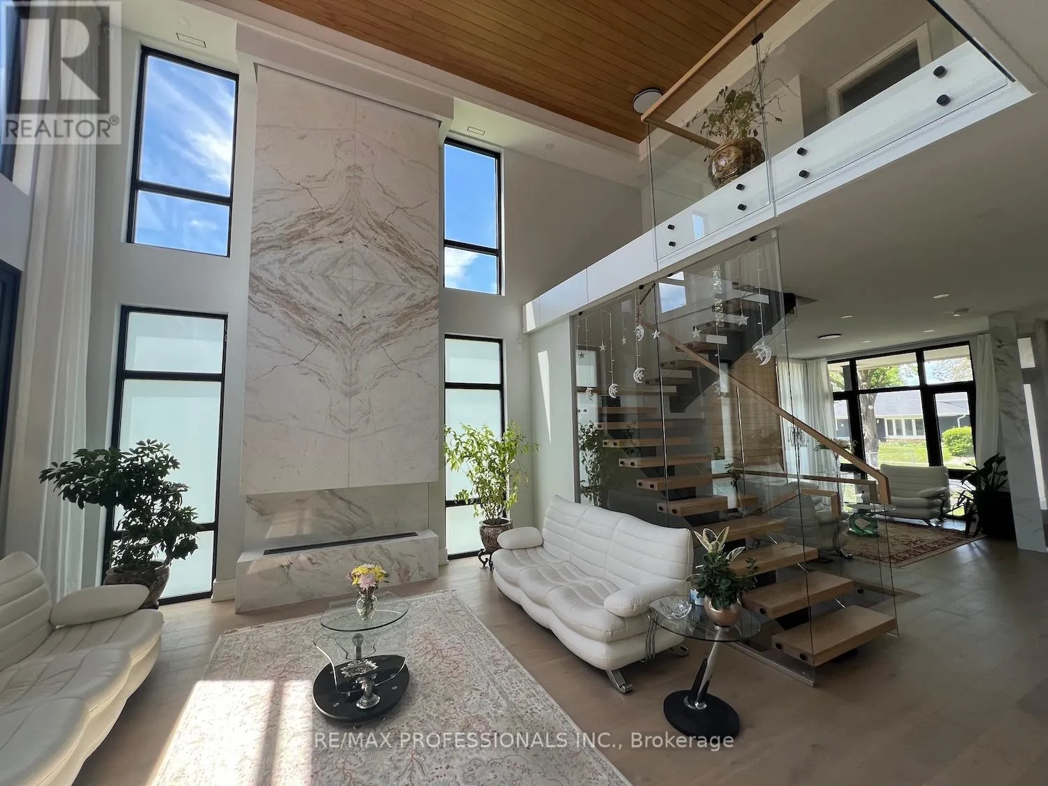 Cross Streets: Southdown | Royal Windsor. ** Directions: Southdown | Royal Windsor | Truscott. Sophistication and elegance shine throughout this new custom built spacious and modern luxury home in Clarkson. 3660 SF above grade plus 2240 SF below grade. Many features with quality finishes : triple pane windows, smart glass windows, motorized curtains, smart toilets, glass railings, plot lights throughout, quartz counters, Thermador appliances, 6 burner gas stove, pantry, passcode door entry, 2nd floor furnace room, ensuites in all bedrooms, 2nd floor laundry. Prime bedroom has large private terrace overlooking park , large windows. 2 laundry rooms. 2 door access to garage from inside. Basement has a kitchen, family room, laundry Room, 3 Bedrooms, large windows, separate entrance to basement, walk up to yard from a private patio, extra zen garden patio , wine cooler. Covered Patio 16X26 feet with pot lights. Stone Driveway. Mature trees in yard. 10 foot ceilings on main level, 9 foot ceilings on 2nd floor and basement. 2 A/C units. Backs onto a park. (id:27476)