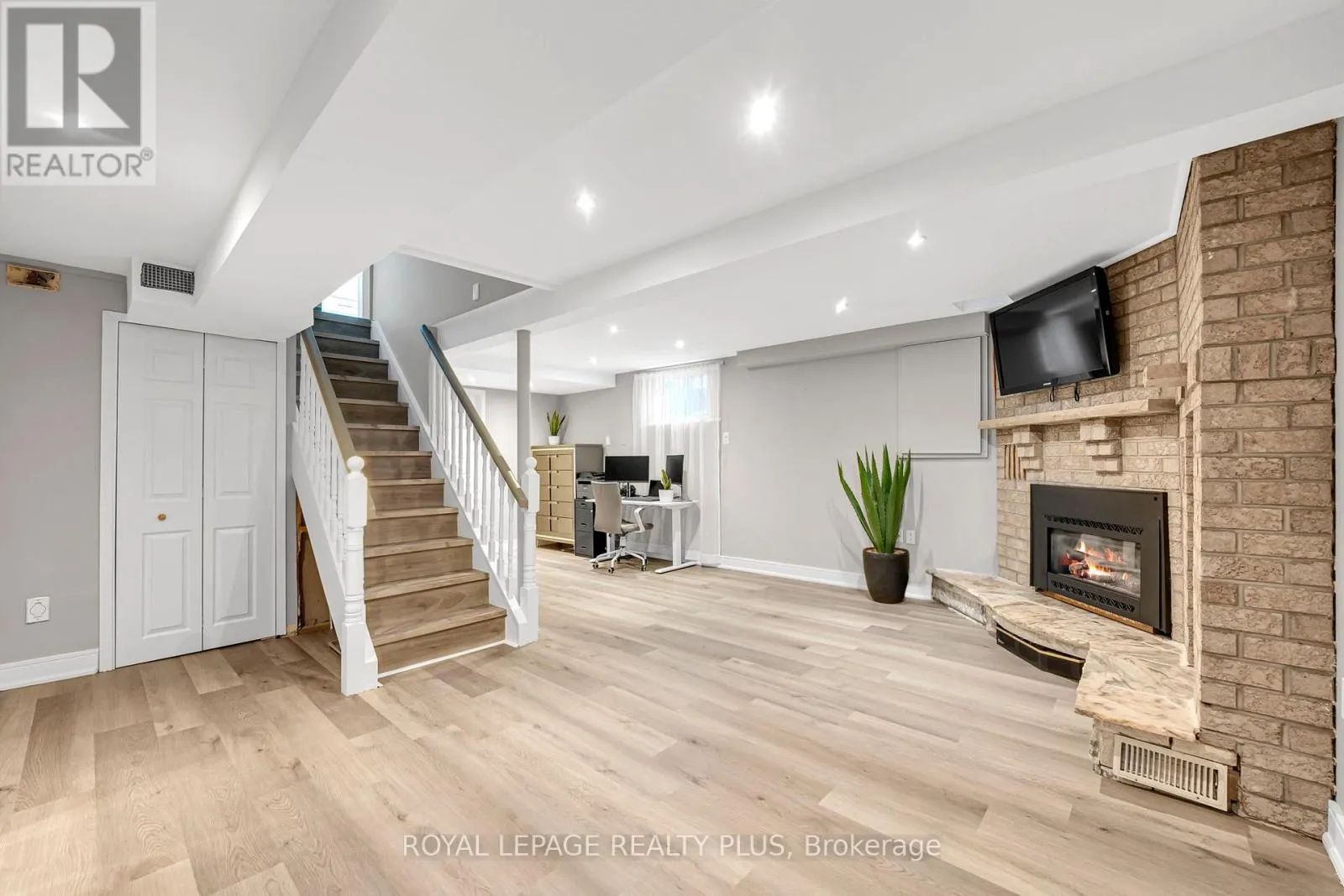 Copenhagen/Derry Opportunities like this are few and far between. This beautifully upgraded townhome offers the perfect blend of style, space, and functionality - complete with a huge front patio and an exceptionally large, fully fenced backyard ideal for entertaining, relaxing, or family living. Step inside to a thoughtfully designed open-concept layout featuring modern finishes throughout. The spacious living and dining areas flow seamlessly, creating an inviting atmosphere filled with natural light. The upgraded kitchen is both stylish and functional, complete with stainless steel appliances, ample cabinetry, and generous prep space - perfect for everyday living and hosting. Upstairs, you'll find generously sized bedrooms offering comfort and privacy for the entire family. And then... the basement. This fully finished lower level is a true extension of the home. Featuring a beautiful fireplace that creates a warm and inviting ambiance, a convenient walkout and an additional washroom, and a dedicated laundry room, this space offers incredible versatility - whether for extended family, a recreation area, home office, or guest retreat. A rare combination of indoor elegance and exceptional outdoor living - this is a home that truly stands out. (id:27476)