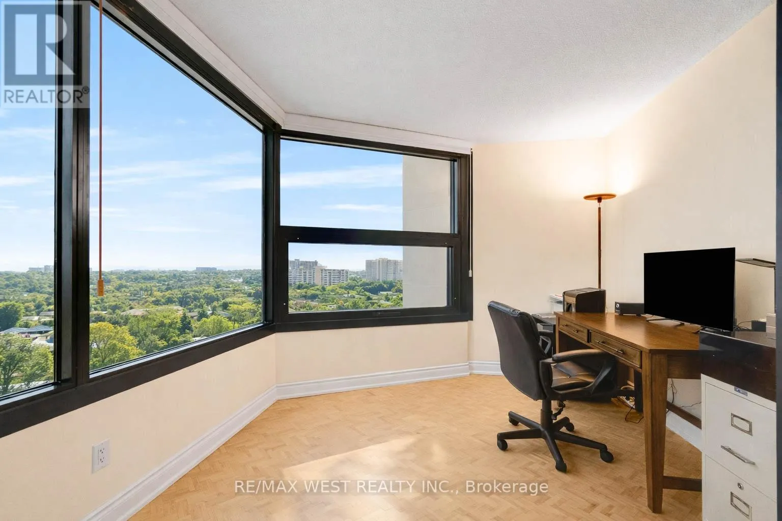 Cross Streets: Bloor St W and Dixie Rd. ** Directions: Dixie to Bloor St W. Welcome to Applewood Landmark, a well-established and sought-after community known for its exceptional amenities and comfortable lifestyle. This beautifully renovated 1-bedroom plus solarium suite offers a generous 1,086sf of bright and functional living space with stunning lake, city, and skyline views as your everyday backdrop. Thoughtfully renovated throughout, the unit blends modern finishes with comfort, style and quality. The open concept living and dining areas feature gorgeous refinished herringbone patterned floors and flows seamlessly to the sun-filled solarium that's perfect for an office, reading room or guest accommodation. The updated kitchen showcases quartz countertops, top-of-the-line appliances, and a charming breakfast area - a perfect spot to start your day. The generous primary bedroom serves as a peaceful retreat and includes an impressive walk-in closet for abundant well-organized storage and the beautifully renovated bathroom with a quartz-top vanity, elegant cabinetry, and updated fixtures come together in a clean, spa-inspired design. One parking spot, ensuite laundry and ensuite storage space finish this stylish suite. A rare opportunity to own a beautiful turnkey suite in a high demand building that presents an extensive list of amenities such as 24hr concierge security, Rooftop Deck, Indoor Rooftop pool with Sauna and Whirlpool, Party rooms, Guest Suites, Car wash, Convenience Store, Gym/Health Club, Pickleball court, Tennis Court, Shuffleboard, Billiards Rooms, Boardroom, Craft Room, Woodworking shop and golf practice area to name a few. Don't miss this unique opportunity! (id:27476)