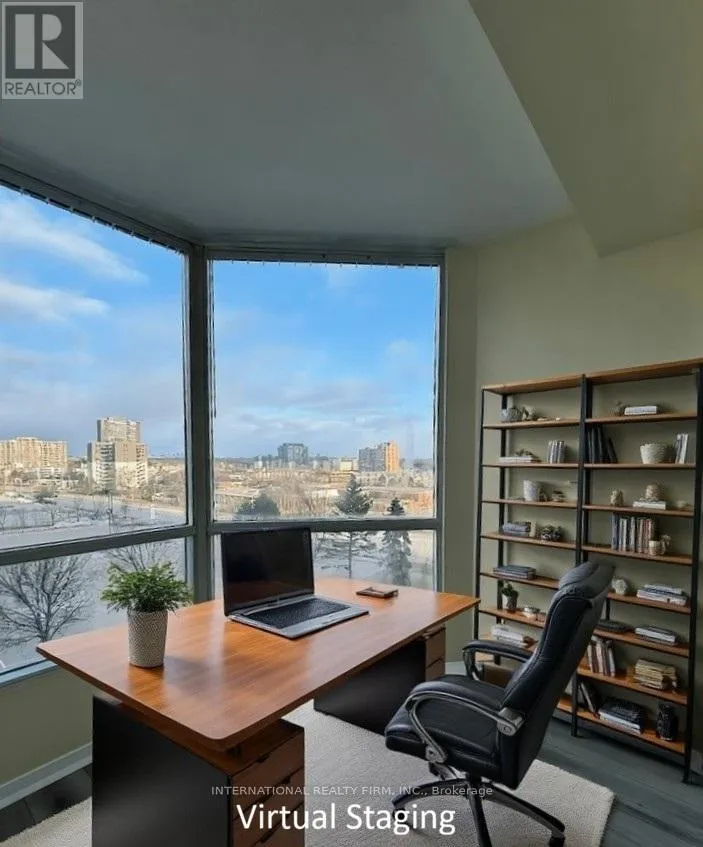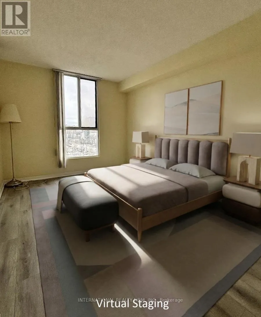 Cross Streets: Hurontario St & Dundas St W. ** Directions: Hurontario/Hillcrest. Newly renovated condo featuring unobstructed, breathtaking easterly views of the Toronto skyline and Lake Ontario. The entire home is freshly painted and upgraded with premium vinyl flooring throughout. Enjoy a modern kitchen with new lower cabinets and counters, complemented by updated appliances. The bathroom has been fully refreshed with a new vanity, new toilet, and new tub & enclosure. Convenient ensuite of high-end washer and dryer (3 year new). Offering approximately 900 sq. ft. of living space, this home includes 2 bedrooms plus a versatile sunroom/den. Steps to Cooksville GO Station and the upcoming Hazel McCallion LRT. Close to major Highway 403 & QEW. Situated in a well-maintained building with a safe & friendly community of young families and professionals. This property delivers exceptional value for size and lifestyle near Square One Shopping Centre and other City Centre amenities and attractions. (id:27476)