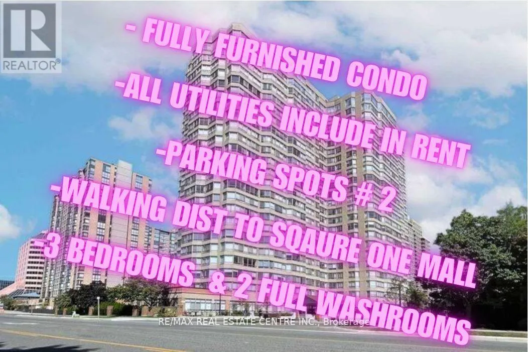 Cross Streets: Burnhamthorpe & Hurontario. ** Directions: Enfield Pl & Kariya Dr. This Beautiful Most Spacious & Completely Renovated 2 + 1 Condo with 2 Full Washrooms Located In the Heart of Downtown Mississauga Next to Square One Mall. ***Can Be Provided Furnished or Unfurnished. ***All Utilities are Included In the Rent including High Speed Internet too. The Apartment comes with Ensuite laundry. Included Bonus *** 2 (Two)Parking Spot. The Building's Amenities Include Indoor Pool, Theater, Party Room, Gym, Squash Court, Steps To Square One, Go Transit, Highways, Sheridan College & Humber College, YMCA, Mississauga Celebration Square, Central Library, Kid Day Cares. Close to Cooksville GO station, and Future LRT. All Furniture As Seen in the Pictures is Included. Landlord is Open to Renting to Newcomers & Mature Students with Good Financials (id:27476)