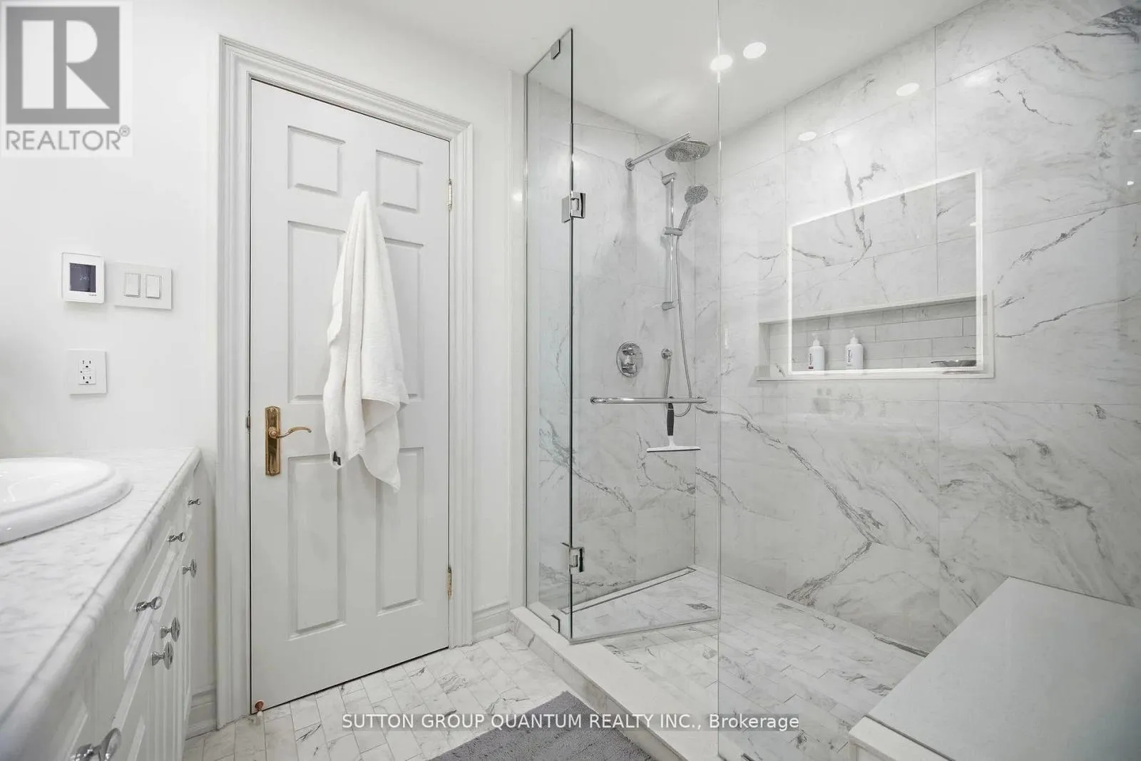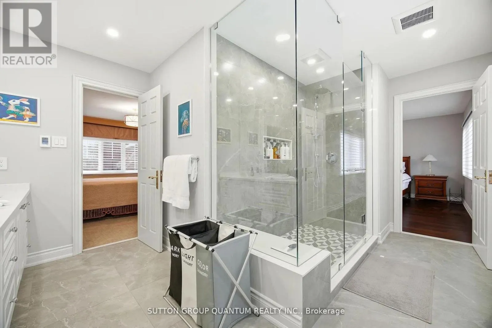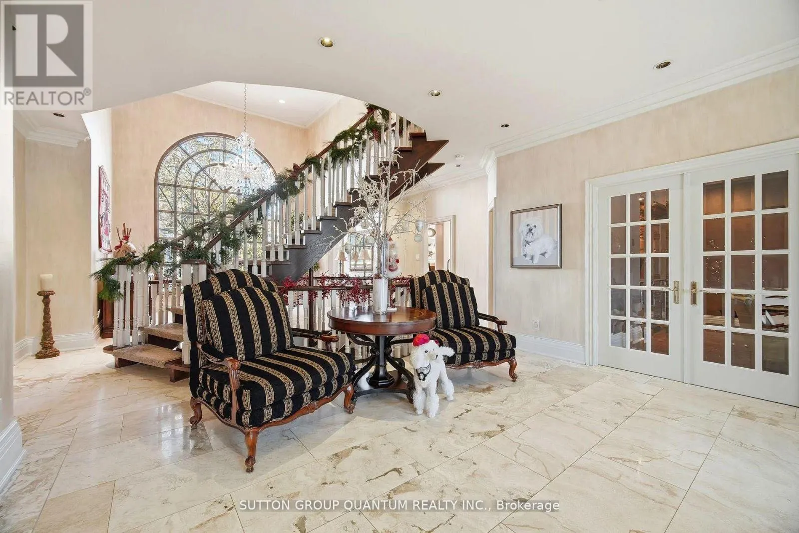 Mississauga Rd and Geran Cres Elegant, luxury home mere steps to Mississauga Golf and Country Club combines spacious contemporary living with striking architectural details, highlighted by a dramatic staircase and an oversized floor-to-ceiling window that floods the interior with natural light. Recently renovated kitchen blends modern style with functionality. Striking quartz island combined with top of the line stainless steel appliances (Sub-Zero, Wolf, Bosch and Miele) surround custom cabinetry showcasing classic craftsmanship and design with sleek finishes, walk-in pantry and breakfast dining area. 6900 square feet of total living space. Main floor living, family room, and den boasts 9 1/2 ceilings. Private professionally landscaped backyard that features saltwater pool (new liner) with entertaining areas. 2nd level primary suite boasts spa-like ensuite with walk-in closets with island, three other bedrooms have recently renovated washrooms with heated floors. Lower level has entertainmnet area and full gym. Lots of storage rooms. Just minutes to QEW, 403, Port Credit Village, MGCC and Credit Valley golf club, University of Toronto Mississauga campus. Please note there is no sign on the property. (id:27476)