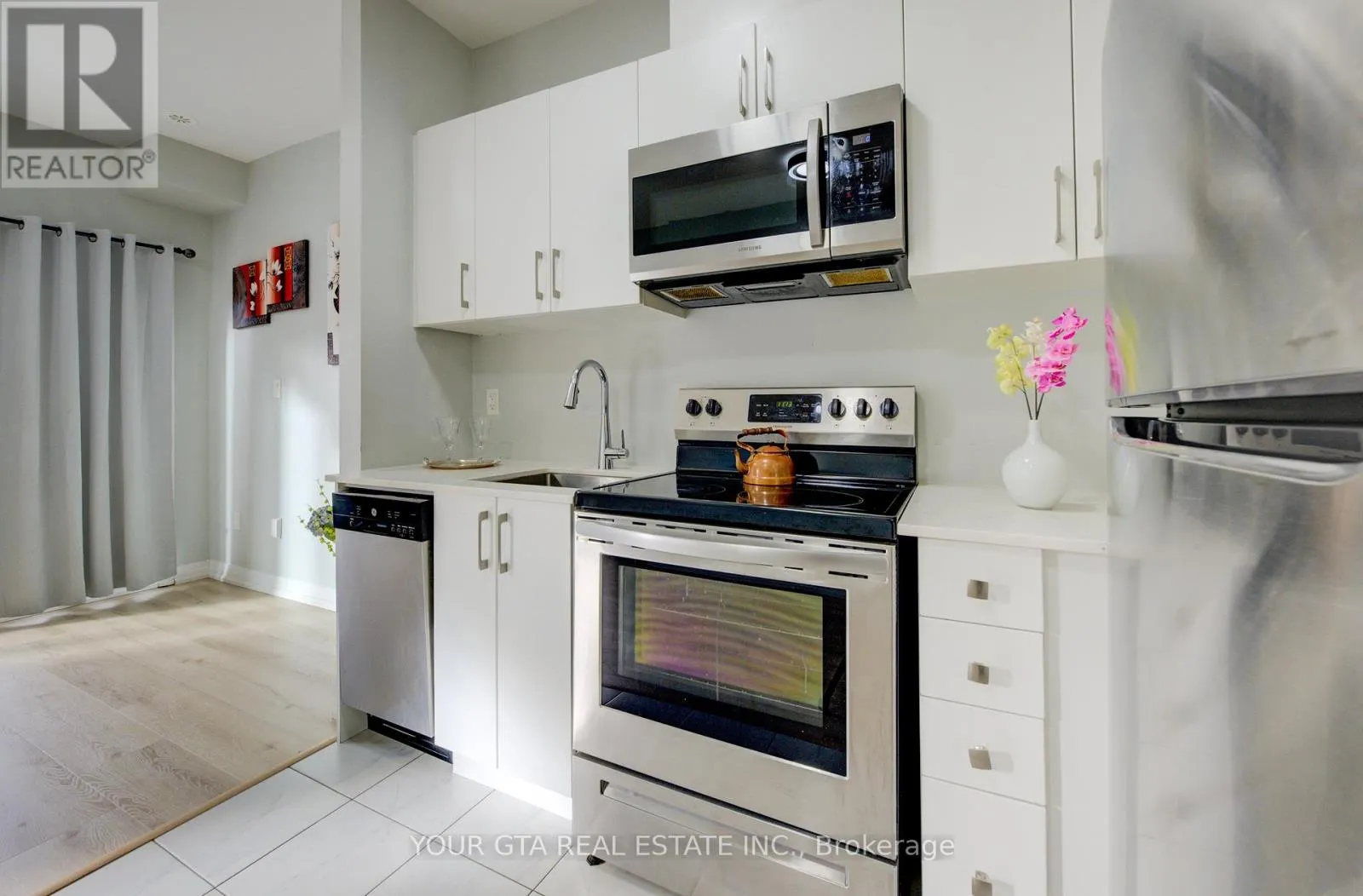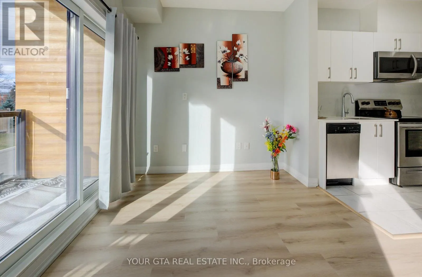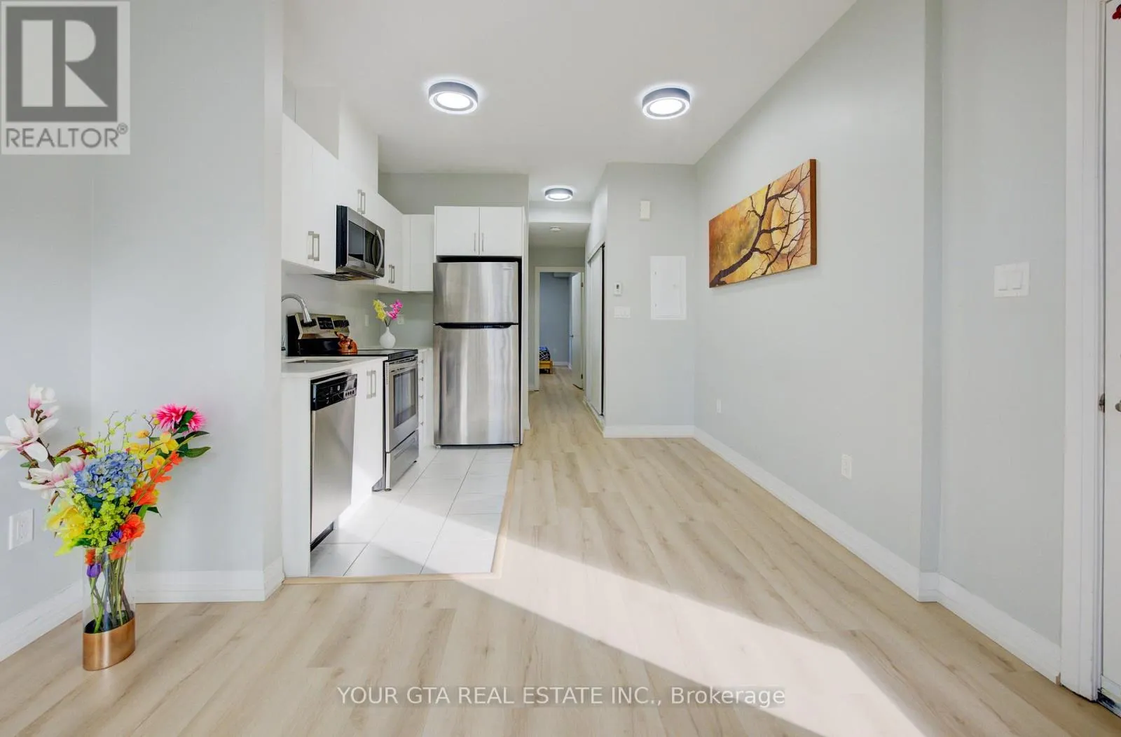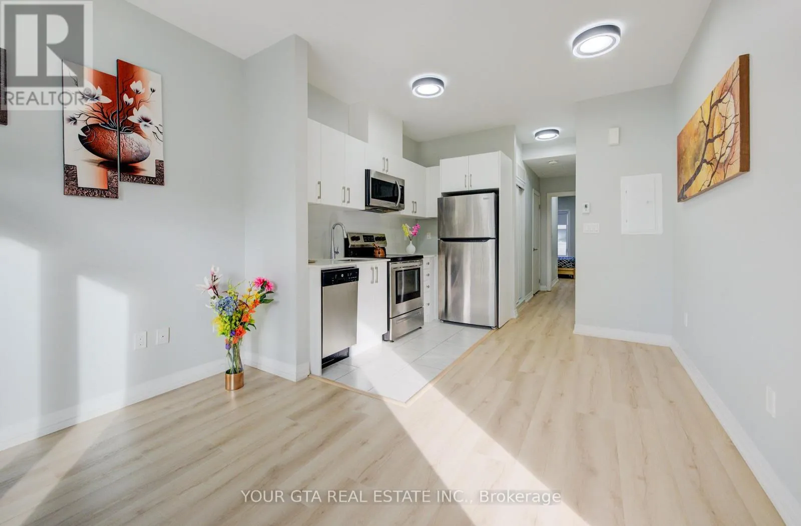 Cross Streets: Bromsgrove & Southdown Rd. ** Directions: From Southdown to Broomsgrove. This beautifully updated stacked townhouse offers a perfect blend of comfort and convenience, ideal for modern living. Located on the main level (not basement), this home features: One spacious bedroom with a custom closet for ample storage, One modern bathroom with stylish fixtures - LED mirror and organizer, Open-concept living area providing plenty of space for a dining table and relaxing living room setup, 9-foot ceilings, enhancing the feeling of openness, Balcony perfect for relaxing in the summer, equipped with an all-season mat for year-round use, Upgraded flooring throughout, offering a fresh, clean lookThe primary bedroom comes with custom closet storage, new glass doors, and blackout blinds for optimal privacy and light control. location is ideal Walking distance to Clarkson GO Station, offering easy access to Union Station and multiple other transit options, Only 3.6 km to Lakeside Park, providing stunning views of Lake Ontario. Close to walking trails, parks, and local amenities such as restaurants, grocery stores, and more. Quick access to major highways. This townhouse offers a great combination of easy access to public transit, scenic surroundings, and modern updates-making it the perfect home for anyone looking for a stylish, low-maintenance lifestyle in a prime location. One parking and one locker included in the purchase price. (id:27476)