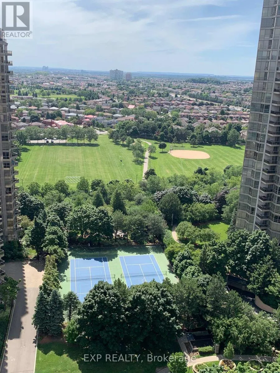 Kingsbridge Garden Circle & Hurontario St Discover exceptional condo living in the prestigious Skymark West building at 25 Kingsbridge Garden Circle - an approximately 1,118 sq ft, north-west facing 2 + den, 2-bath suite with stylish laminate flooring, California blinds and great natural light. Living in #2120 gives you access to amazing amenities such as an indoor pool, sauna, library, patio area, rec room, squash court, tennis court & virtual golf & putting green, billiards room, bowling alley, party room, fitness & meeting room. Ideally located in Mississauga's Hurontario neighbourhood with easy access to Square One Shopping Centre, transit, highways and a vibrant selection of shops, restaurants and amenities right at your doorstep, this residence balances comfort with convenience. (id:27476)