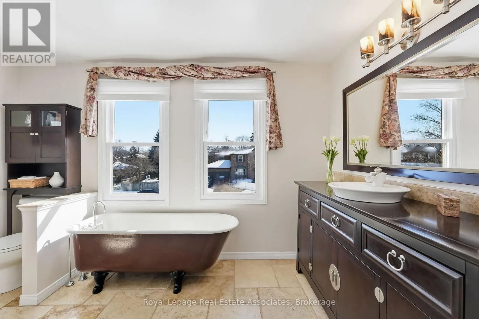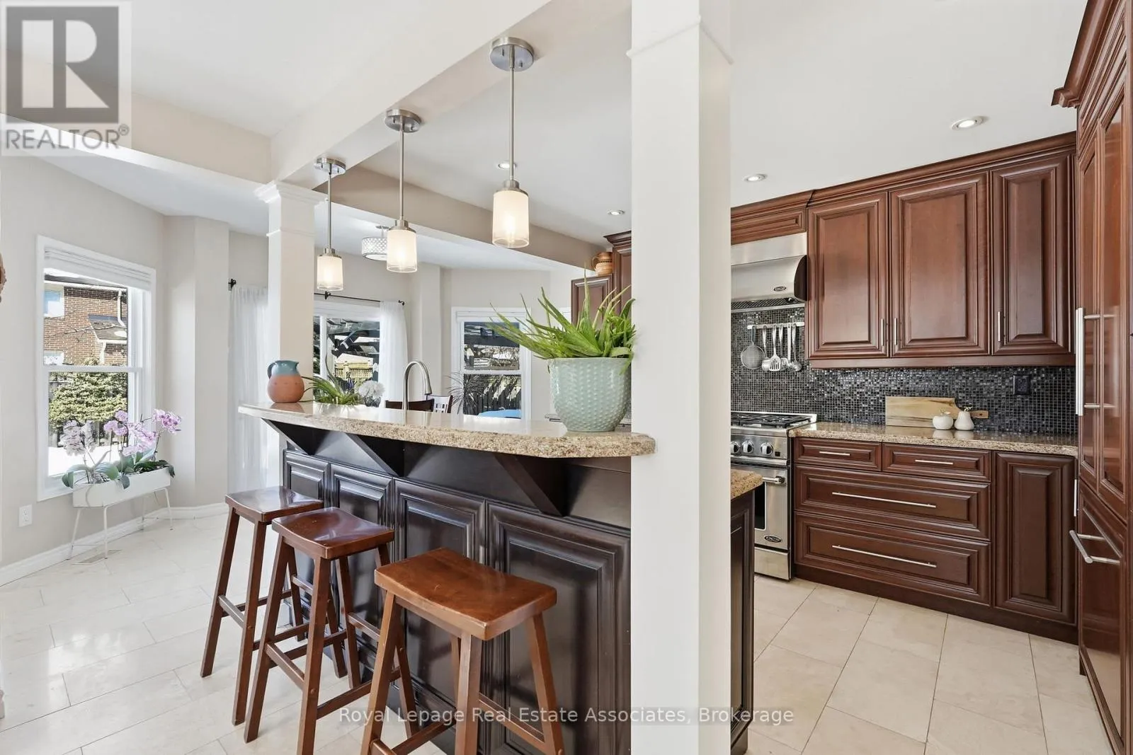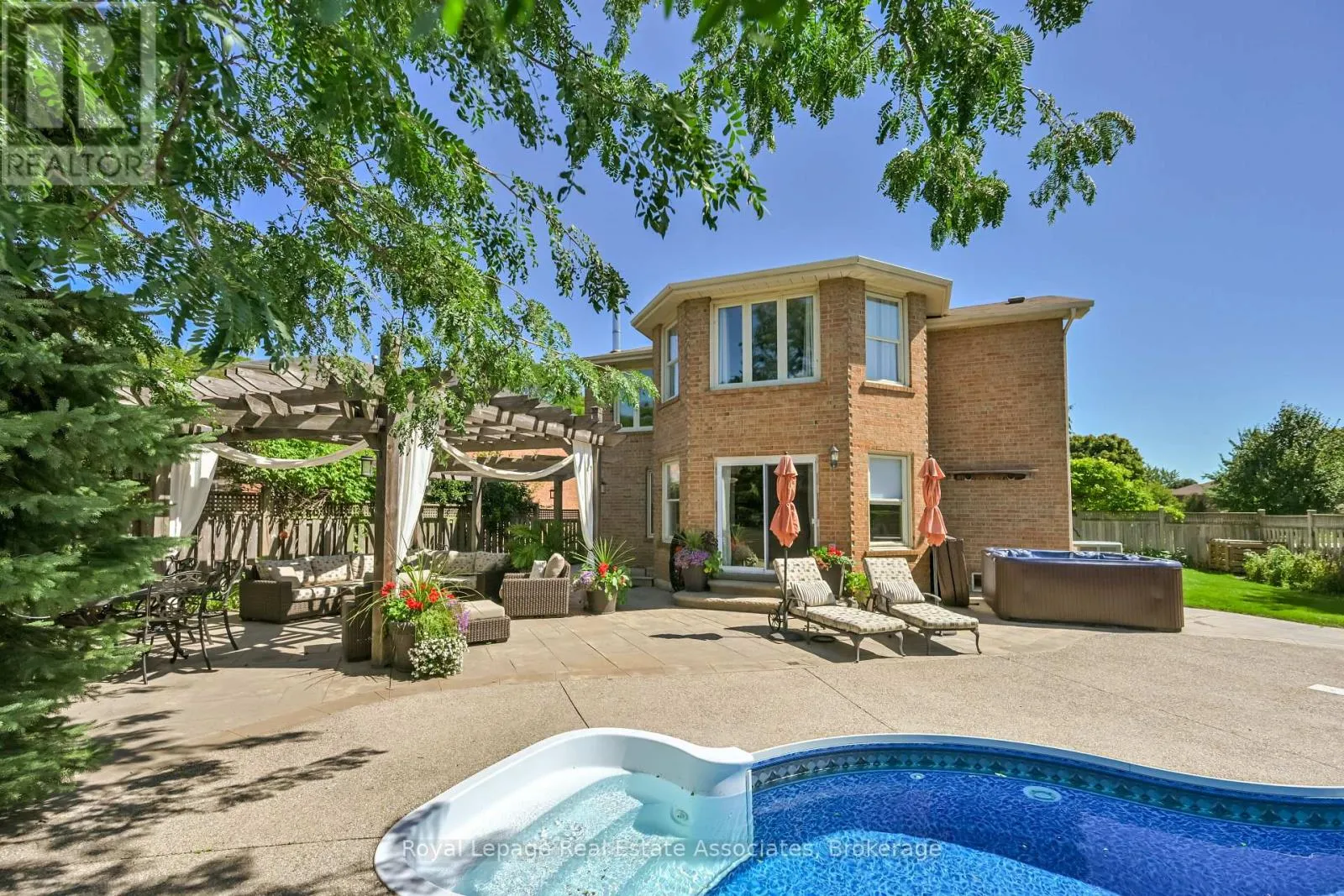 Spring Creek Cres & Millers Grove Welcome to 3173 Spring Creek Crescent, a stunning 4+1 bedroom, 3.5 bath, home located in a prestigious Meadowvale enclave. Set on a premium corner lot in a quiet, family-friendly neighbourhood, this property offers a private backyard oasis ideal for entertaining & family living. A grand foyer with a curved staircase & natural stone tile welcomes you inside. Off the entry, a bright formal living room features a beautiful double-sided gas fireplace that is shared with the spacious dining room. The two-tone open-concept eat-in Chef's kitchen offers quartz countertops, designer appliances & flows seamlessly into the dining area, complete with extended pantry space & warmed by the shared double-sided fireplace. The sunken family room adds warmth and character with hardwood flooring and a wood-burning fireplace, while the main level is completed by a powder room & a functional laundry mudroom with access to both the garage & backyard. Upstairs, the expansive primary retreat features a private sitting area, a spa-inspired ensuite with clawfoot tub and glass shower, along with a walk-in closet for her and an additional closet for him. Three additional bright bedrooms, hardwood flooring throughout, and a four-piece bathroom complete the upper level. The finished basement is ideal for entertaining, offering a built-in wet bar, recreation room, sitting area with gas fireplace, a large three-piece bathroom, and an additional bedroom with ample storage. Step outside to your private fully fenced backyard retreat, complete with a kidney-shaped inground pool with diving rock, hot tub, pergola, concrete patio, and generous green space. Move in and enjoy from day one. Convenient Meadowvale location close to highly sought after Plum tree, St. john of the cross schools, Eden woods, parks, places of worship, walking trails, lake aquitaine and everyday shopping/amenities. Minutes to Meadowvale Town Centre, community centre, library, public transit, and major highways for easy commuting. (id:27476)