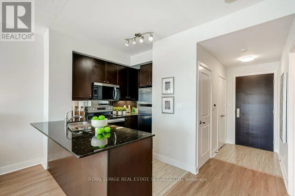Cross Streets: Hwy 10/Burnhamthorpe. ** Directions: Hurontario to Absolute. Welcome to the iconic "Marilyn Monroe" buildings in the heart of downtown Mississauga. This beautifully renovated unit has been refreshed from top to bottom and is completely move-in ready.Step inside to discover nine-foot ceilings, brand-new Luxury Vinyl Plank flooring and a freshly painted interior that gives the entire space a bright, modern feel. The updated kitchen features granite countertops, a mirrored backsplash, and stainless steel appliances, including a new range, new dishwasher, and new built-in microwave, making everyday cooking both stylish and convenient.Enjoy a naturally bright, open, and comfortable living space that extends to a generous 95 sq ft private balcony, where you can take in stunning south-facing city views, including the CN Tower in the distance. The spacious bedroom also features its own walk-out to the balcony, creating a seamless indoor-outdoor feel and a perfect spot to start or end your day. The well-appointed 4-piece main bathroom has been updated with a new vanity cabinet.Additional features include in-suite laundry, 1 underground parking space (Level 5 #48), and 1 locker (Level 5 #63).Located in one of Mississauga's most recognizable buildings, residents enjoy an unbeatable location just minutes from shopping, dining, transit, and major highways. Exceptional amenities include an indoor/outdoor pool, hot tub, guest suite, gym, 50th-floor lounge, and concierge/security service.Whether you're a first-time buyer, investor, or downsizer, this refreshed suite offers style, convenience, and incredible skyline views in one of the city's most sought-after addresses. (id:27476)