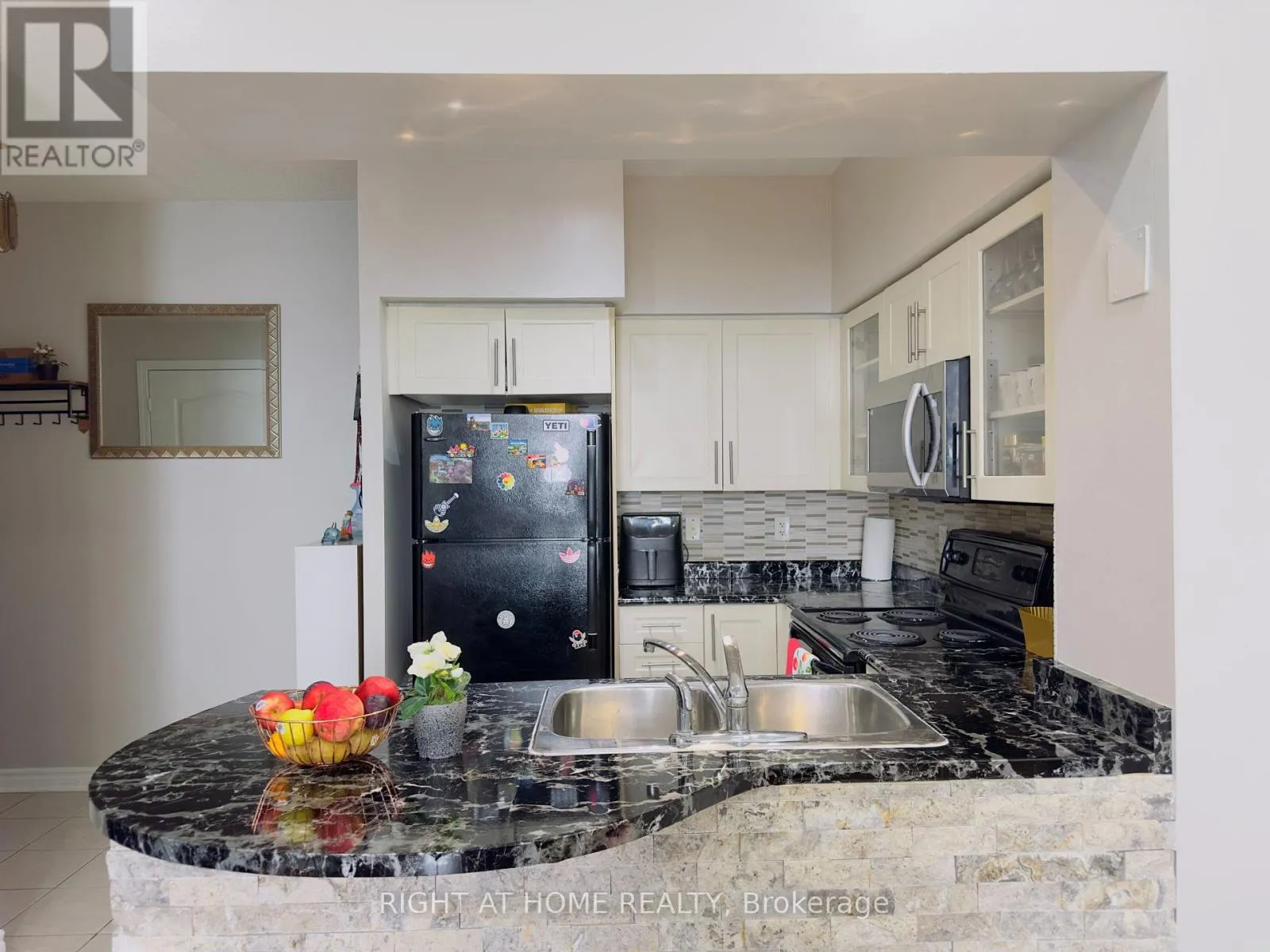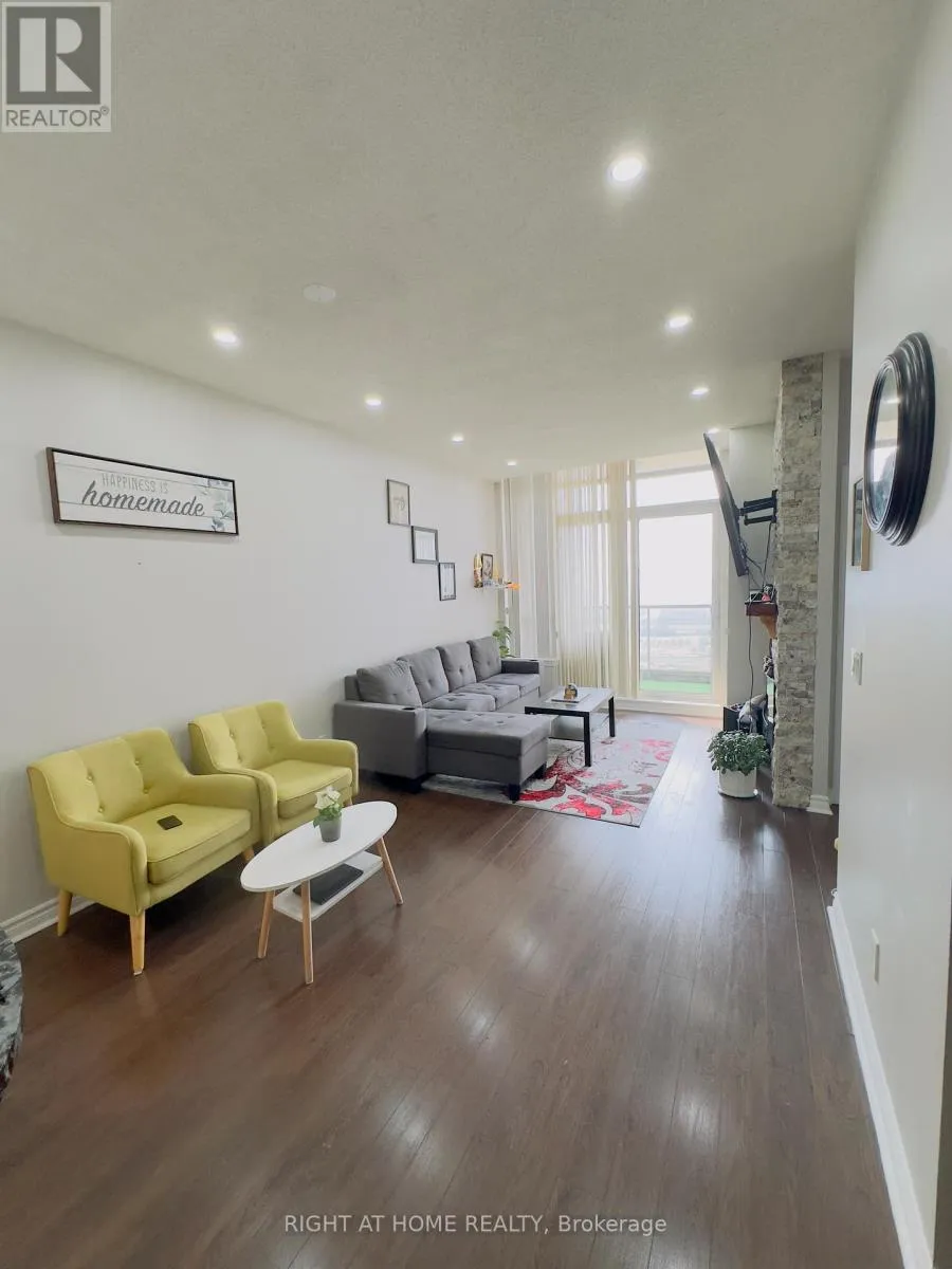Cross Streets: Burnhamthorpe Rd & Confederation Pkwy. ** Directions: Princess Royal Dr & Living Arts Dr. Discover the perfect blend of comfort and style in this stunning 1 Bedroom + Den condo with soaring 9-foot ceilings with pot lights. The open-concept layout features a bright and spacious living room complete with a custom stone accent wall and a cozy fireplace ideal for relaxing evenings. The modern kitchen boasts sleek finishes and a custom stone breakfast bar, perfect for morning coffee or casual meals. Step out onto your private balcony and take in sweeping views of the city skyline and breathtaking sunsets. Located just minutes from Hwy 403, Square One Mall, the GO Station, and Mississauga City Centre, you'll also benefit from the convenience of the upcoming Hurontario LRT right around the corner. Daily errands are a breeze with Walmart, Food Basics, Rabba, YMCA, and countless dining options all nearby. Residents also enjoy access to fantastic building amenities, and as an added bonus, the condos exterior corridors are currently being refreshed with elegant new floor tiles and modern wallpaper enhancing both aesthetic appeal and long-term value. This is city living at its best! (id:27476)