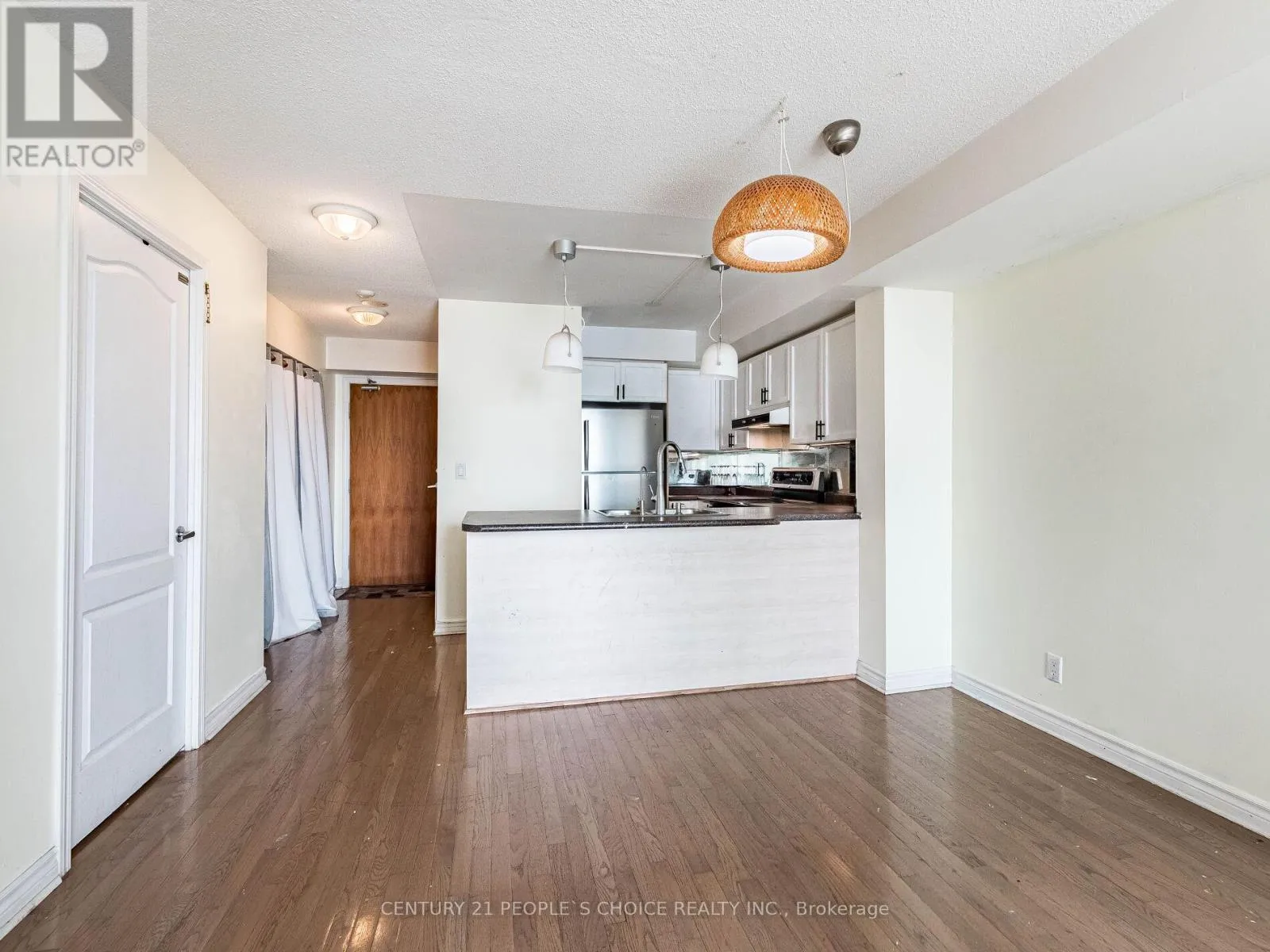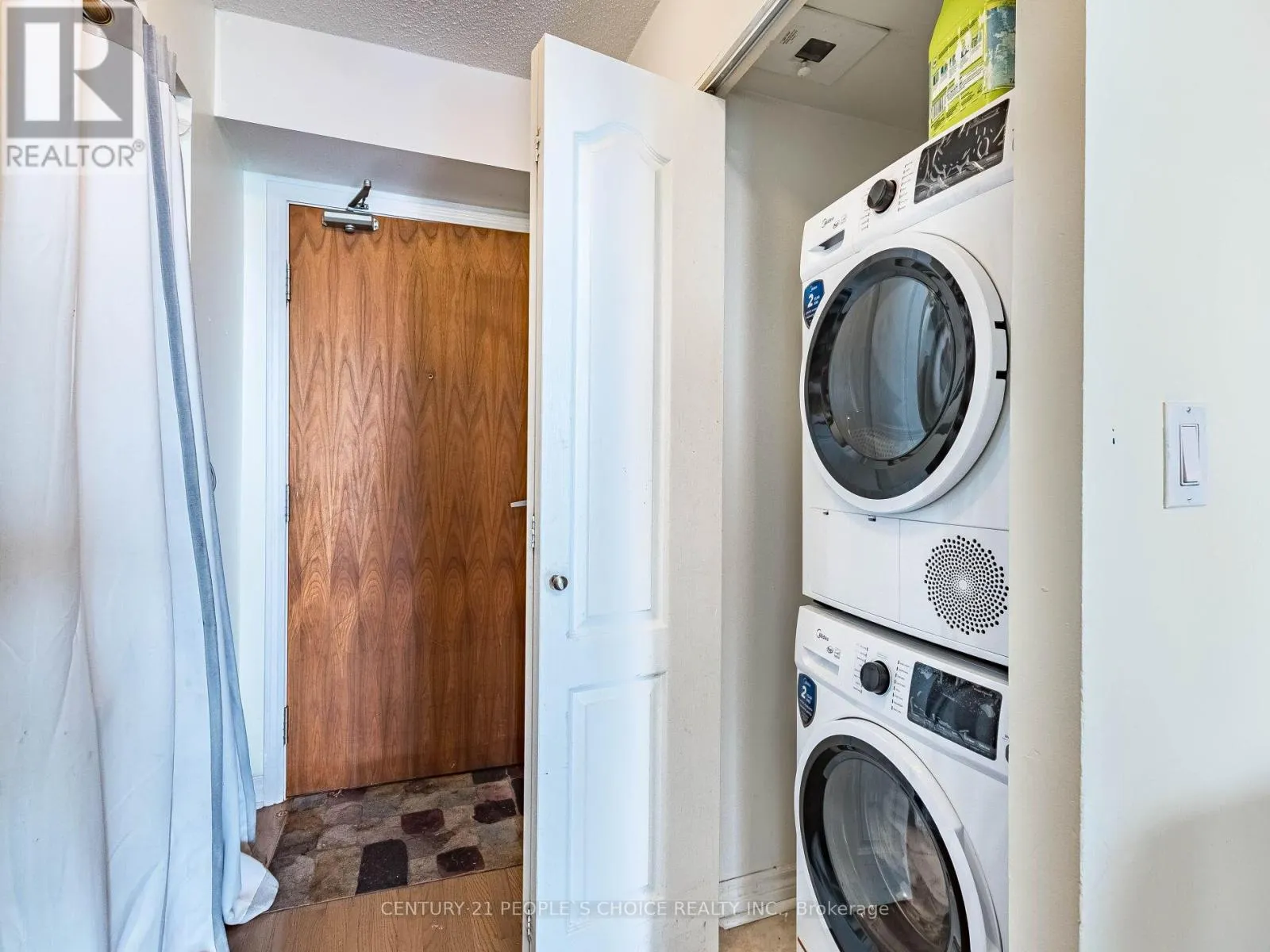Hurontario/Burnhamthorpe Welcome to this bright and modern 1 Bedroom + Den condo is in the heart of Mississauga. This well-designed suite features an open concept layout with a spacious living and dining area, floor-to-ceiling windows, and plenty of natural light. The modern kitchen offers sleek cabinetry, appliances, and ample counter space. The primary bedroom includes a large closet, while the versatile den is perfect for a home office or guest space. Enjoy a private balcony with city views and the convenience of in-suite laundry. Building amenities include: Indoor Pool, Sauna, Gym, Games Room, Party Room, Yoga room24-hour concierge, fitness centre, indoor pool, party room, and visitor parking. Located steps to Square One Shopping Centre, Sheridan College, restaurants, transit, With The Future LRT, and major highways (403/401/QEW). Ideal for professionals or couples seeking comfort and convenience in a prime location. Don't miss your chance. Book your showing today! One parking space included. Locker available. No smoking. (id:27476)