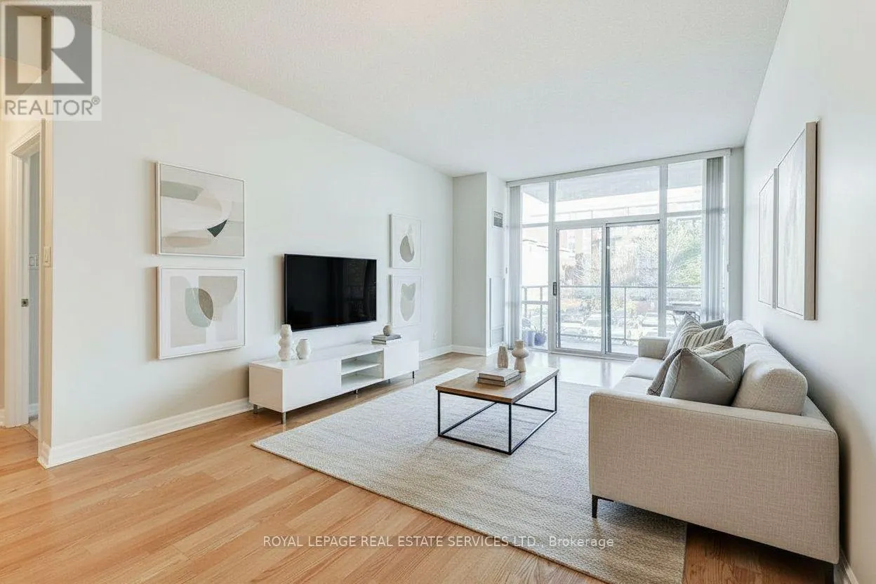 Cross Streets: Lakeshore Rd E & Helene St S. ** Directions: Lakeshore Rd E to Helene St S to Port St E. Step into refined living and comfort in this exquisite boutique condominium, The Regatta III, perfectly situated in the heart of Port Credit. This spacious north-east facing 1-bedroom plus den suite spans 700 square feet and combines modern comfort with timeless style. Inside, soaring 9-foot ceilings and expansive windows flood the open-concept layout with natural light, creating a bright and airy ambience. Rich hardwood floors flow throughout the living and dining areas, while the thoughtfully designed kitchen features wood cabinetry, included appliances, and generous counter space-ideal for everyday cooking or entertaining. The primary bedroom provides a peaceful retreat, while the versatile den adapts easily as a home office, reading nook, or guest room. Step out onto the private balcony to enjoy your morning coffee or relax at the end of the day while taking in the lively city views. Located just steps from Lake Ontario and the Waterfront Trail, outdoor recreation is always within reach. Trendy restaurants, boutique shops, and the charm of Port Credit Village are right outside your door. For commuters, the Port Credit GO Station offers quick access to downtown Toronto in under 30 minutes. Practical features include one owned underground parking space (P170) and a locker (Level B, Unit 114), providing convenience and storage. The building is professionally managed by FirstService Residential, ensuring excellent maintenance and peace of mind. Don't miss this opportunity to enjoy the perfect balance of waterfront serenity and urban accessibility in one of Port Credit's most coveted addresses.Note: Floor plan is not to scale. (id:27476)