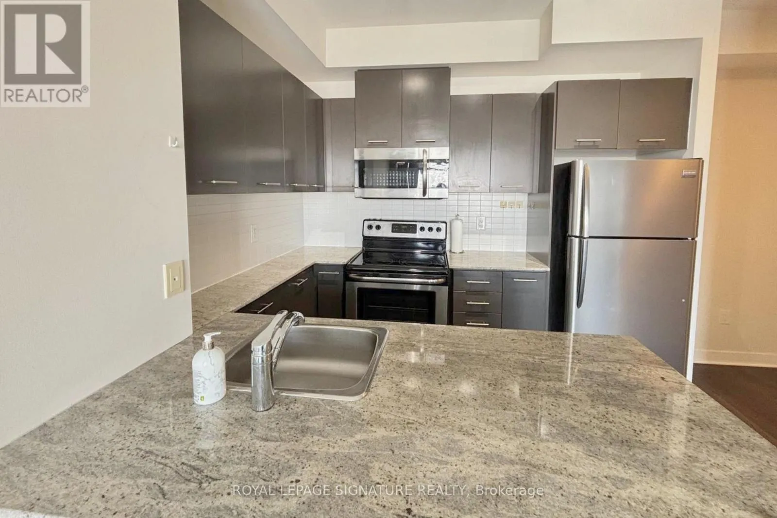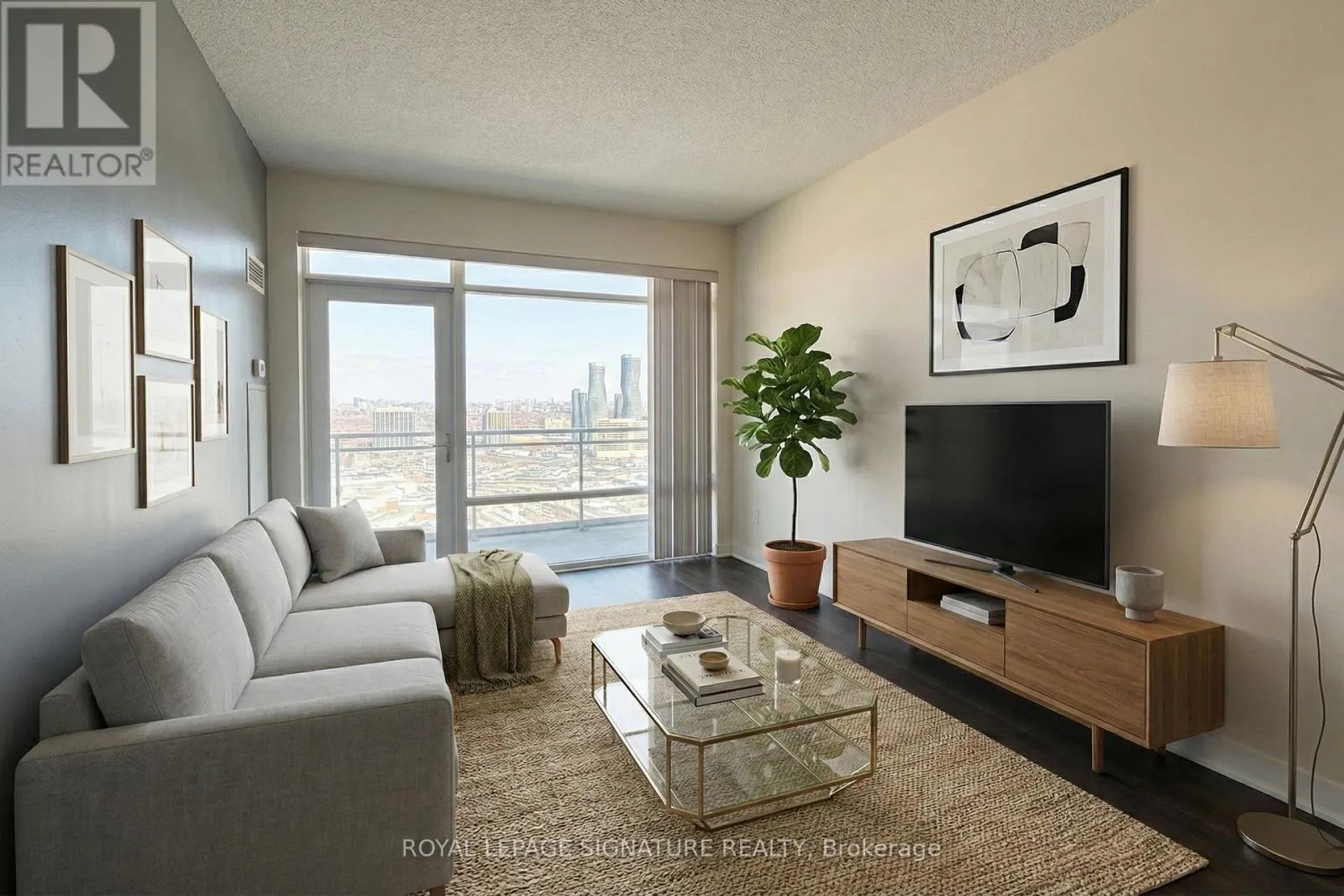 Square One Dr & Living Arts Dr Experience stylish urban living in this stunning 1 bedroom, 1 bathroom condo featuring soaring9 foot ceilings and a bright, modern layout. The kitchen is finished with rich dark espresso cabinetry, sleek granite countertops, a matching backsplash, and stainless steel appliances,all flowing seamlessly into a contemporary living space with elegant bamboo flooring throughout. Just off the kitchen, a convenient built in desk nook provides the perfect work from home setup, while the entryway features an extra large coat closet offering exceptional storage rarely found in one bedroom layouts. Step out onto the large private balcony overlooking Mississauga and on a clear day, views of the Toronto skyline including the CNTower. The updated bathroom showcases clean, modern finishes, creating a comfortable and refined retreat. One parking space is included for added convenience. Residents enjoy access to exceptional resort style amenities including a rooftop BBQ terrace, basketball court, minigolf, theatre room, fully equipped gym, and meeting and party spaces. Ideally located just steps to Square One Shopping Centre, Sheridan College, the bus terminal, Living Arts Centre,and Celebration Square, this condo offers the perfect blend of comfort, convenience, andvibrant city living in the heart of Mississauga. Professionally Managed By Condo1 Property Management. (id:27476)