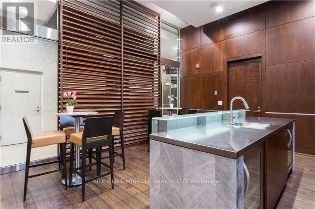 Cross Streets: Burnhamthorpe & Hurontario. ** Directions: Burnhamthorpe & Living Arts. Welcome to Ultra Ovation at 330 Burnhamthorpe Rd W, a prestigious Tridel built residence in the heart of Mississauga City Centre. This beautifully maintained 1 Bedroom + Enclosed Den suite (approx. 683 sq. ft.) features 9 ft ceilings, laminate flooring, and a bright, functional open-concept layout with southern exposure. The enclosed den with French doors is spacious enough to be used as a second bedroom or private office. The modern kitchen offers granite countertops, ceramic backsplash, breakfast bar/island, and full-size appliances. Enjoy resort-style amenities including 24-hour concierge, indoor pool, hot tub, sauna, fitness centre, virtual golf, party lounge, and guest suites. Unbeatable location just steps to Square One Shopping Centre, Living Arts Centre, Mississauga Central Library, YMCA, transit, and major highways. (id:27476)
