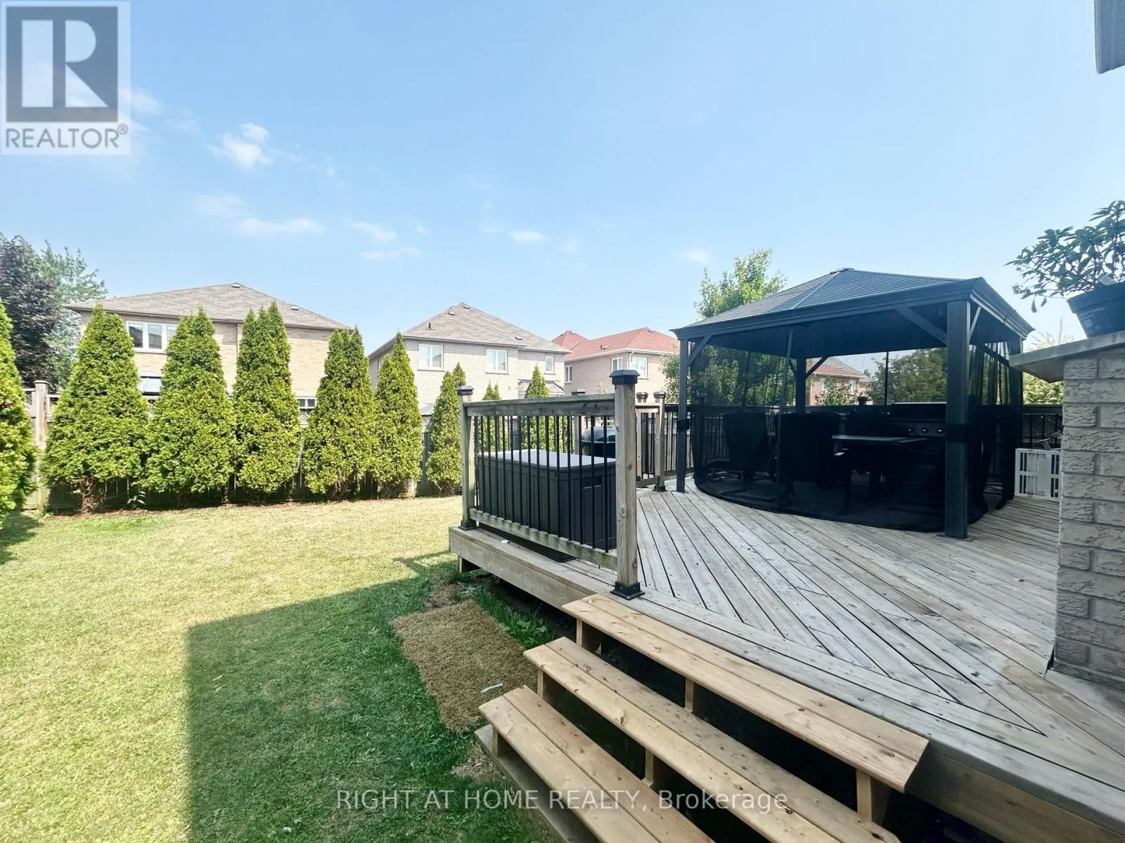 Tacc / Winston Churchill Luxurious and beautifully upgraded 4-bedroom executive home in Mississauga's prestigious Churchill Meadows. Offering timeless elegance with modern functionality, this residence has been freshly painted throughout and showcases premium hardwood floors, a redesigned staircase, and the removal of popcorn ceilings for a bright, contemporary feel. The chef-inspired kitchen features refaced cabinetry with quartz countertops, stainless steel appliances, and a breakfast area with walk-out access to an extra-large private backyard perfect for entertaining or family gatherings. The family room, complete with fireplace, flows seamlessly into formal living and dining areas for effortless hosting. Upstairs, the grand primary retreat boasts dual walk-in closets, a fully renovated spa-like 5-piece ensuite, and a serene sitting area. Each additional bedroom is generously sized with ensuite or semi-ensuite access. Bathrooms throughout the home feature quartz countertops for a cohesive, luxurious touch. The basement, has a separate private entrance, is framed and ready to be completed as an in-law suite or income property much of the expense already done. A rare no-sidewalk lot allows for parking of up to 4 cars on the driveway, in addition to a double garage. Ideally located near top-rated schools (Stephen Lewis SS), parks, Churchill Meadows Community Centre, places of worship, Credit Valley Hospital, shopping, and major highways (403/401/407), this property combines convenience, comfort, and modern upgrades. Truly move-in ready and a rare find in one of Mississauga's most family-friendly neighborhoods. (id:27476)