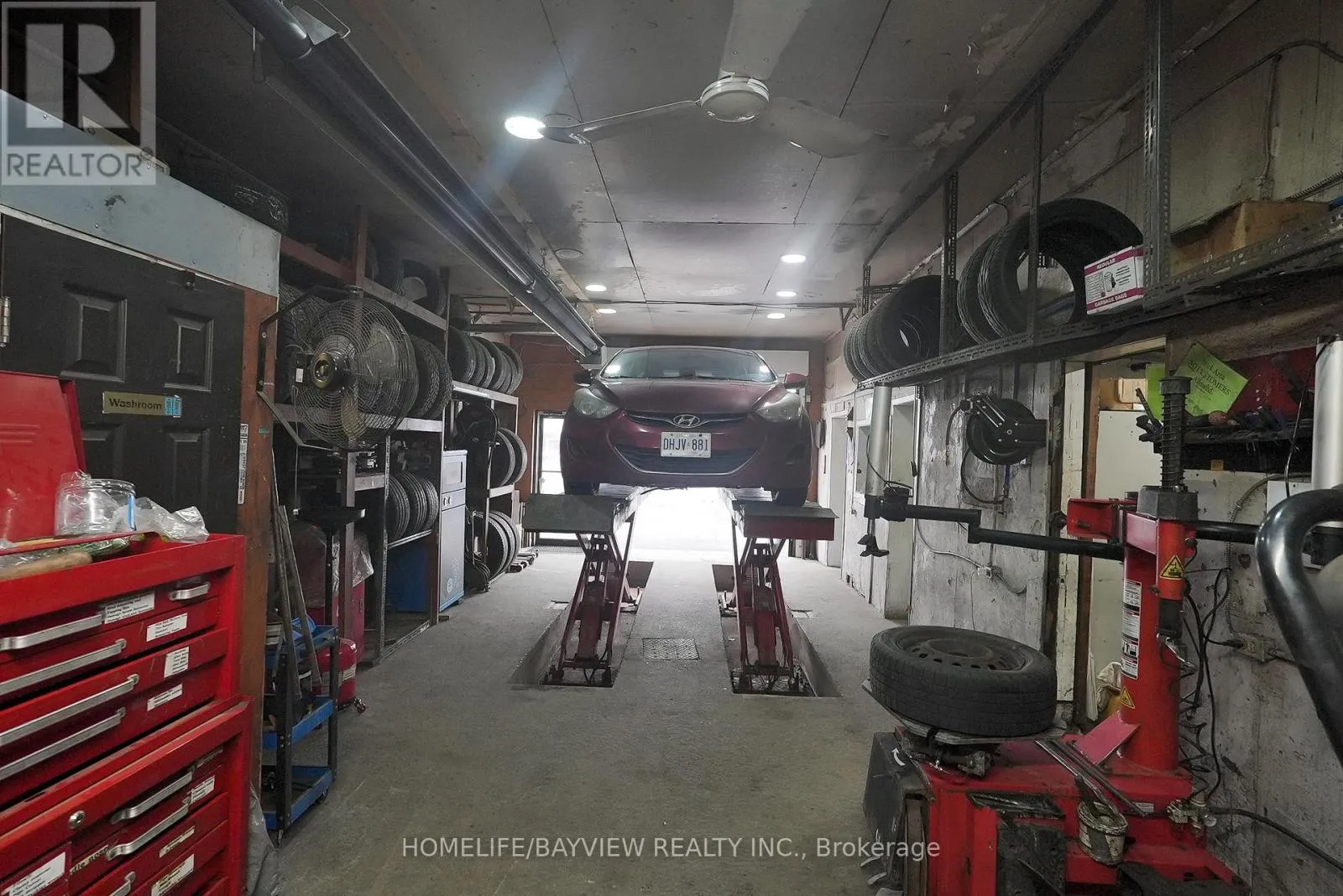Lakeshore Rd E/East Ave Corner property with rare automotive zoning including specialty auto shop, repair, collision, car wash, & car sales. Ideal for owner-operator/end-user or investor. Many permitted uses make this a very versatile property for your portfolio. Currently used as a tire shop and auto glass repair. Also doing oil changes, brakes, & suspension. Price includes hoist, compressor, & balancer. Ideal property for an investor or end-user. Prime exposure on busy Lakeshore Rd with thousands of cars passing daily. Extra income from Bell Canada antennae $6,500/year. Fits 10-15 cars at the back, plus 6 cars in front. Act fast - priced to sell! Please do not call business directly or visit without appointment. Please do not disturb staff or customers. (id:27476)