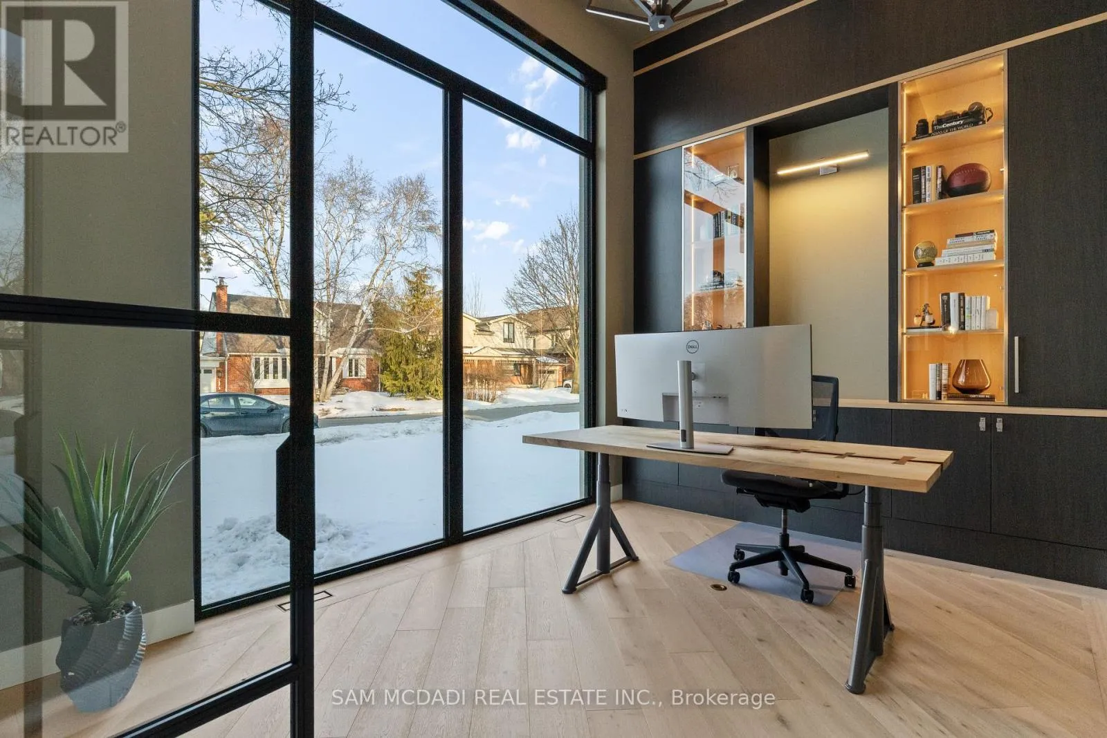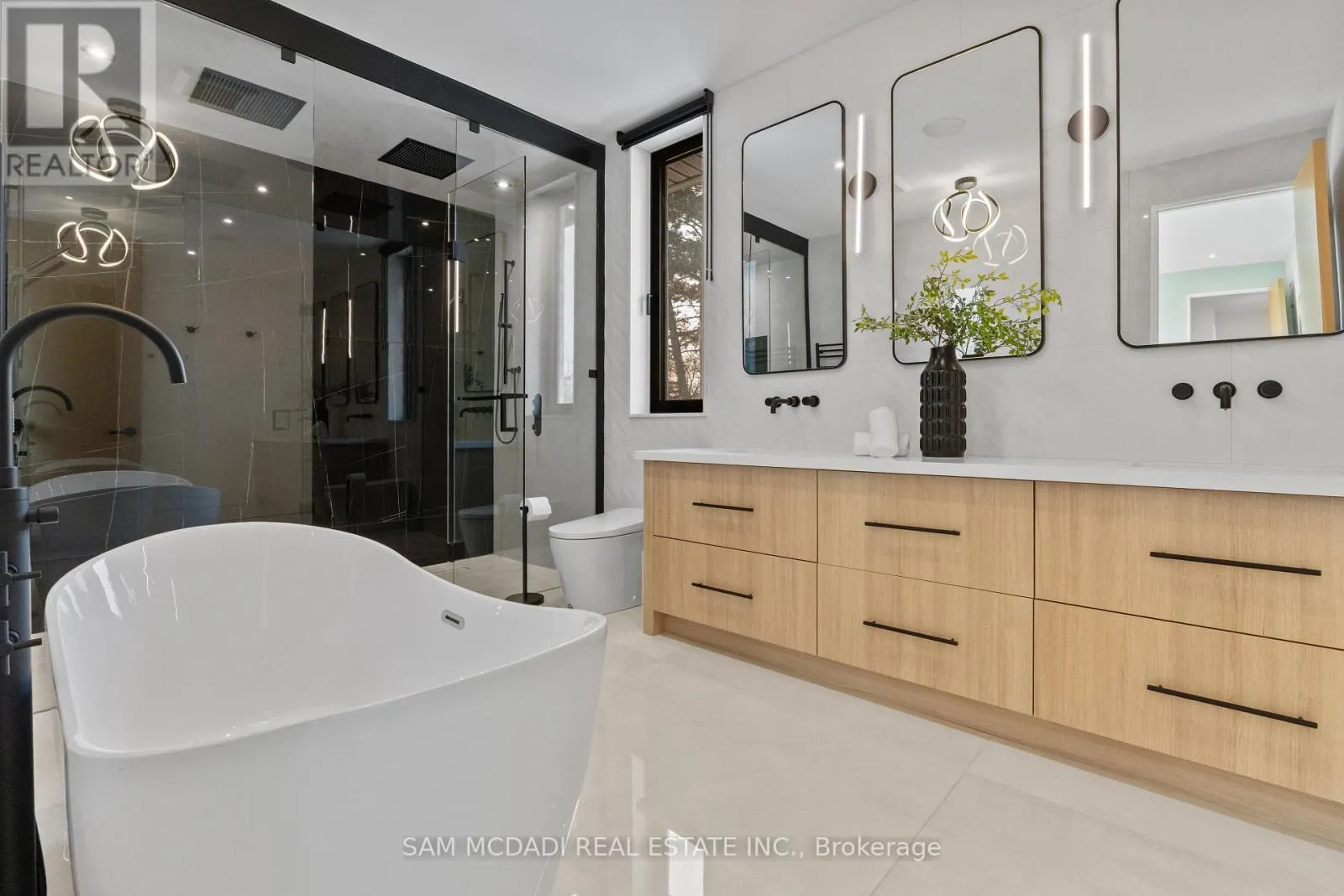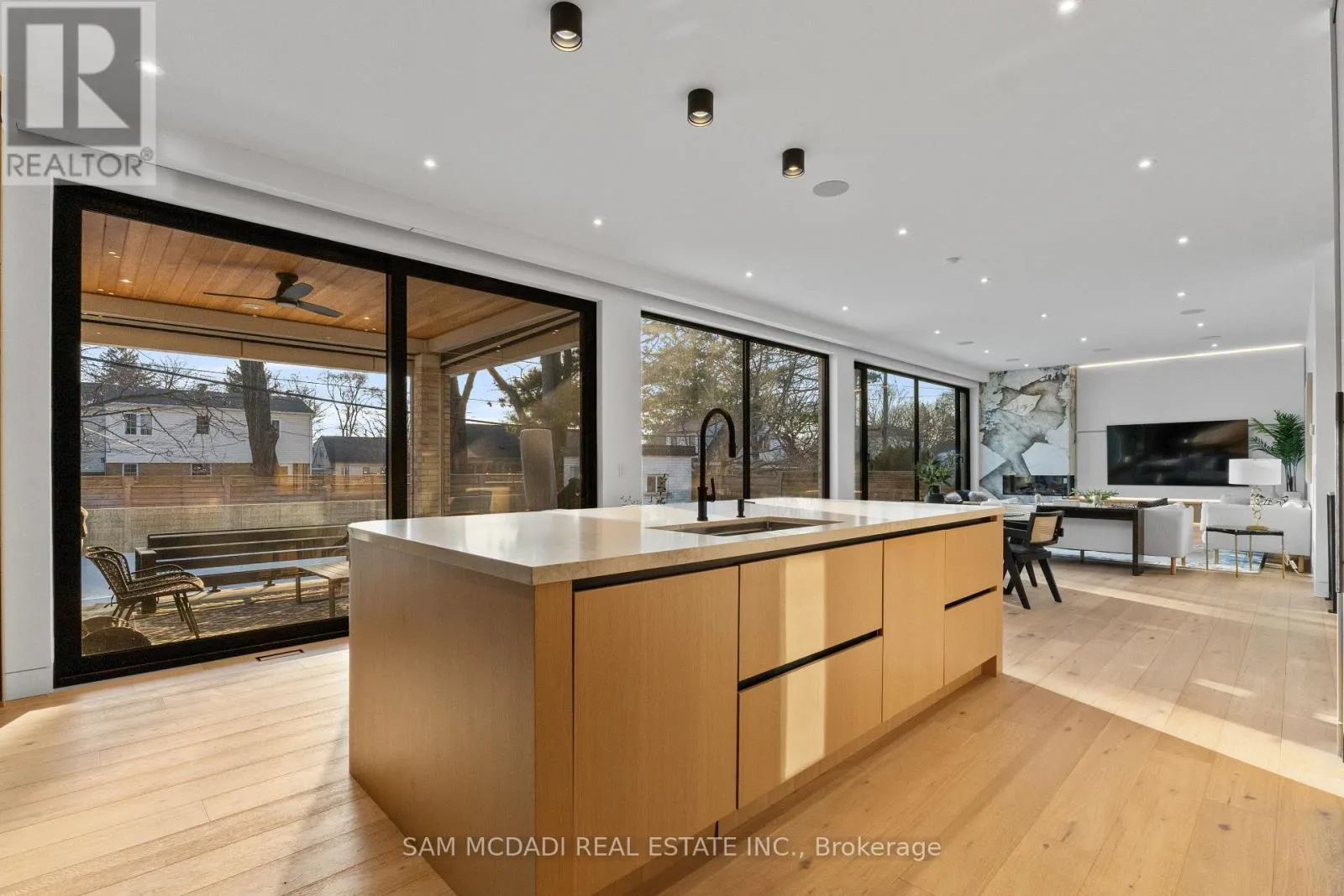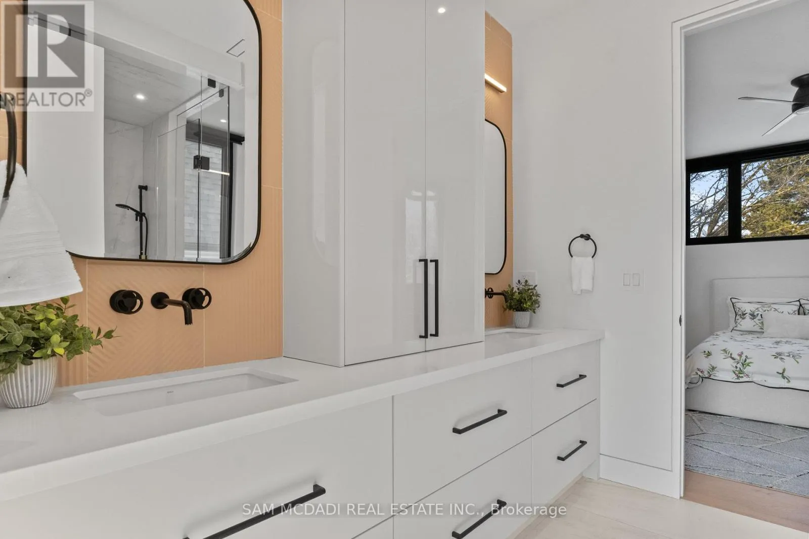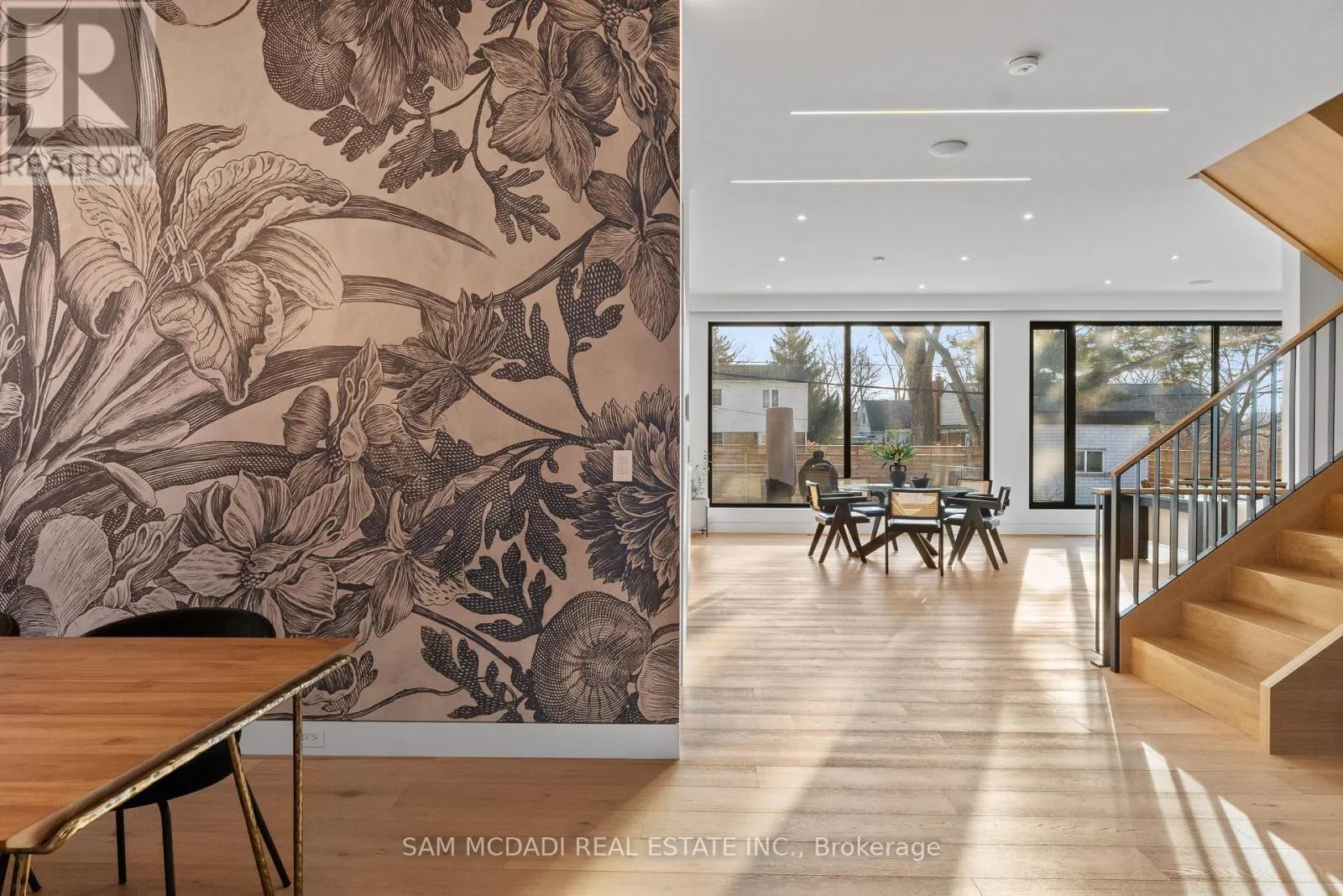 Cross Streets: Queensway E & Cawthra Rd. ** Directions: Heading northbound on Cawthra Rd, turn right onto Melton Dr, then right onto Bartlett Ln. then left onto Harcourt Cres, the property will be on your right side. Welcome to 2186 Harcourt Crescent, an architectural triumph in the heart of Lakeview. Completed in 2023, this residence offers 5700 sqft of impeccably curated living across three beautifully finished levels. This 4+1 bedroom, 5.5 bath home is a masterclass in craftsmanship and innovation. A dramatic 44-inch custom mahogany front door opens to a grand foyer with large-format porcelain tile and soaring 10-foot ceilings. The main and upper levels feature wide-plank white oak floors, while premium porcelain tile enhances all baths. Integrated vents, flush-mount baseboards, and seamless trims create a refined, gallery-like aesthetic throughout. Custom white oak doors and a striking architectural white oak staircase with custom-forged railing anchor the home's modern elegance. Custom millwork showcases a curated mix of Rift Cut White Oak and state-of-the-art AGT matte-finish cabinetry, known for its anti-fingerprint and antibacterial properties. Caesarstone quartz surfaces elevate the chef's kitchen, butler's pantry, custom bar, and all bathrooms. The kitchen is a true centerpiece, featuring a curved oversized island and hood vent clad in rift cut white oak, matte porcelain backsplash, and premium panelled appliances. A stunning 12' x 9' sliding glass door opens to the covered patio, complete with motorized screens, gas fireplace, media connectivity, and built-in Hestan BBQ, offering a true three-season retreat. The fully finished lower level includes an additional bedroom with ensuite, glass-enclosed gym, rec room, custom wet bar, steam shower, and walk-up access to the backyard. Outdoors, enjoy a 35' x 15.8' Barrier Reef fiberglass pool with integrated lounger, WiFi-enabled controls, and maintenance-free turf. Enhanced by expansive European aluminum windows, Control4 smart system, theatre-grade surround sound, spray foam insulation, built-in alarm system, motorized main floor blinds and more, this extraordinary residence delivers uncompromising luxury and peace of mind. (id:27476)