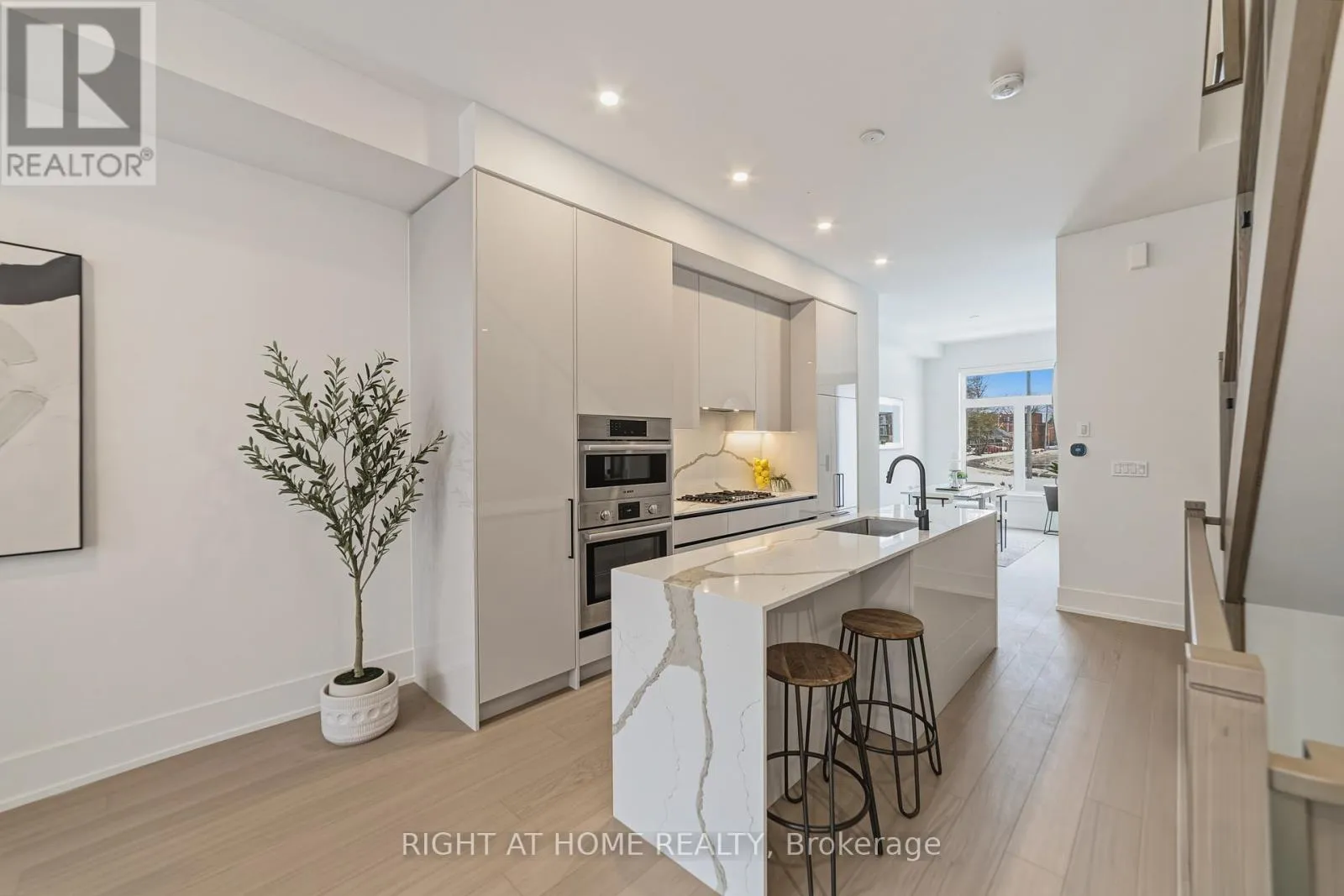 Cross Streets: Lakeshore Rd W & Mississauga Rd. ** Directions: Lakeshore Rd W & Masonry Way. Stunning townhome located in the Brightwater Waterfront Community features a private walk-up and overlooks a large green space, offering enhanced privacy with no direct-facing neighbors. This thoughtfully designed residence showcases 10-ft ceilings on the main level and 9-ft ceilings on the second and third floors, oversized windows, and engineered hardwood flooring throughout, creating a bright and airy living environment. Gourmet kitchen combines style and functionality with premium integrated appliances, including a paneled fridge and dishwasher, a built-in wall oven, and a 5-burner gas cooktop. Quartz countertops with matching backsplash and a striking waterfall island anchor the space. Open-concept living and dining area transitions seamlessly to a spacious outdoor deck and expansive private terrace, perfect for entertaining or everyday enjoyment. Second floor offers two generously sized bedrooms, including one with its own ensuite, a full 4-piece main bath, convenient second-floor laundry. An additional den provides flexibility as a reading room or extra living space. Third floor offers a tranquil primary suite complete with a spa-inspired ensuite. A dedicated home office that opens directly onto a rooftop terrace, ideal space for working from home and enjoying quiet outdoor moments. 3 vehicles via a 2-car tandem garage plus driveway space. An opportunity to be part of the growing Brightwater Port Credit Waterfront Community, a multi-year master-planned neighbourhood featuring acres of open green space, multiple parks, pedestrian-friendly streets, and convenient on-site retail. Residents enjoy an exceptional lakeside lifestyle with walking distance to vibrant downtown Port Credit, waterfront trails, cafés, restaurants, Farm Boy, LCBO, boutique shops, and a resident shuttle to Port Credit GO Station for easy commuting. (id:27476)