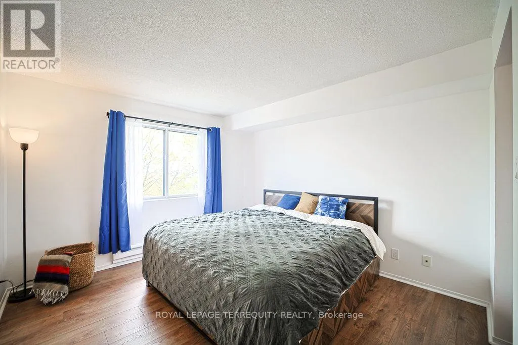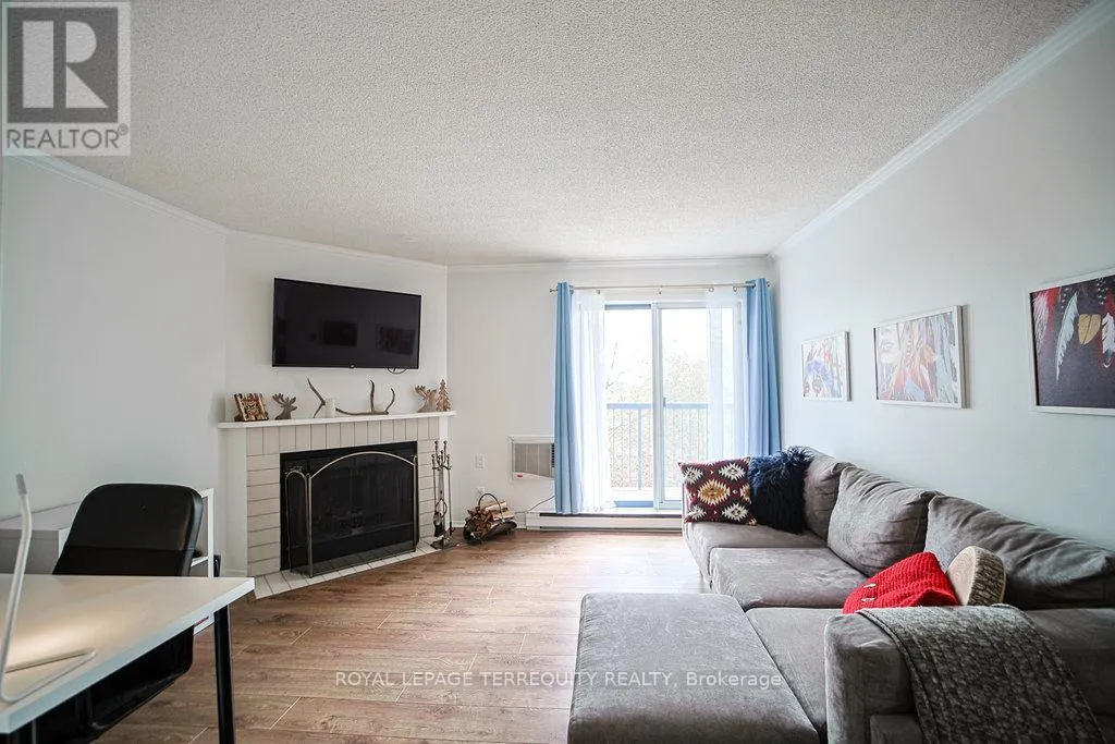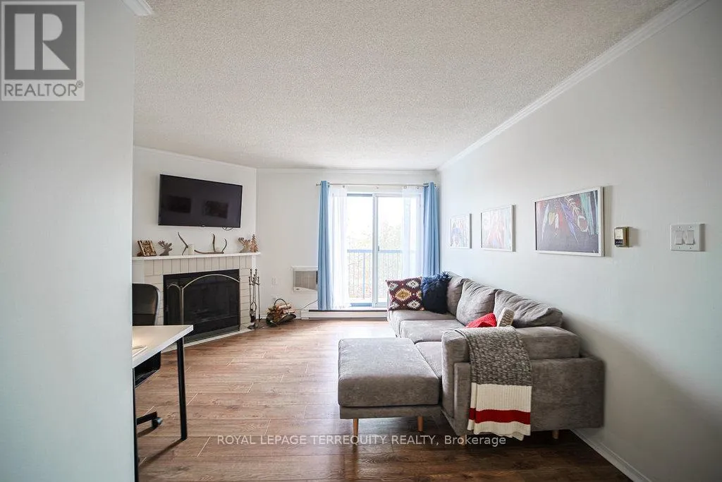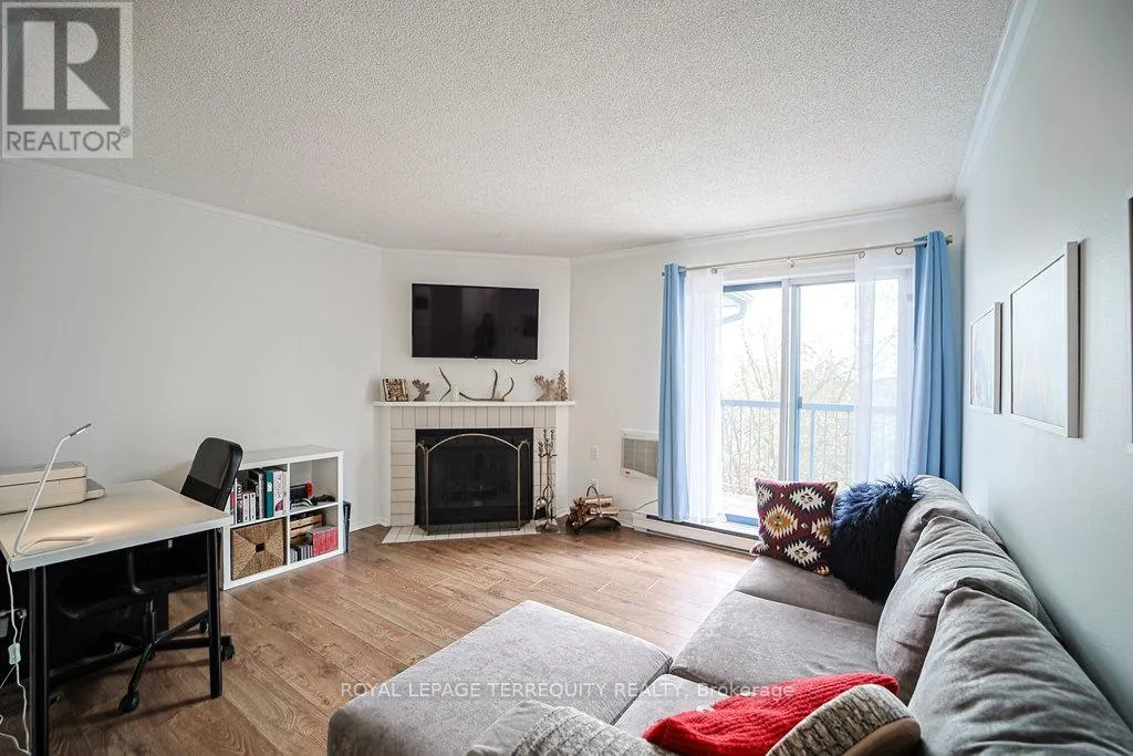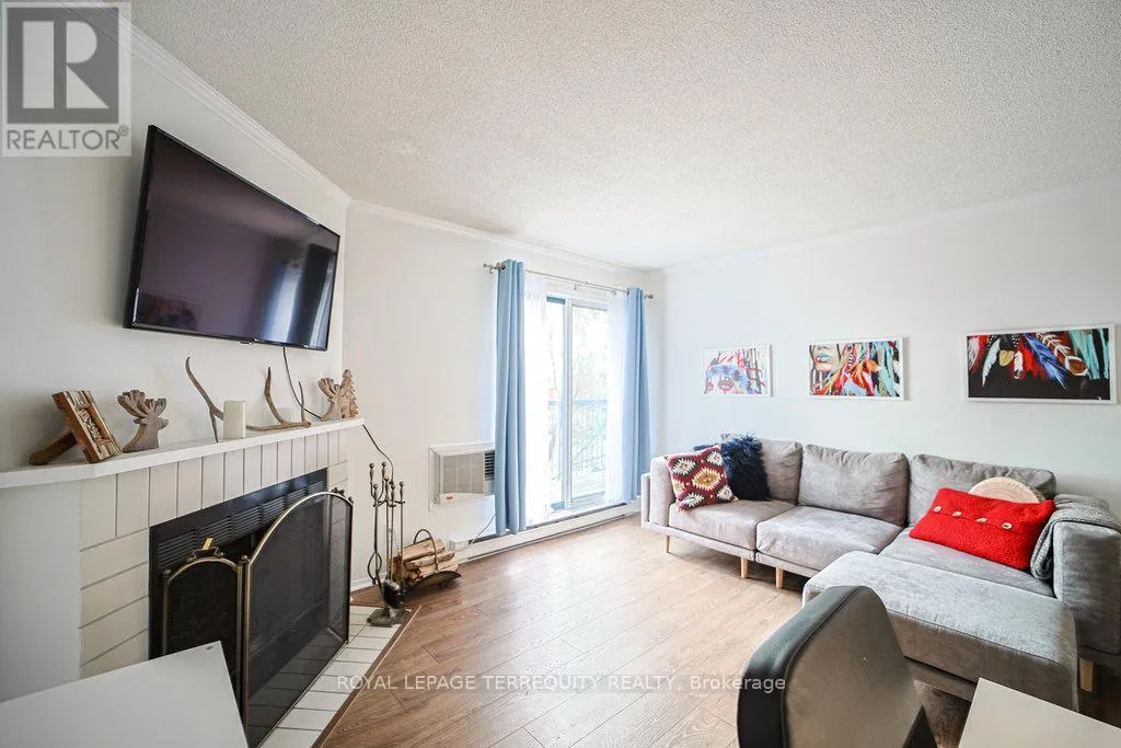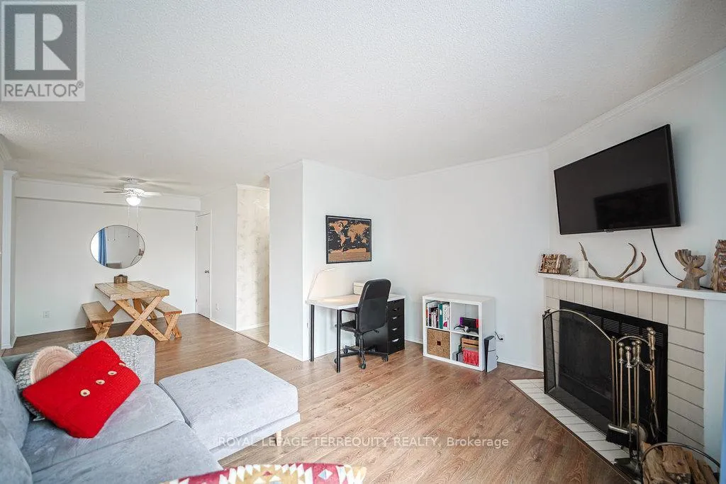 Hurontario And Bristol This Beautiful well kept 2Bedroom, 2 Bath home offers a rare blend of tranquility, privacy and prime urban convenience. A very Functional Layout with distinct living and dining spaces. Beautiful cozy fireplace in Livingroom & Walk-out to private Patio. There are new laminate floors throughout. The Prime bedroom comes with one 4 Piece Ensuite and unit is complimented with ensuite laundry. Prime Location in Mississauga near all amenities. Located in a Quiet, Family Friendly Community Close to schools, Shopping, Community Center and Public Transit. This unit is Semi Furnished with Water & Wi-Fi included. There is a Large Balcony with a Storage space. (id:27476)