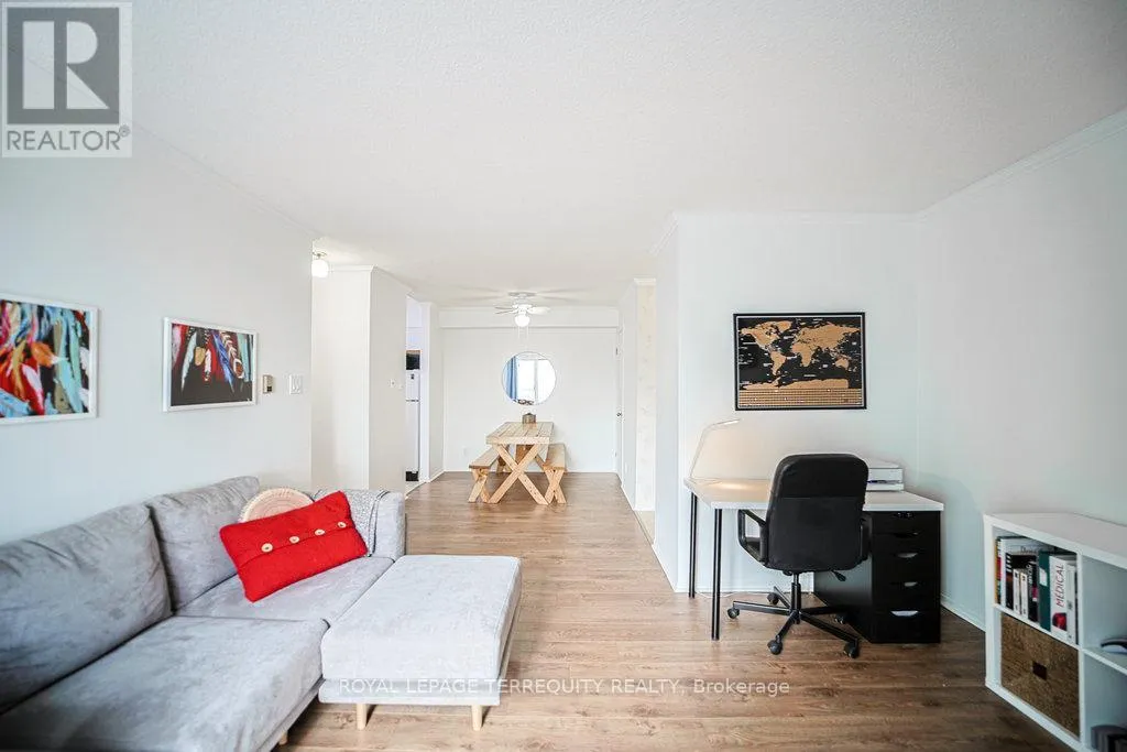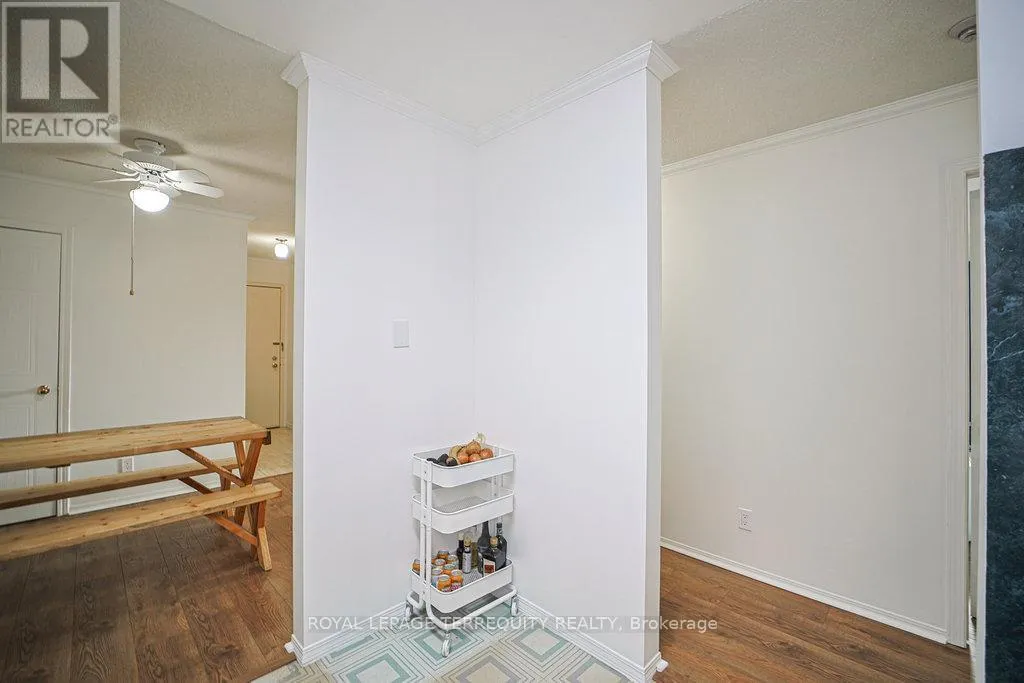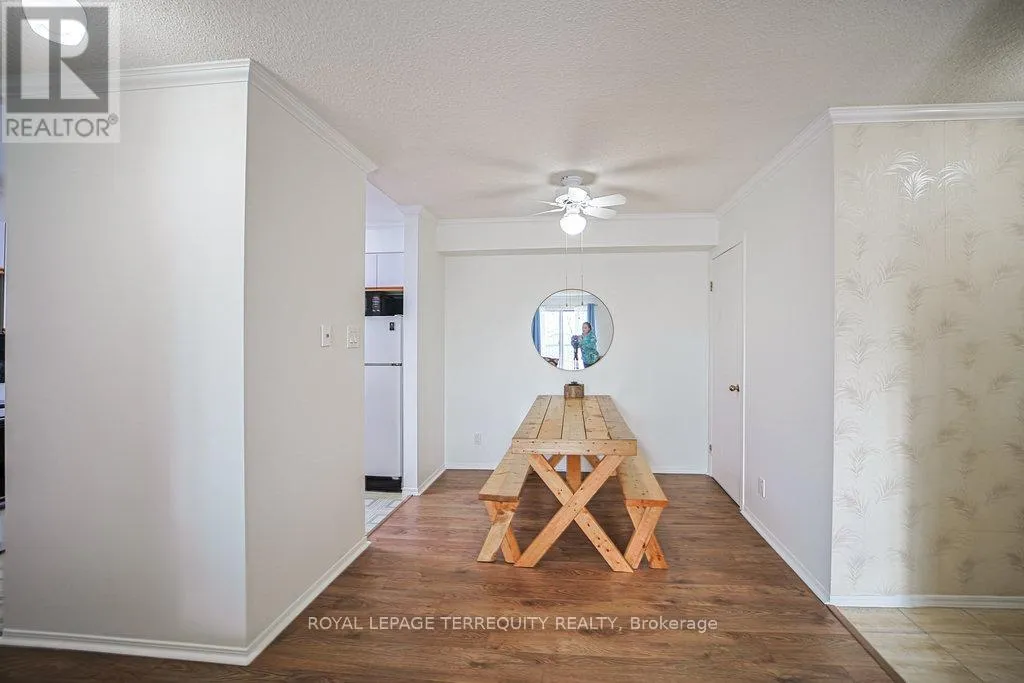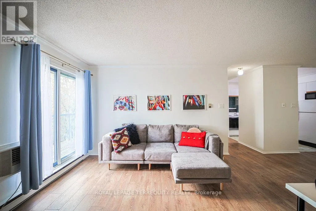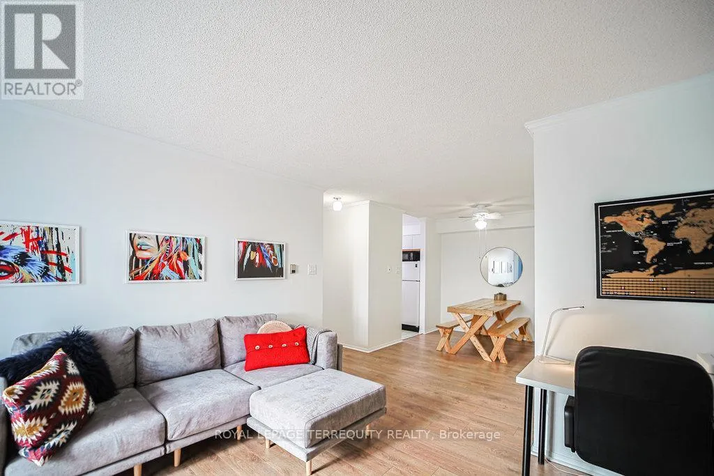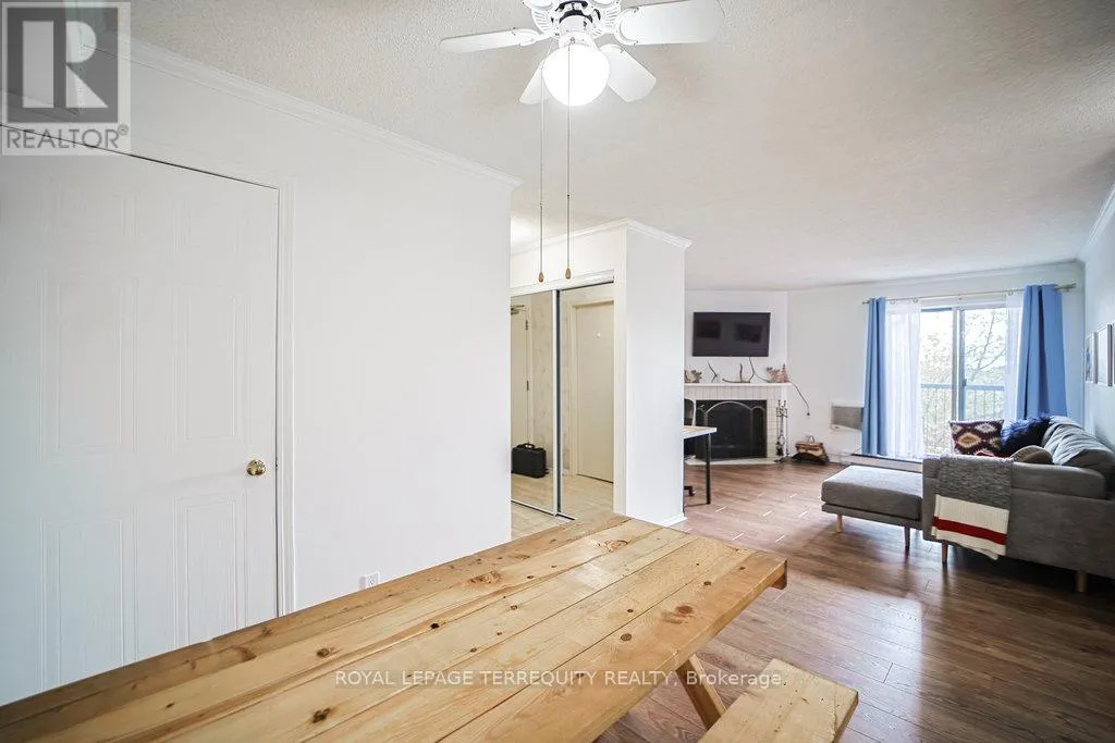 Hurontario And Bristol This Beautiful well kept 2Bedroom, 2 Bath home offers a rare blend of tranquility, privacy and prime urban convenience. A very Functional Layout with distinct living and dining spaces. Beautiful cozy fireplace in Livingroom & Walk-out to private Patio. There are new laminate floors throughout. The Prime bedroom comes with one 4 Piece Ensuite and unit is complimented with ensuite laundry. Prime Location in Mississauga near all amenities. Located in a Quiet, Family Friendly Community Close to schools, Shopping, Community Center and Public Transit. This unit is Semi Furnished with Water & Wi-Fi included. There is a Large Balcony with a Storage space. (id:27476)