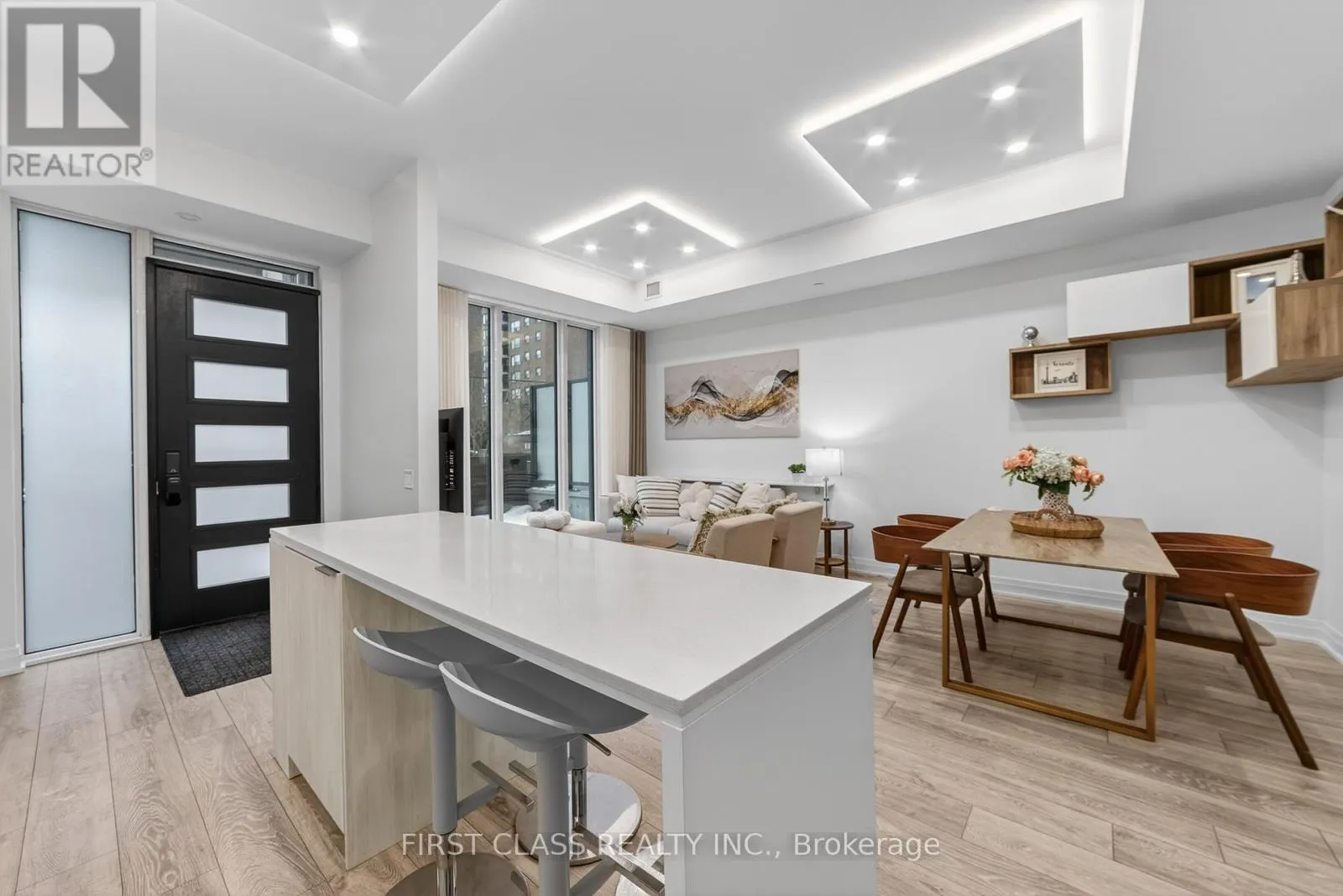 Hurontario St / Lakeshore Rd E Absolute good time to buy this beautiful house!!! Welcome to this stunning 2-storey condo townhouse at TH05 - 21 Park St E, Mississauga, offering approximately 1,390 sq. ft. of thoughtfully designed living space. This spacious home features 3 bedrooms plus a versatile den-perfect for a home office, study, or guest area-along with 2.5 modern washrooms for ultimate convenience.The open-concept main floor offers a bright and functional living and dining area, enhanced by added LED pot light panels with recessed lighting, creating a warm and contemporary ambiance. The modern kitchen features a centre island, ample cabinetry, and generous counter space, ideal for cooking and entertaining.Upstairs, all bedrooms and the den are equipped with added ceiling lights for enhanced comfort and brightness. Custom window coverings throughout the home provide style, privacy, and convenience. The primary bedroom features an ensuite bathroom and ample closet space.This home is fully integrated with a smart home ecosystem, including motion sensors, smart locks, private entrance door with camera, lobby camera, and dual thermostats for upper and lower levels.This pet-friendly community offers a dog wash station for added convenience. A rare street-facing private entrance door provides extra accessibility and privacy. Internet and cable TV are included in the maintenance fees through Rogers, offering excellent value and hassle-free living.Conveniently located near public transit, parks, schools, and local amenities, with easy access to major highways and urban conveniences. (id:27476)