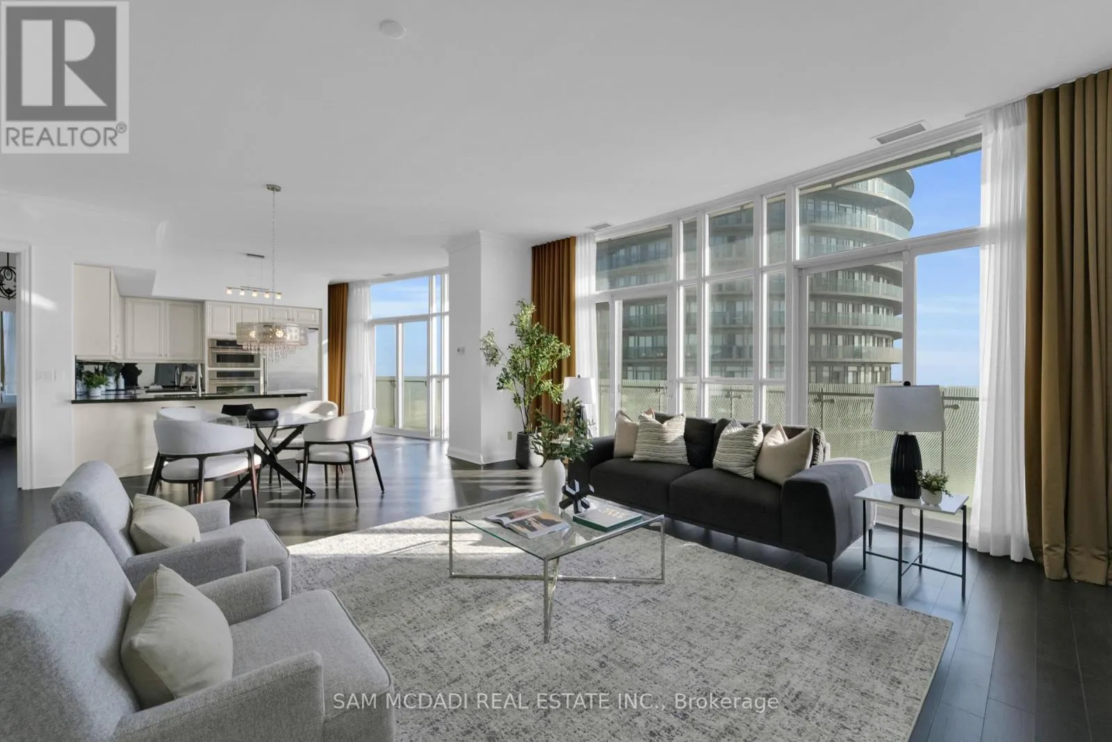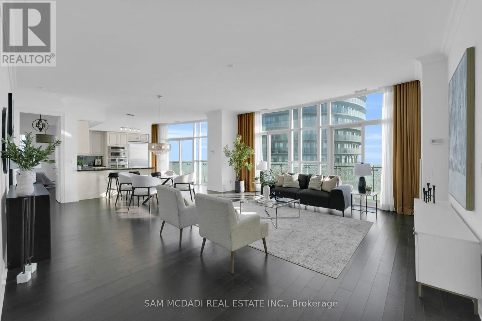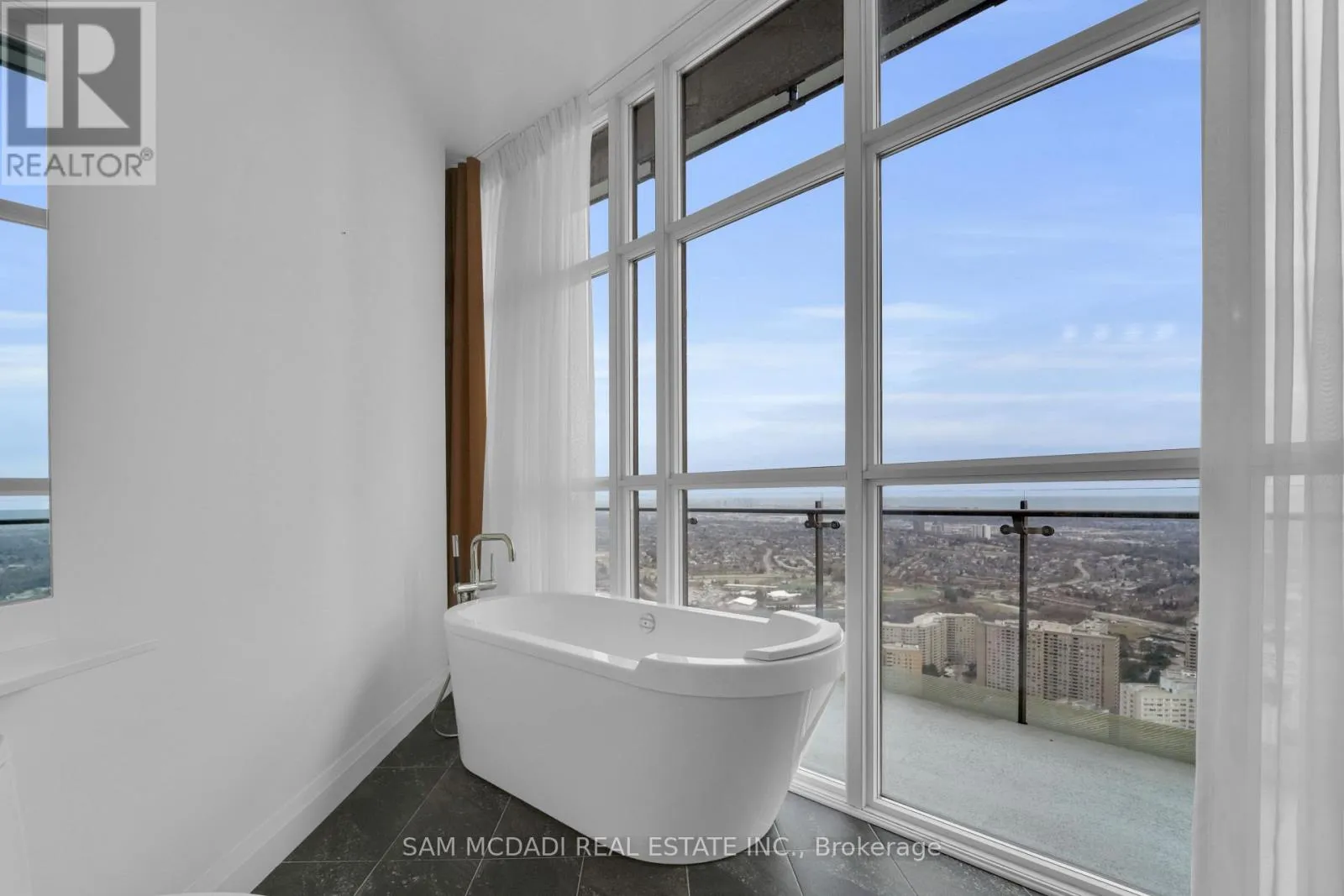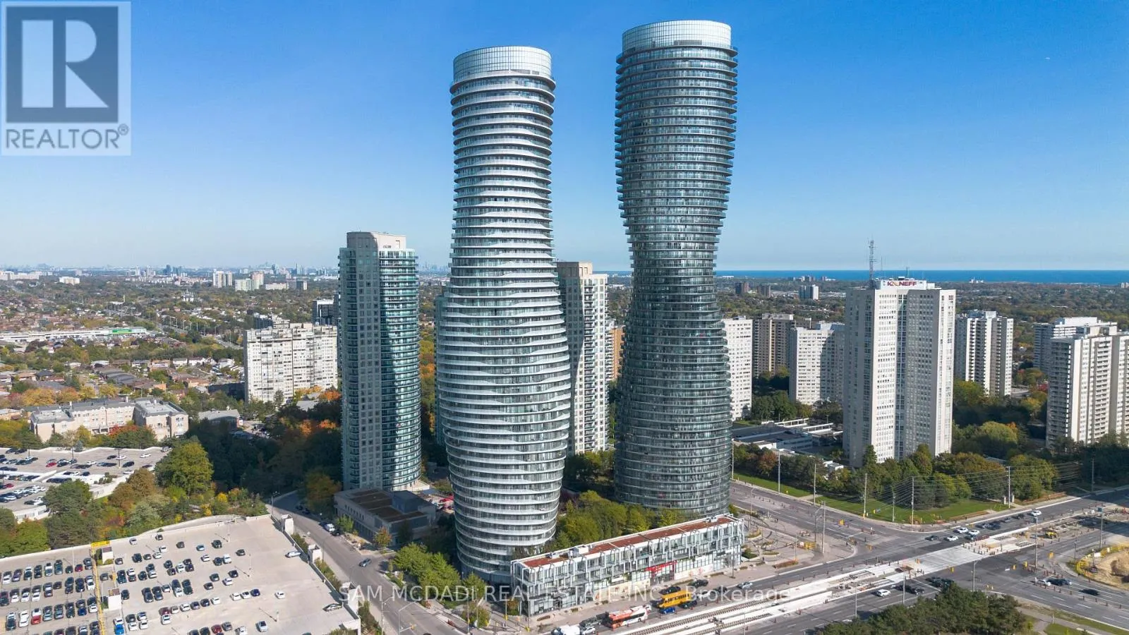 Cross Streets: Hurontario St & Burnhamthorpe Rd E. ** Directions: If heading southbound on Hurontario St, turn left onto Absolute Ave. If heading northbound on Hurontario St, turn right onto Absolute Ave. The condo building will be on your right side. Welcome to Penthouse 3 at 50 Absolute Avenue, an exceptional residence set on the 50th floor of the iconic Marilyn Monroe Towers. Offering 1600 sqft. of interior living space and an expansive 400 sqft. wrap-around balcony, this penthouse delivers breathtaking views stretching from Lake Ontario to the Niagara Escarpment. This 2-bedroom, 2.5-bathroom suite features a thoughtfully designed open-concept layout, seamlessly connecting the living room, dining area, and spacious kitchen - ideal for both everyday living and entertaining. The kitchen is equipped with granite countertops, built-in appliances, a double sink, tile flooring, and ample storage, combining functionality with timeless style. The primary suite is a true retreat, boasting floor-to-ceiling windows, direct balcony access, a walk-in closet, a charming desk nook, and a luxurious 4-piece ensuite complete with a freestanding tub and rainfall shower. The second bedroom mirrors the same elevated finishes, featuring floor-to-ceiling windows, balcony access, a closet, and its own 3-piece ensuite - perfect for guests or family. Additional features include a powder room, in-suite laundry, two underground parking spaces, and one locker for added convenience. Residents enjoy a full suite of resort-style amenities, including concierge service, party and meeting rooms, guest suites, media room, basketball and squash courts, indoor and outdoor pools, games room, fully equipped gym, rooftop lounge with BBQs, and even a pet spa. Ideally located just steps from Square One Shopping Centre, Celebration Square, Sheridan College, restaurants, grocery stores, parks, MiWay and GO Transit, with quick access to Highways 401 and 403, this penthouse offers unparalleled convenience, connectivity, and luxury living in the heart of Mississauga. (id:27476)