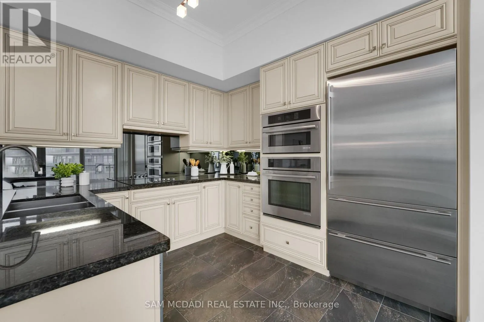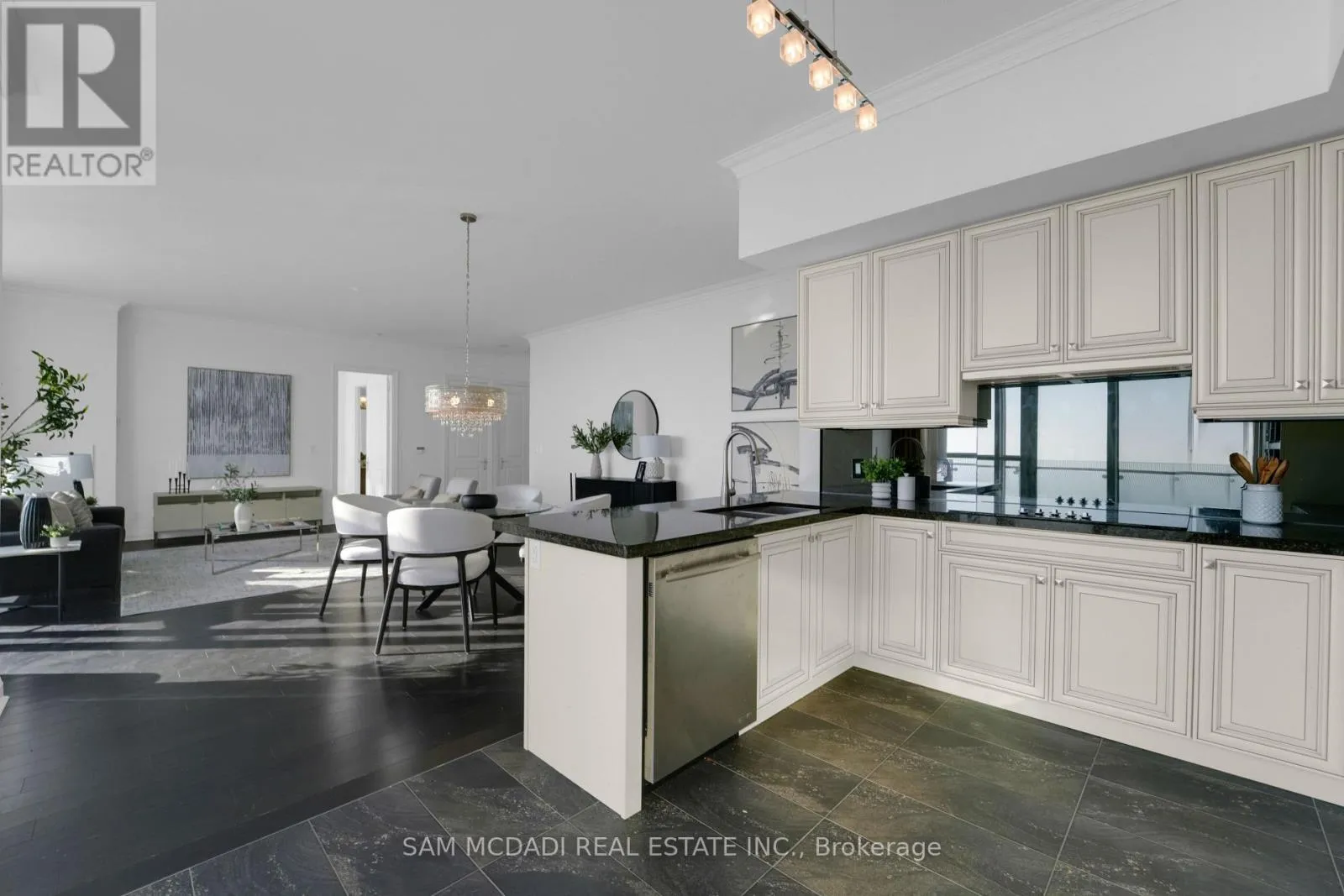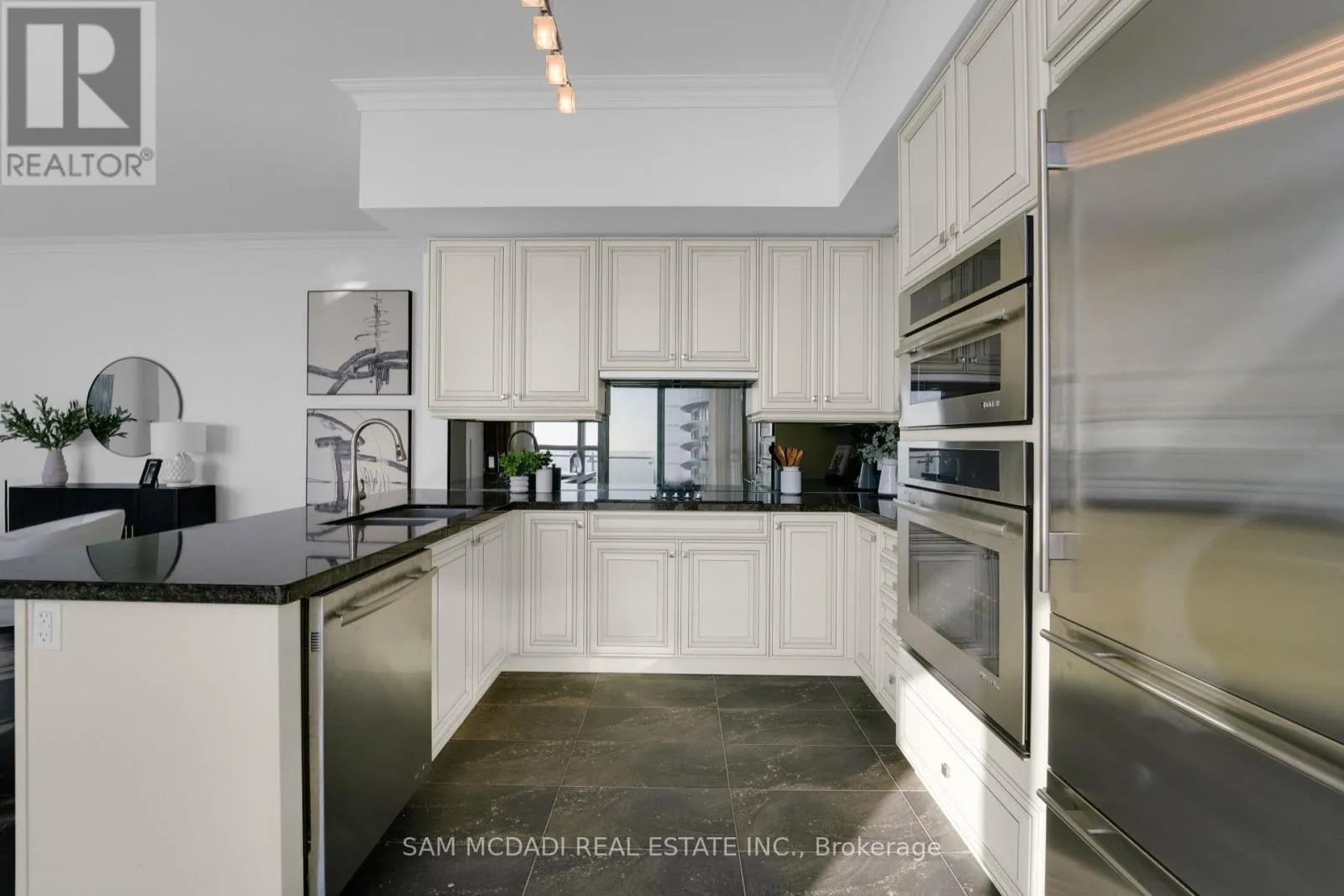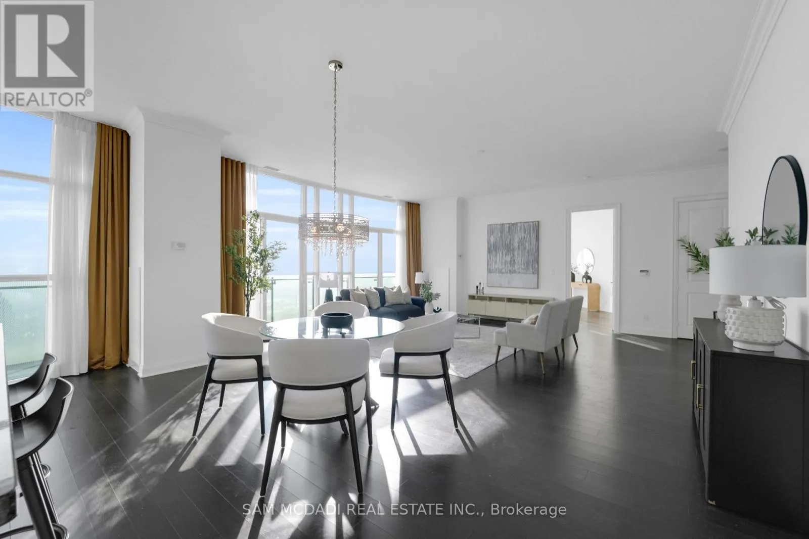 Cross Streets: Hurontario St & Burnhamthorpe Rd E. ** Directions: If heading southbound on Hurontario St, turn left onto Absolute Ave. If heading northbound on Hurontario St, turn right onto Absolute Ave. The condo building will be on your right side. Welcome to Penthouse 3 at 50 Absolute Avenue, an exceptional residence set on the 50th floor of the iconic Marilyn Monroe Towers. Offering 1600 sqft. of interior living space and an expansive 400 sqft. wrap-around balcony, this penthouse delivers breathtaking views stretching from Lake Ontario to the Niagara Escarpment. This 2-bedroom, 2.5-bathroom suite features a thoughtfully designed open-concept layout, seamlessly connecting the living room, dining area, and spacious kitchen - ideal for both everyday living and entertaining. The kitchen is equipped with granite countertops, built-in appliances, a double sink, tile flooring, and ample storage, combining functionality with timeless style. The primary suite is a true retreat, boasting floor-to-ceiling windows, direct balcony access, a walk-in closet, a charming desk nook, and a luxurious 4-piece ensuite complete with a freestanding tub and rainfall shower. The second bedroom mirrors the same elevated finishes, featuring floor-to-ceiling windows, balcony access, a closet, and its own 3-piece ensuite - perfect for guests or family. Additional features include a powder room, in-suite laundry, two underground parking spaces, and one locker for added convenience. Residents enjoy a full suite of resort-style amenities, including concierge service, party and meeting rooms, guest suites, media room, basketball and squash courts, indoor and outdoor pools, games room, fully equipped gym, rooftop lounge with BBQs, and even a pet spa. Ideally located just steps from Square One Shopping Centre, Celebration Square, Sheridan College, restaurants, grocery stores, parks, MiWay and GO Transit, with quick access to Highways 401 and 403, this penthouse offers unparalleled convenience, connectivity, and luxury living in the heart of Mississauga. (id:27476)