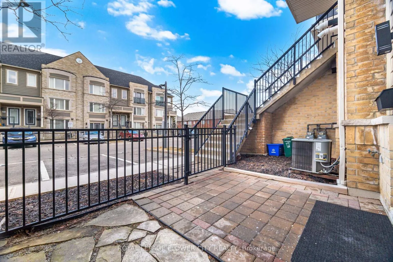 Cross Streets: Winston Churchill Blvd/Eglinton Ave. ** Directions: West of Winston Churchill, North of Eglinton Ave. Charming Main-Floor 1-Bedroom Stacked Townhouse perfect for First-time buyers, Downsizers, or Investors seeking a turnkey property in a fantastic family neighbourhood in Churchill Meadows close to the Popular Ridgeway Plaza! Welcome to effortless single-level living in this beautifully updated ground-floor unit - no stairs required! Step inside to an inviting open-concept layout featuring soaring 9-ft ceilings that enhance the sense of space and light throughout. The modern kitchen boasts stainless steel appliances and a convenient breakfast bar, ideal for casual dining. The generously sized bedroom offers a peaceful retreat. Enjoy your own private front patio - a rare find in town home living, perfect for morning coffee or summer relaxation. This home also includes 1 owned parking spot conveniently located near the unit. Unbeatable Location: Steps from parks, trails, and top-rated schools. Minutes to Erin Mills Town Centre, shops, restaurants, and Credit Valley Hospital. Easy highway access (403/401) and close to transit. This quiet, well-managed complex offers the perfect blend of comfort, convenience, and community. Don't miss this gem! (id:27476)