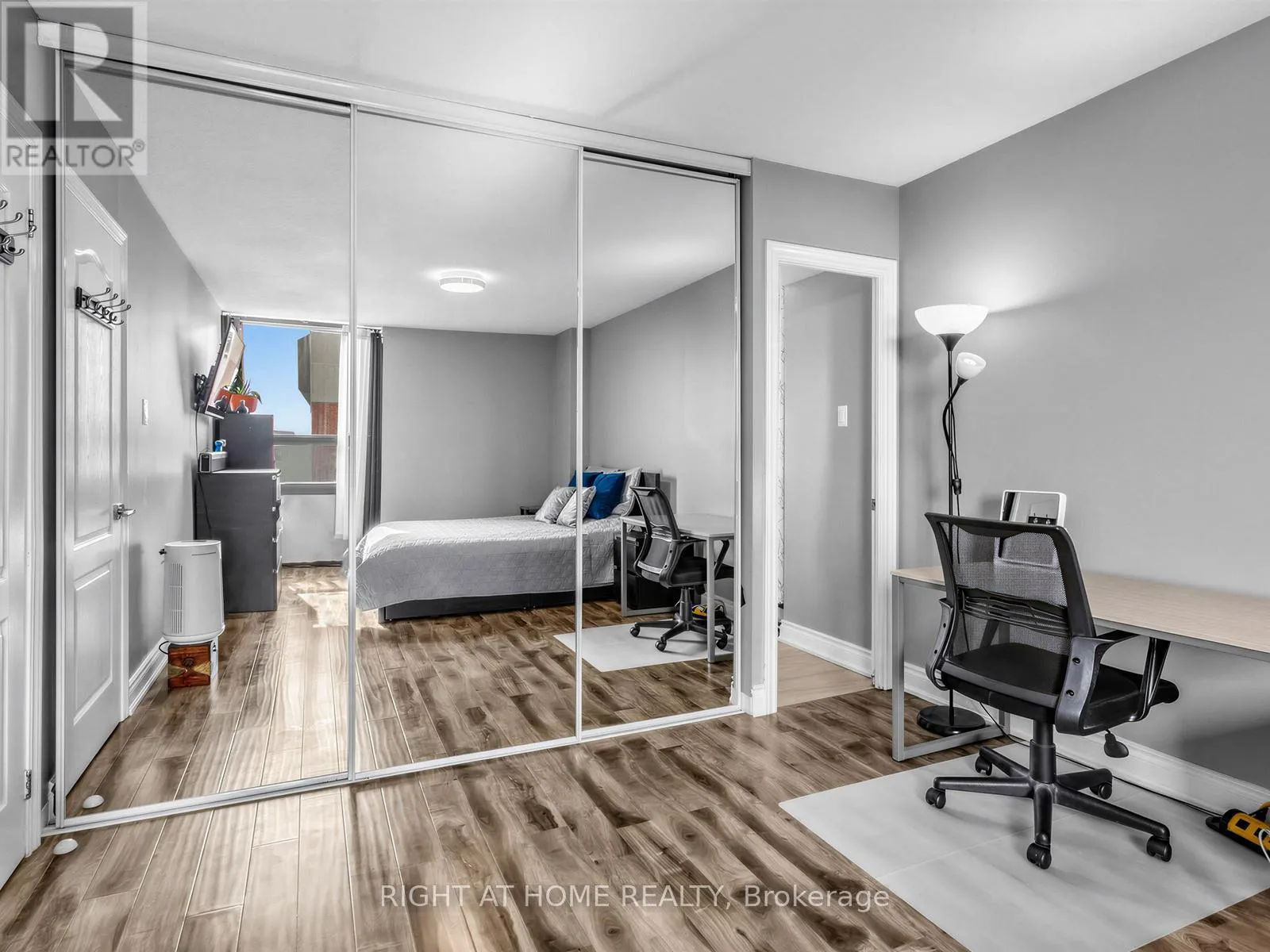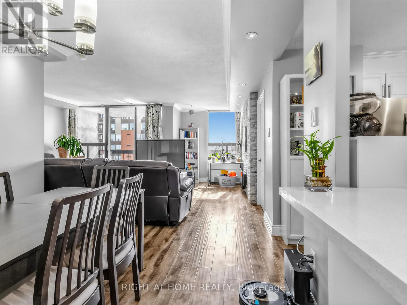 Hurontario and Central Parkway Spacious 3-Bedroom Condo in the Heart of Mississauga with Lake Views. Move in and enjoy this beautifully upgraded 3-bedroom, 2-full-bathroom condo located in the heart of Mississauga. This bright and spacious unit features an open-concept kitchen with abundant cabinetry, stainless steel appliances, quartz countertops, and stylish laminate flooring through out. The primary bedroom includes a private 4-piece ensuite, while the two additional bedrooms offer large windows that bring in plenty of natural light. The generous living room is perfect for relaxing or entertaining and is complemented by a separate dining area. Additional highlights include: Laminate flooring throughout the entire unit, Upgraded light fixtures, Spacious ensuite storage room, Ensuite washer and dryer, Two entrances to the unit, Private balcony with distant lake views. The maintenance fee covers common elements, building insurance, parking, water, cable TV and High Speed Internet, offering excellent value. Residents enjoy fantastic building amenities, including: Indoor swimming pool, Gym/fitness Centre, Visitors' lounge, Ample visitor parking. The location is exceptionally convenient-just minutes' walk to the Future LRT, Cooksville GO Station, public transit, and major highways. You're also close to shopping, schools, and major destinations such as Mississauga Valley Community Centre, Public and Catholic Elementary, Secondary and High Schools, Square One Shopping Centre, Sheridan College, Mississauga Celebration Square, the Mississauga Central Library, and the YMCA.A perfect opportunity for families, professionals, or investors looking for space, convenience, and lifestyle in central Mississauga. (id:27476)