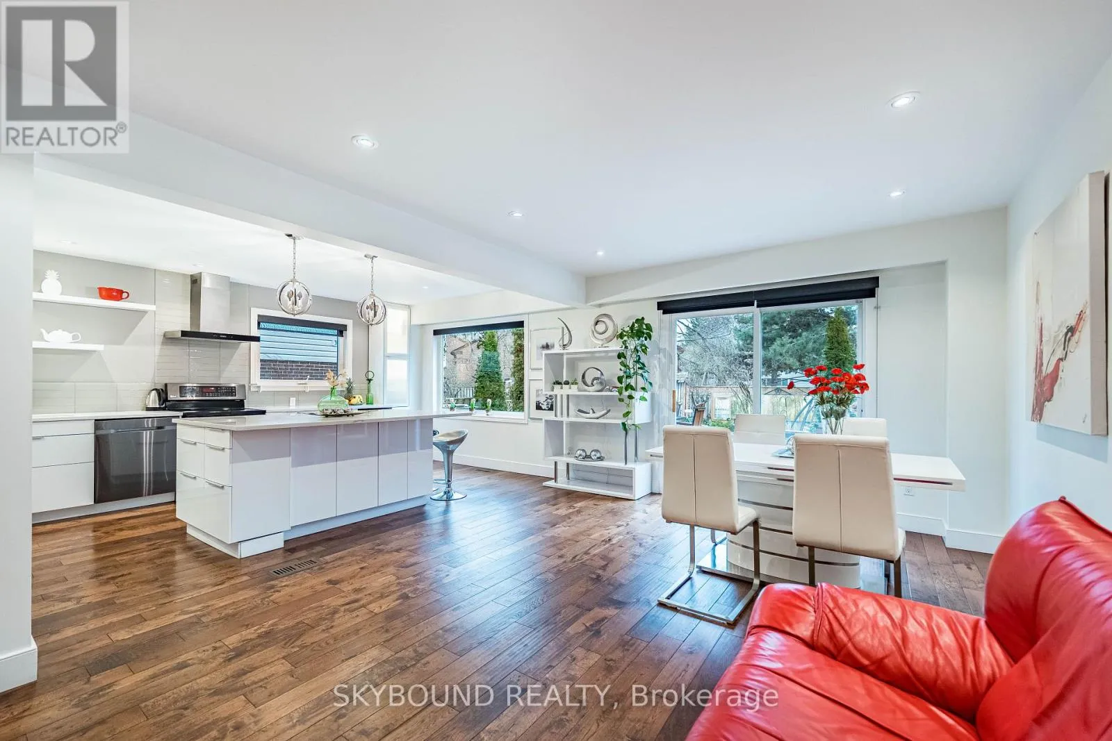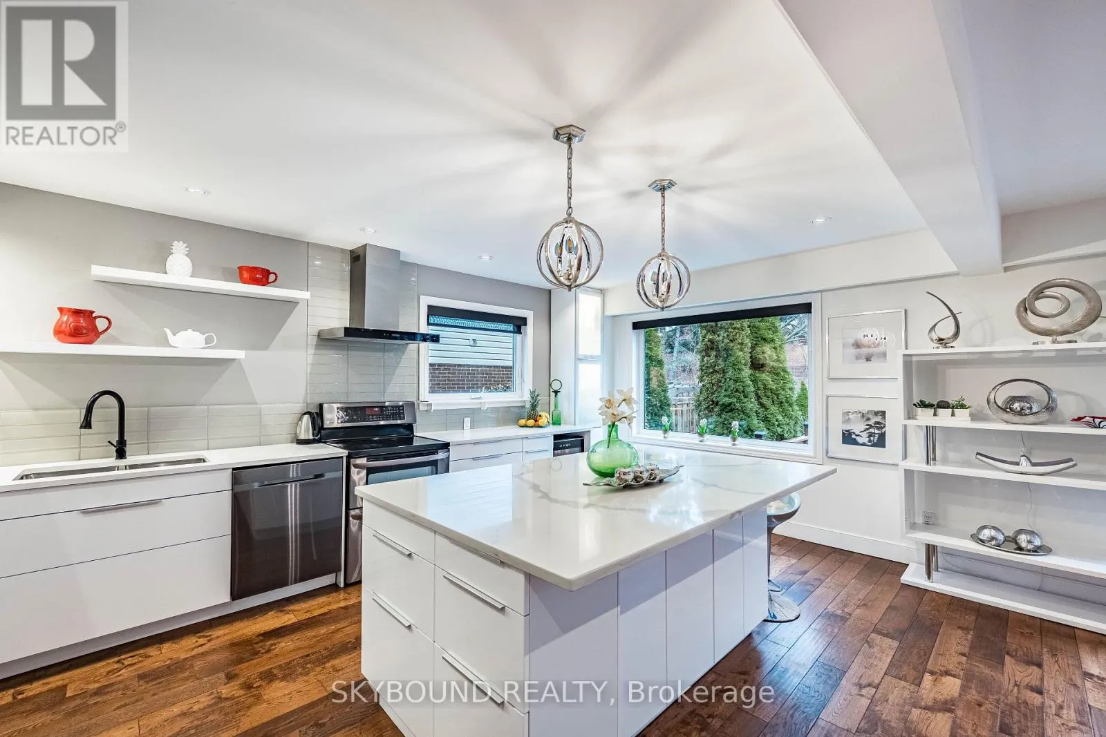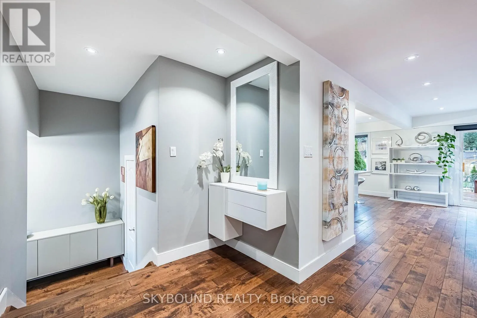 Cross Streets: Windwood. ** Directions: Glen Erin/ Windwood. BIGGER THAN IT LOOKS TRULY UNIQUE FAMILY HOME with RARE 2 CAR GARAGE. Located on a peaceful dead end, family oriented street near Windwood Park in the heart of Mississauga. Steps to park, public transit, schools, shops. Renovated with Elegance, Style and High Quality Finishing. The front entrance opens to the foyer and convenient 2-piece powder room. At the heart of the home lies a stunning open-concept kitchen/ living/ dining room with large windows that flood the space with natural light, hand scraped white oak hardwood floors and walkout to generous deck overlooking private backyard oasis. Ideal space for hosting. Discover fully renovated kitchen featuring white cabinets, pot drawers, oversized island, pantry, quartz counters, display cabinet, stainless-steel appliances. See Through modern glass hardwood staircase design leads to cozy family room complete with gas fireplace, reclaimed wood beam, barn door and casing around the skylights. Large window finished with hand scraped red oak casing. Perfect and inviting space to relax. Upstairs 3 spacious bedrooms. Primary bedroom complete with expanded 3-pc luxury spa-inspired bathroom with glass enclosed shower and stylish make up vanity desk. The basement offers a recreation room with engineered hardwood floor, pot lights, finished laundry room, workshop plus ample storage. The spacious and fully fenced yard is landscaped with privacy in mind. Mature evergreens, perennial bushes and flowers provide everything needed for outdoor entertainment or quiet coffee to start your day. (id:27476)