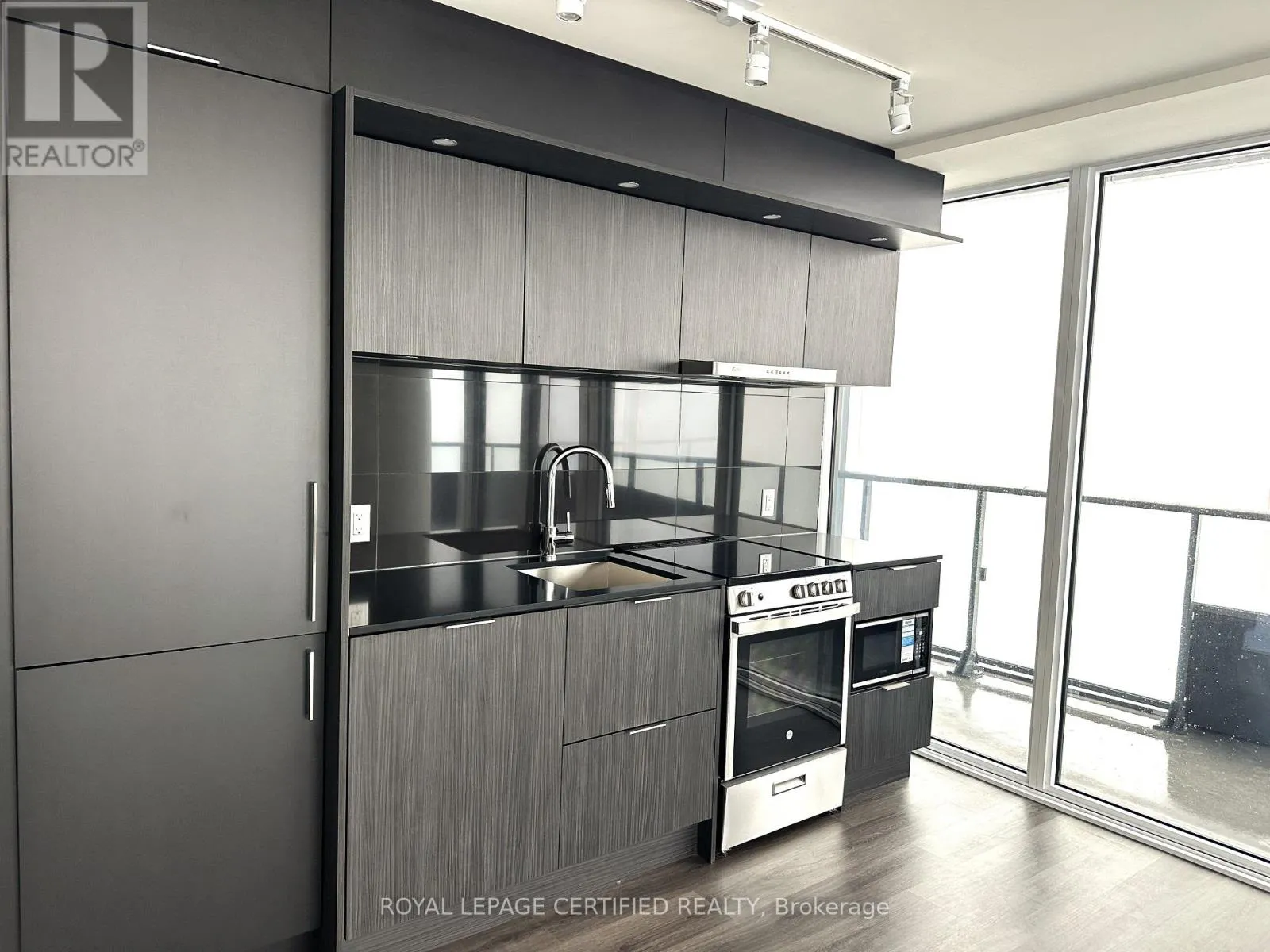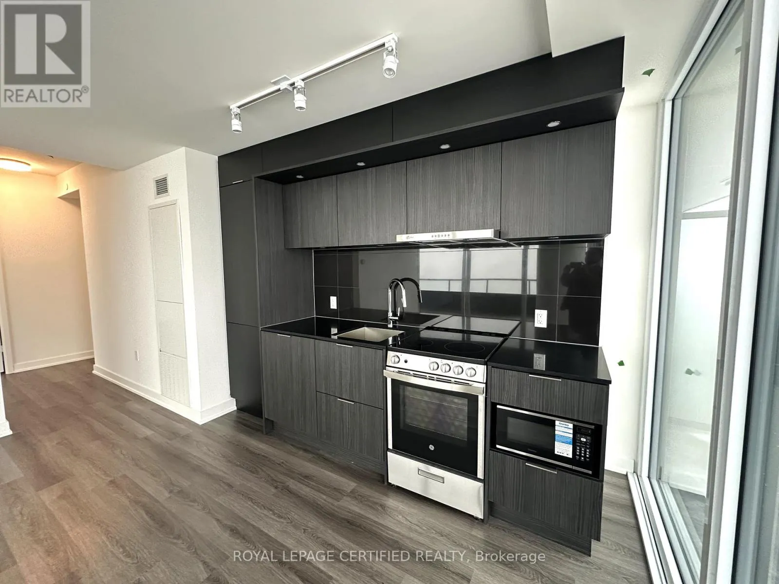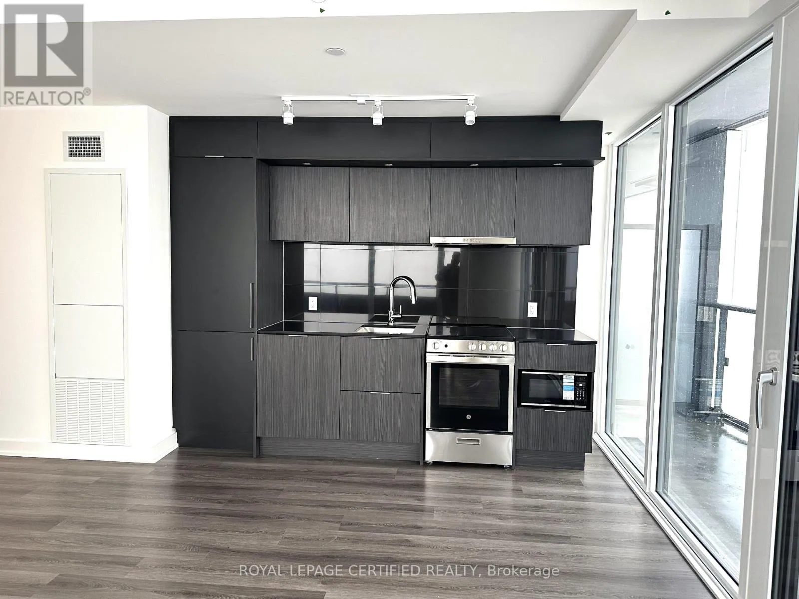Burnhamthorpe / Confederation Brand new, never lived-in corner condo (997 sq ft: 698 + 299 balcony) in the heart of Mississauga with breathtaking city and Lake Ontario views from a large wrap-around balcony. Bright 2-bedroom layout with modern kitchen featuring built-in appliances, quartz counters, and ceramic backsplash. Open-concept living/dining, primary bedroom with built-in closet and 3-pc ensuite, upgraded bathrooms, and separate laundry. Parking and high-speed internet included. Steps to Square One, transit, dining, and easy highway access. Exceptional lifestyle in a prime location. (id:27476)