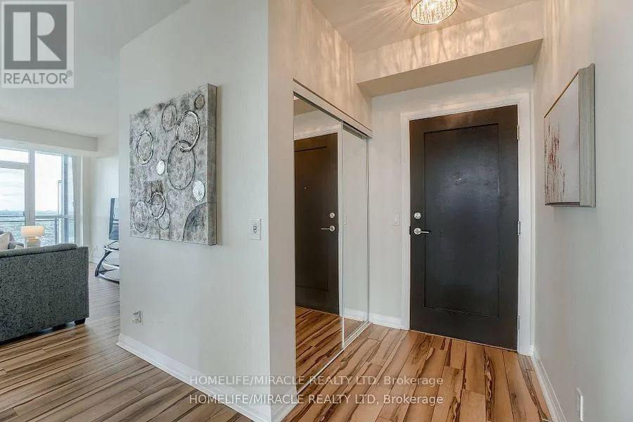 Eglinton / Hurontario Welcome to this stunning 2,100 sq. ft. luxury corner penthouse, offering premium finishes and floor-to-ceiling windows that flood the space with natural light. With only four units on the floor, enjoy enhanced privacy and exclusivity. This spacious layout features 3 bedrooms plus a den and two full bathrooms. The open-concept living and dining area is surrounded by floor-to-ceiling windows, creating a bright and airy atmosphere. The generous primary bedroom includes a large walk-in closet, a 5-piece ensuite, and direct access to a private balcony. Enjoy top-tier building amenities including 24-hour security, a fully equipped gym, yoga studio, sauna, indoor swimming pool, and party room. Additional highlights include two large balconies, two parking spaces, and a spacious locker. Located in a prime area directly across from the new Hurontario LRT, this property offers excellent convenience and connectivity. The unit is currently leased for $5,000 per month, with a tenant willing to renew. (id:27476)
