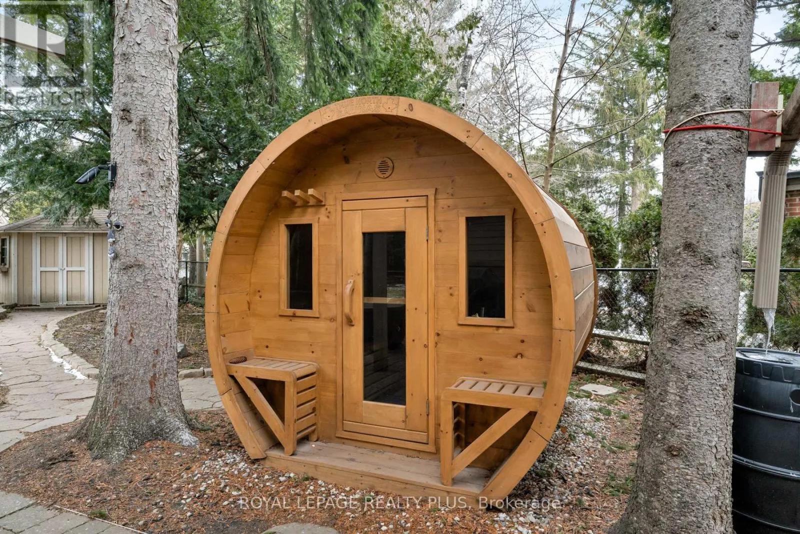 Westfield/Baldwin The best homes save their finest surprises for those who look closer. Like a gem just waiting to be uncovered, this lovely home on Guthrie Lane opens up, layer by layer, to showcase over 3000 sq ft of total living space. With a David Small designed rear addition, this home honours the original front facing aesthetic of the neighbourhood, while ensuring you have the space & functionality of a modern 4 bed, 4 bath home. Living here is bliss, far from the pace of everyday life. Being situation on a court, allows special privileges like being able to watch children playstreet hockey while you watch from the comfort of large living room windows. Or turning onto the lane, & having your home situated in the centre, looking back at you like a framed work of art. Outside, a 124ft (rear width)pie-shaped lot encloses a private, tree-lined backyard with perennial gardens, inground sprinkler systems, landscape lighting & Cabana Shed. An interlocking patio with pergola leads to a spectacular Cedar Sauna, a perfect outdoor retreat. An entertainers kitchen by Mill Street Kitchens impresses with quality cabinetry, stainless appliances, updated countertops (2022), built-in desk, pantry, & oversized island. The living area features a gas log fireplace, pot lights & a large south facing window. Updated designer picked lighting fixtures grace the home throughout. The primary bedroom offers a brilliant vaulted ceiling with vented skylight ductless AC/heat unit (2024) & heated floors, while hydronic radiant heating warms the basement (2008). Major updates include a high-efficiency furnace with ERV/ Condensing Boiler & Humidifier (2020), owned tankless water heater (2020), 200amp, & central vacu throughout. Bonus features: laundry chute, huge mud room, & pocket doors. You can enjoy your home with the comfort of knowing that your neighbourhood is one for the ages. The timeless quality of a place where community still matters. Applewood Acres is one of those places. Come & enjoy! (id:27476)