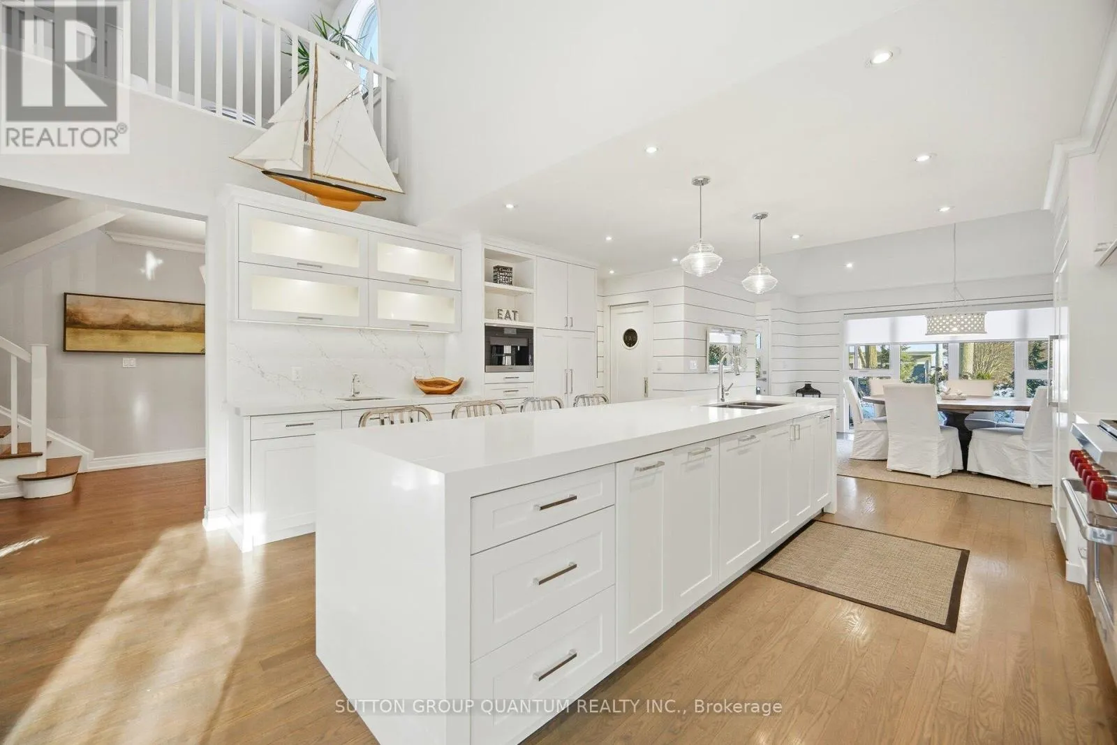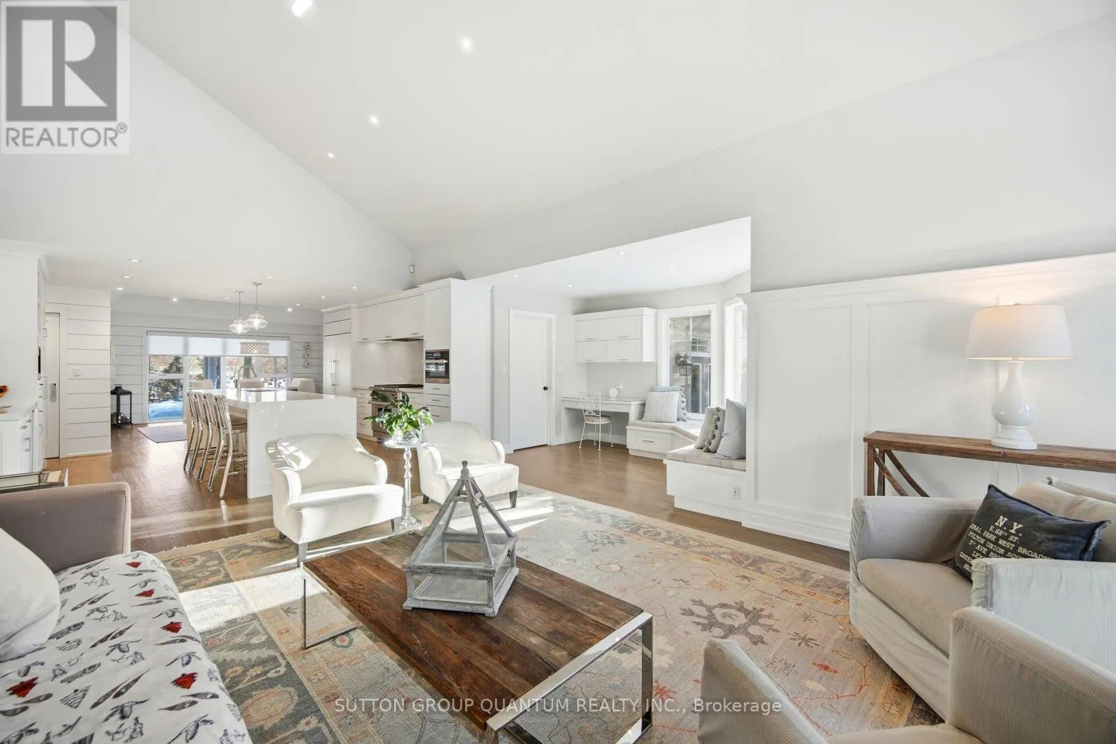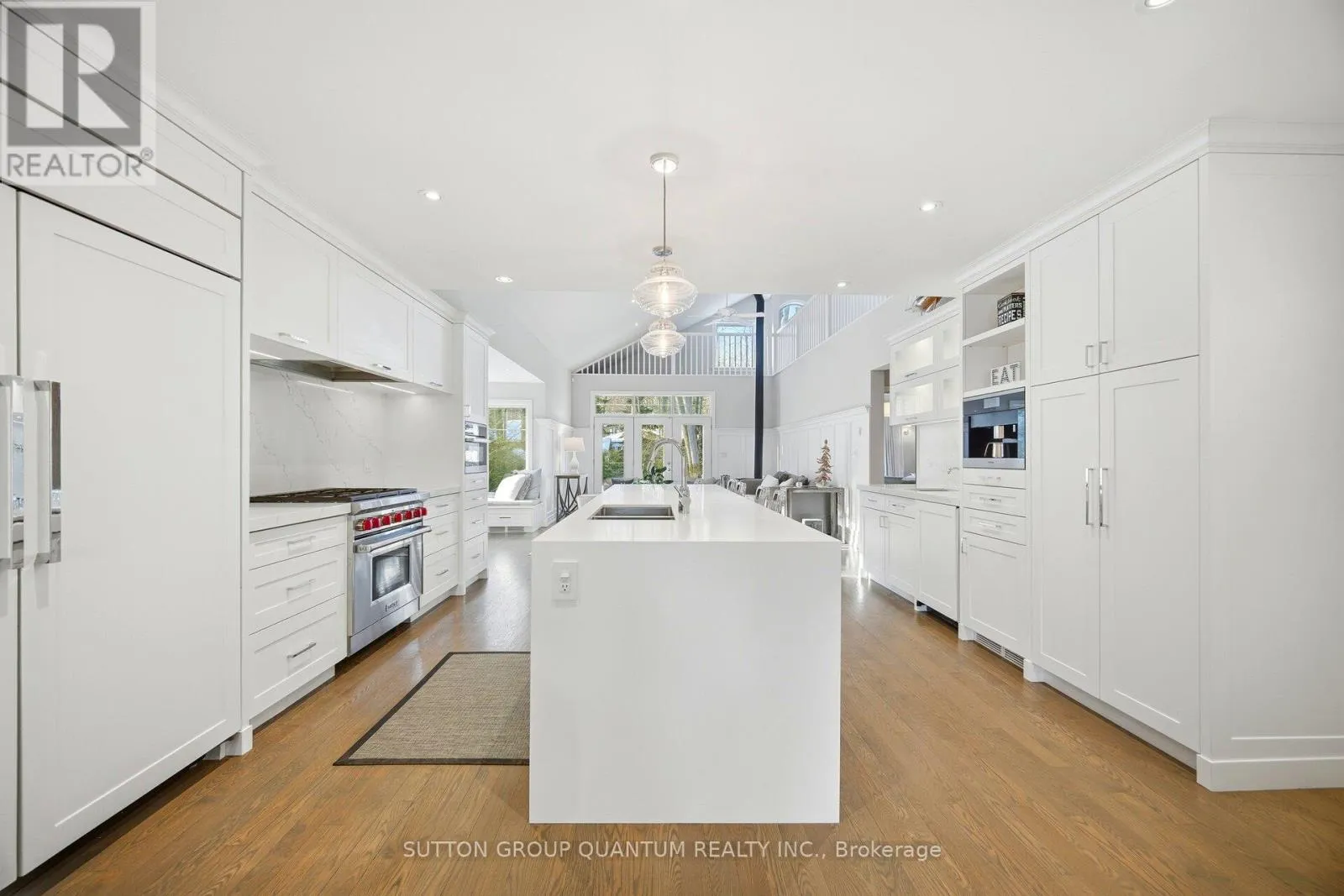 Mineola and Hurontario Welcome to a truly exceptional custom bungalow, blending timeless design & comfort on a 75 ft x199 ft lot with superior craftsmanship throughout. Renovations & Additions completed by David Small Designs. The open-concept main level features cathedral ceilings, custom solid hardwood floors, smooth ceilings, large picture windows. Elegant wall detailing includes crown moulding, shiplap, wainscotting, & panelling. The gourmet kitchen overlooks the great room & is anchored by an oversized waterfall centre island, quartz counters & backsplash, walk-in pantry, & extensive cabinetry. Premium appliances include a Wolf 6 burner gas range, Sub-Zero refrigerator & Miele built-in plumbed coffee machine. The great room impresses with soaring 18-ft cathedral ceilings, extra-high wainscotting, large windows, a Jotul wood-burning stove & walkout to the backyard oasis. A sun-filled loft with skylight, custom desk and credenza provides additional flexible space. The main-level laundry & mudroom with garage access offers custom solid wood cabinetry, flagstone flooring, & backyard access. The primary bedroom features 9-ft ceilings, hardwood floors, crown moulding, custom draperies, panelled accent wall, & acustom walk-in closet. The spa-inspired 6-piece ensuite includes a freestanding tub, curbless glass shower, bidet, & double vanity. Two additional bedrooms feature hardwood floors, custom millwork, and generous closets. Finished lower level offers lots of living space for guests or extended family with a large recreation area, wet bar, entertainment space with projector, fireplace, exercise and yoga rooms, 4-piece bath, & ample storage. Exterior highlights include Cape Cod siding with stone accents, paved driveway with stone detailing & lighting, professional landscaping, inground sprinklers, covered porch with stone patio & glass railings, fenced yard, fire table, and hot tub. Close to Port Credit , Lake Ontario, Go station, schools and walking trails. This home has it all! (id:27476)