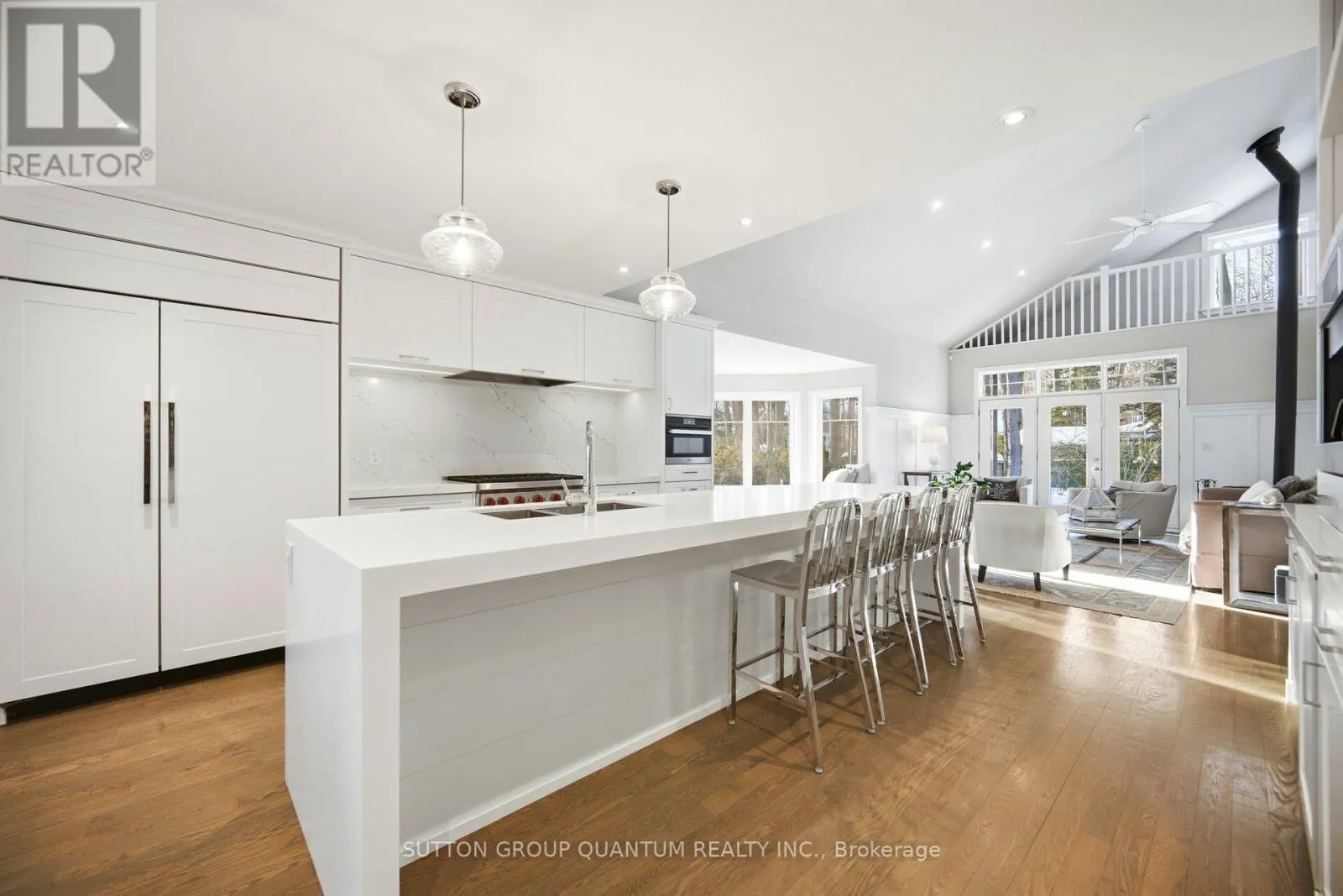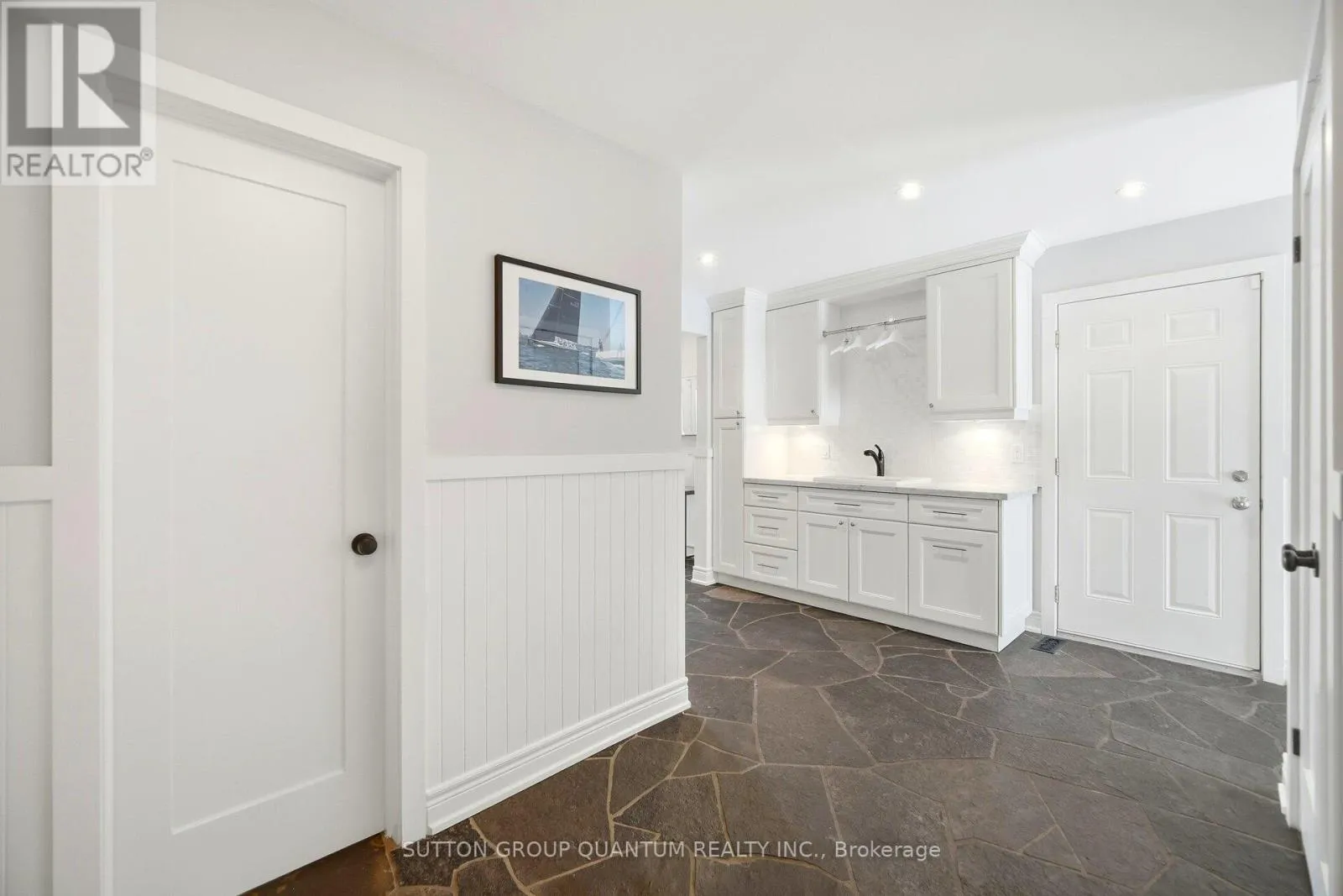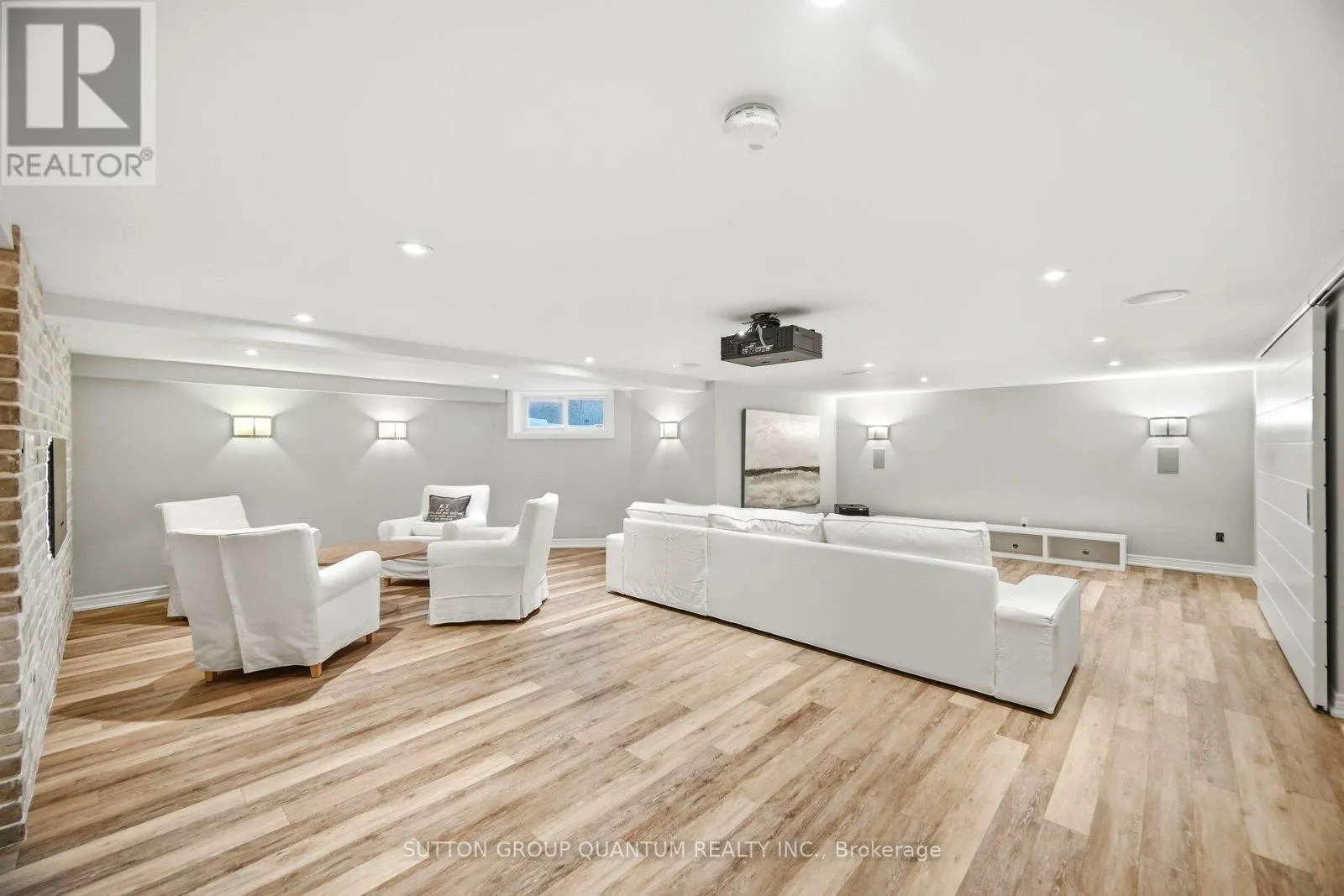 Mineola and Hurontario Welcome to a truly exceptional custom bungalow, blending timeless design & comfort on a 75 ft x199 ft lot with superior craftsmanship throughout. Renovations & Additions completed by David Small Designs. The open-concept main level features cathedral ceilings, custom solid hardwood floors, smooth ceilings, large picture windows. Elegant wall detailing includes crown moulding, shiplap, wainscotting, & panelling. The gourmet kitchen overlooks the great room & is anchored by an oversized waterfall centre island, quartz counters & backsplash, walk-in pantry, & extensive cabinetry. Premium appliances include a Wolf 6 burner gas range, Sub-Zero refrigerator & Miele built-in plumbed coffee machine. The great room impresses with soaring 18-ft cathedral ceilings, extra-high wainscotting, large windows, a Jotul wood-burning stove & walkout to the backyard oasis. A sun-filled loft with skylight, custom desk and credenza provides additional flexible space. The main-level laundry & mudroom with garage access offers custom solid wood cabinetry, flagstone flooring, & backyard access. The primary bedroom features 9-ft ceilings, hardwood floors, crown moulding, custom draperies, panelled accent wall, & acustom walk-in closet. The spa-inspired 6-piece ensuite includes a freestanding tub, curbless glass shower, bidet, & double vanity. Two additional bedrooms feature hardwood floors, custom millwork, and generous closets. Finished lower level offers lots of living space for guests or extended family with a large recreation area, wet bar, entertainment space with projector, fireplace, exercise and yoga rooms, 4-piece bath, & ample storage. Exterior highlights include Cape Cod siding with stone accents, paved driveway with stone detailing & lighting, professional landscaping, inground sprinklers, covered porch with stone patio & glass railings, fenced yard, fire table, and hot tub. Close to Port Credit , Lake Ontario, Go station, schools and walking trails. This home has it all! (id:27476)