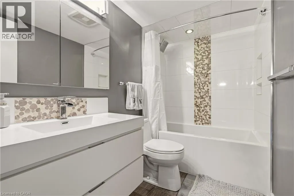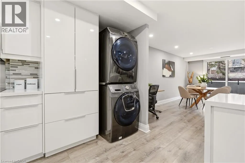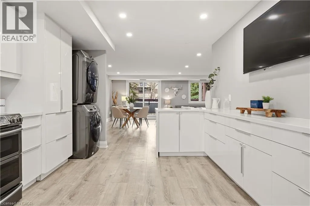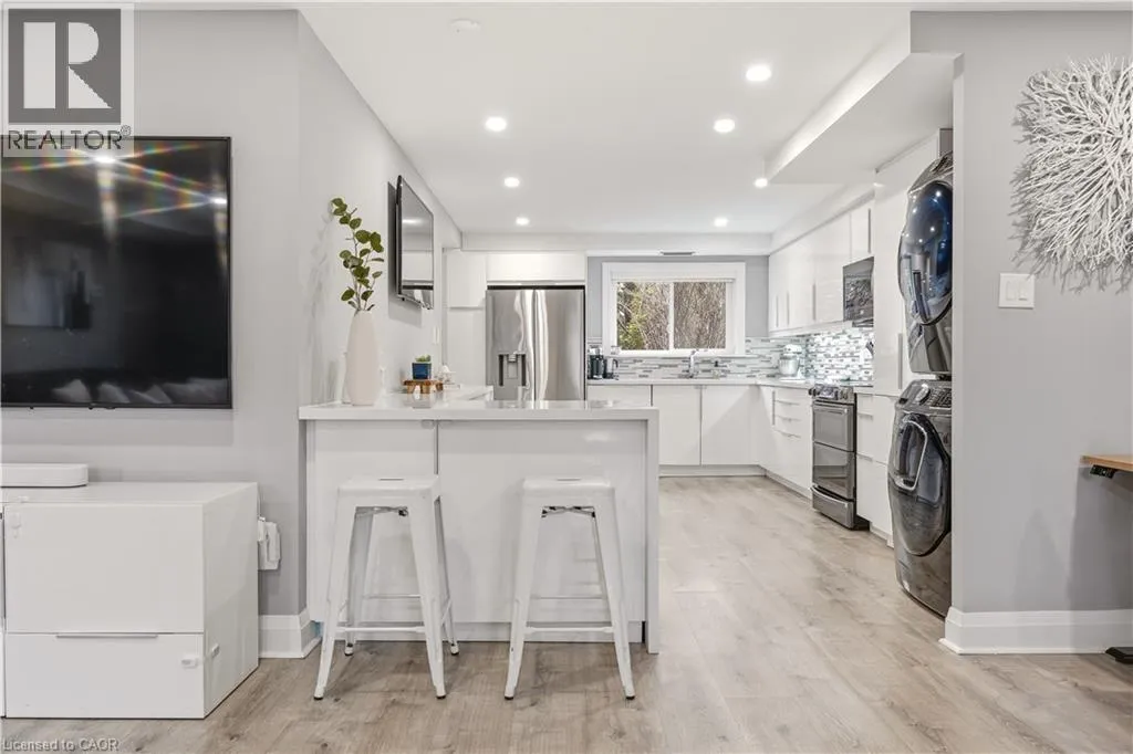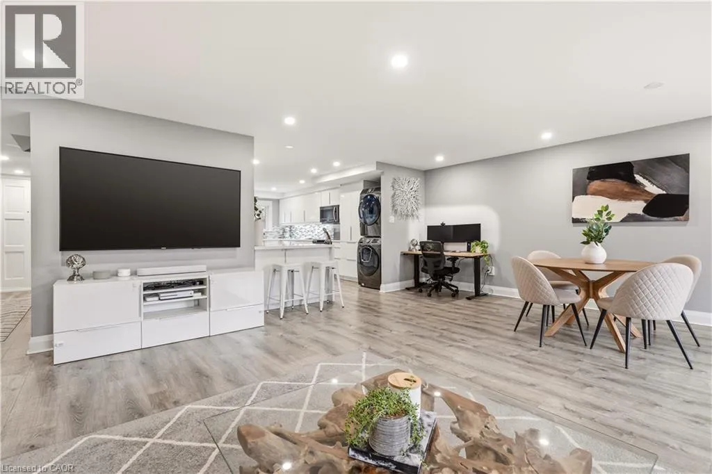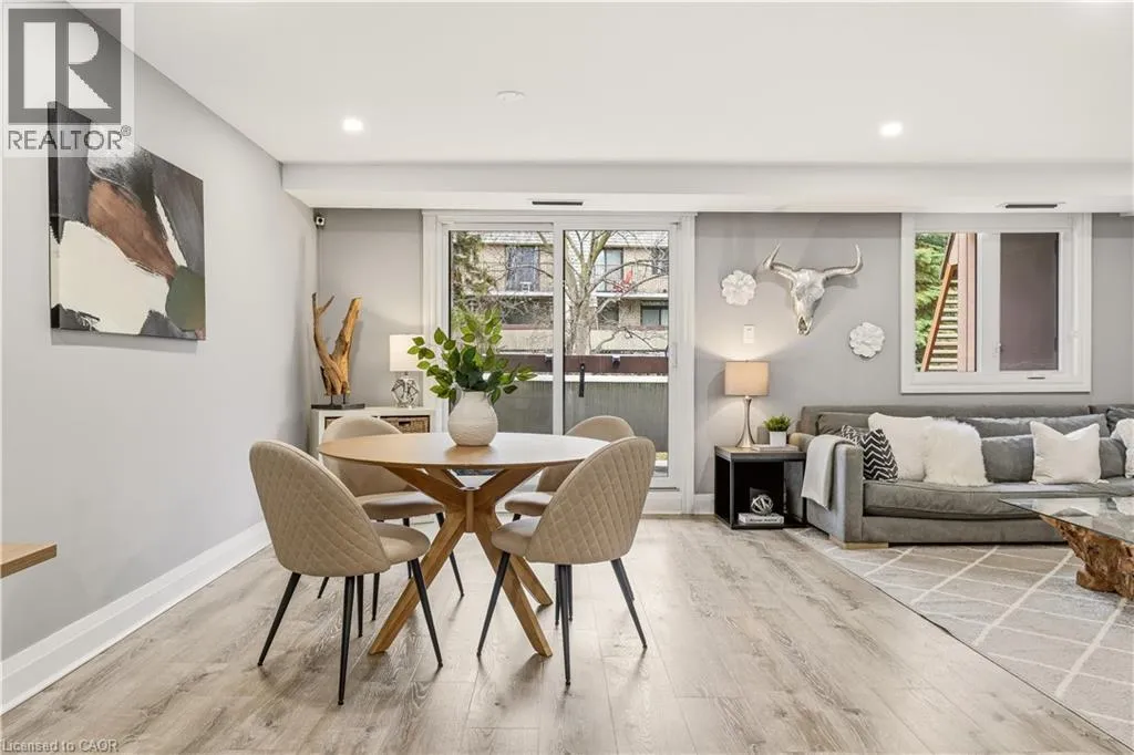 Burnhamthorpe Rd to Central Parkway East to Mississauga Valley Parkway Welcome to this spacious & beautifully updated stacked condo townhouse in the highly sought-after Mississauga Valleys; a community known for its family-friendly atmosphere, mature trees & unbeatable convenience. Just minutes from major highways, public transit, and the Toronto Airport, this home offers effortless access to everything you need; minutes to Square One, dining, parks and everyday amenities. Built in the '70s w/ a unique California-style open concept design, this larger-than-average townhouse is constructed with solid concrete walls between units, providing exceptional sound insulation for a quiet, private living experience. Inside, you'll find a bright & expansive main floor showcasing a seamless flow between the living, dining & kitchen areas, all recently updated with modern finishes, along with new windows & doors that enhance both efficiency and style. The home offers three generously sized bdrms, with the option to easily convert back to a 4 bdrm layout to suit your needs. The primary bedroom is a true retreat, complete with a walk-in closet, while the updated 4pc bthrm adds a fresh, contemporary touch. The large basement extends your living space with a versatile rec room, perfect for family movie nights, a home office, or play area, along with ample storage. Underground parking adds an extra layer of convenience, especially during winter months w/ EV Charger. Condo fees cover nearly everything except hydro, making day-to-day living simple & stress-free. Step outside to your oversized private front patio, an ideal setting for morning coffee, summer BBQs or evening cocktails with friends. Surrounded by lush landscaping, including a blooming lilac tree & mature shrubbery, the space offers a peaceful, retreat-like feel rarely found in townhouse living. Perfect for first-time buyers, young families, or retirees alike, this move-in ready home truly has it all-space, comfort & an unbeatable location in one of Mississauga's most welcoming communities. (id:27476)
