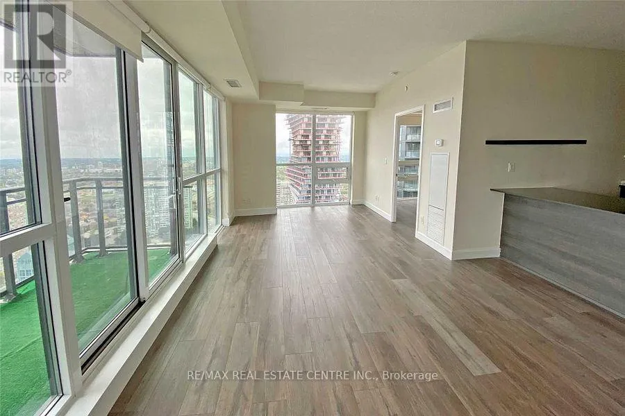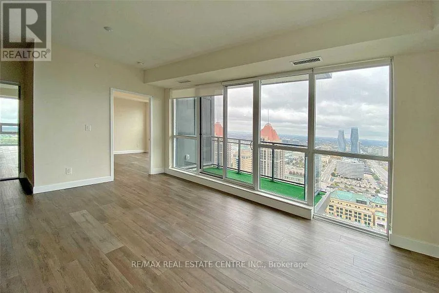 Confederation/Burnhamthorpe Step into luxury with this rare 2BR, 2WR corner unit on the 33rd floor of this prestigious PSV2! This beautifully upgraded suite offers unobstructed panoramic views of Lake Ontario and the city skyline, visible from both the oversized balcony and large floor-to-ceiling windows. Boasting a sought-after souteast exposure, flooded with natural light throughout the day. Very bright and airy space that feels like home the moment you step inside. The open-concept design features premium upgrades such as sleek laminate flooring, quartz countertops, elegant backsplash that perfectly compliments the S/S appliances in the kitchen. The spacious layout includes a generously sized living area that flows seamlessly into the dining and kitchen spaces, creating the perfect setting for both relaxing and entertaining. The bedrooms are equally spacious, with the master bedroom offering large windows that maximize the incredible views. Both bathrooms are fully upgraded with modern finishes. In-suite laundry and plenty of closet space. Just minutes from Square One Shopping Centre, Celebration Square and a variety of top-rated restaurants, cafes, and grocery stores, everything you need s just a short walk away. Public transit is also at your doorstep, easy access to the future Hurontario LRT and multiple bus routes. Quick access to major highways like 403, 407, 401 and QEW makes getting around the city and beyond a breeze. Walking distance of the University of Toronto Mississauga (UTM) and Sheridan College, making is an excellent choice for students and professionals alike. Residents of PSV2 enjoy resort-style amenities, indoor pool, sauna, gym, party room and much more. 1 parking spot, 1 locker included. Whether you're relaxing at home, entertaining on the balcony or exploring the vibrant neighborhood, this condo offers the best of both worlds, luxury and convenience. Don't miss your chance to call this stunning corner unit your home. (id:27476)