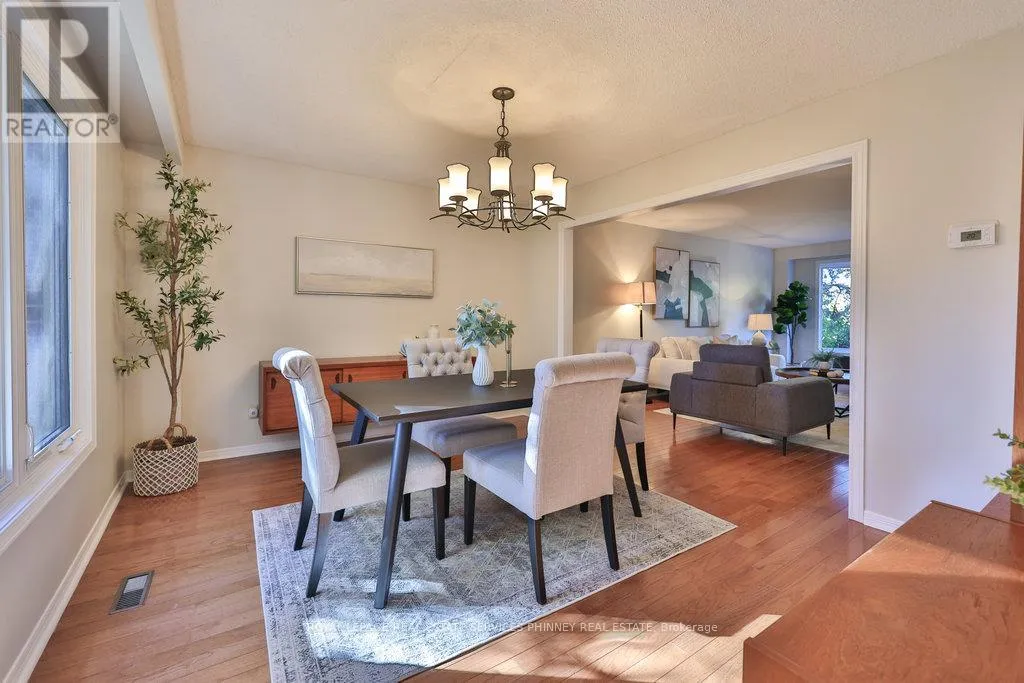 Queensway & Mavis Rd Welcome to this beautifully maintained 4 bedroom, 4-bath family home nestled on a 65 x 117 ft lot in a prestigious, family-friendly community. Surrounded by mature trees, scenic walking trails, and nearby parks, this home offers the perfect blend of comfort, space, and convenience.The spacious main floor boasts an open-concept living and dining area with hardwood floors and large windows that fill the space with natural light while offering views of both the front and back gardens. The renovated eat-in kitchen features ample cabinetry and a walkout to the backyard, ideal for entertaining or family meals. A cozy family room with a fireplace provides a warm and inviting space to gather or unwind at the end of the day.Upstairs, the large primary suite overlooks the front gardens and includes a walk-in closet and a private 3-piece ensuite. Three additional generously sized bedrooms and a 5-piece main bath complete the second floor.The finished lower level adds valuable living space with a spacious recreation room-perfect for game nights or a children's play area-plus a home office, 3-piece bath, and workshop.Step outside to a private backyard complete with a patio and green space, perfect for outdoor dining or relaxing in nature. Pride of ownership shines throughout.Ideally situated within walking distance to parks, trails, and the Huron Park Community Centre (with pool and arena), and just minutes from UTM, top-rated schools, shopping, hospitals, and major highways. This exceptional property is an opportunity not to be missed! Furnance 2017,AC 2020, Roof 2017, Attic insulation 2011. (id:27476)
