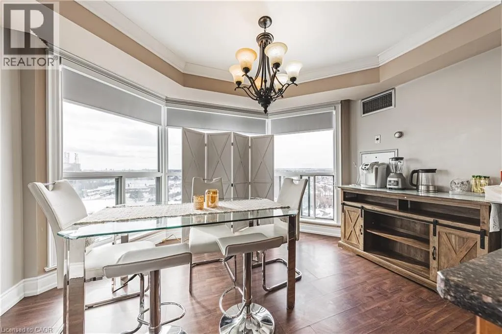 Burnhamthorpe Rd. W & Erin Mills Pkwy. Rare opportunity to own a well-maintained penthouse corner unit offering breathtaking panoramic lake and city views in the highly desirable, gated Eagle Ridge Community in the heart of Erin Mills, known for its excellent school district. This sun-filled 1,210 sq ft suite features floor-to-ceiling windows, 2 spacious bedrooms, 2 bathrooms, including an en-suite with Jacuzzi tub and a double sink, 2 owned parking spaces, and 1 large storage locker. Enjoy an exceptional lifestyle with 24-hour security in a well-managed building recognized for excellent communication. Monthly condo fees include all utilities: heat, hydro, water - plus cable TV, high-speed internet (Wi-Fi), building insurance, parking, and all common elements. Residents have access to outstanding amenities at the Courtyard Pavilion, including an indoor pool, sauna, hot tub, squash/racquet courts, billiards, recreation room, outdoor BBQ area, children's playground, car wash, and guest suites. Ideally located steps to shopping, everyday amenities, schools, parks, and with easy access to Hwy 403, this home delivers comfort, convenience, and lifestyle in one of the area's most sought-after communities. (id:27476)